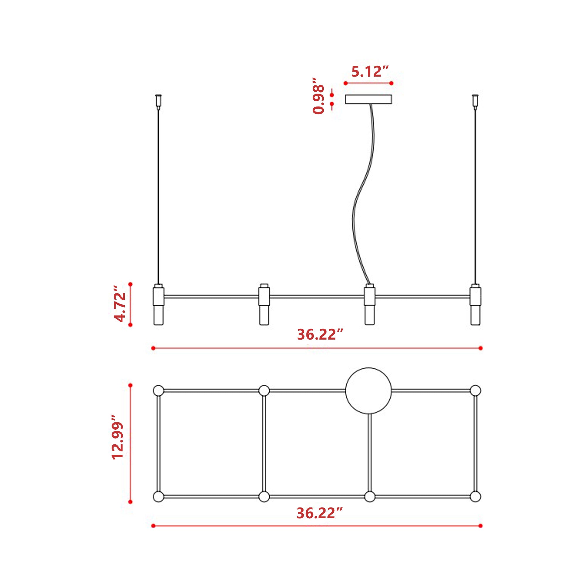 - Fixture Dimensions: 36.22"W X 4.72"H