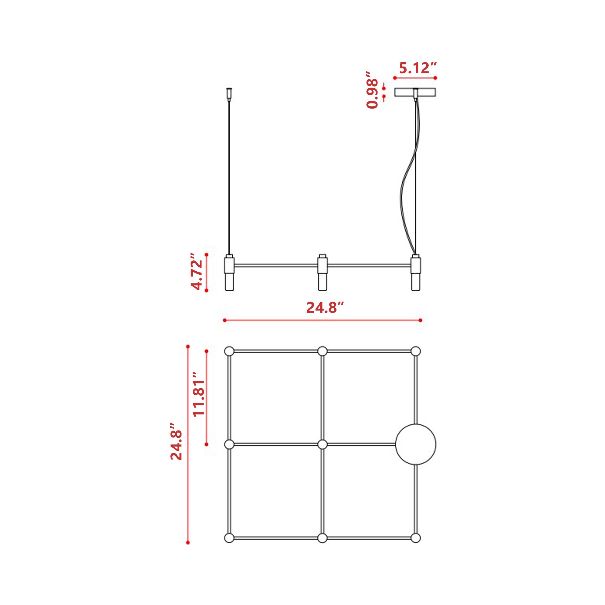 - Fixture Dimensions: 24.8"W X 4.72"H