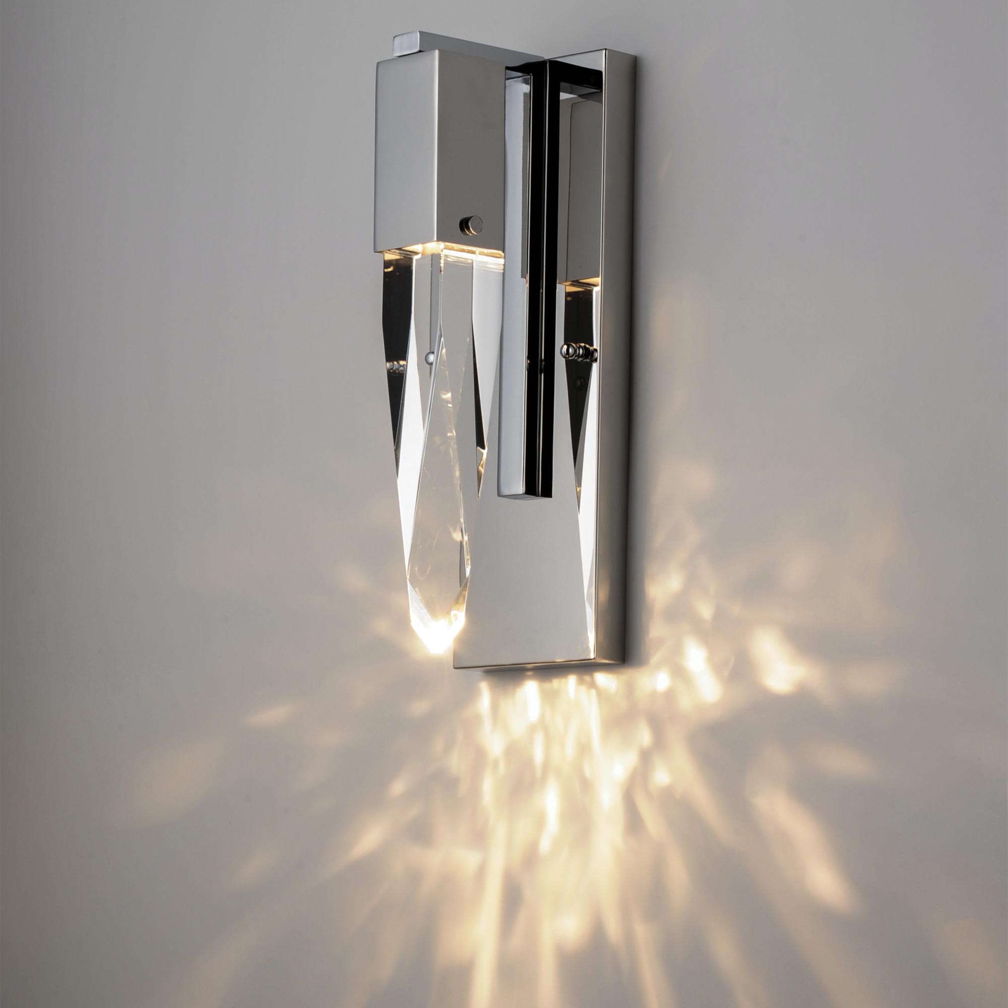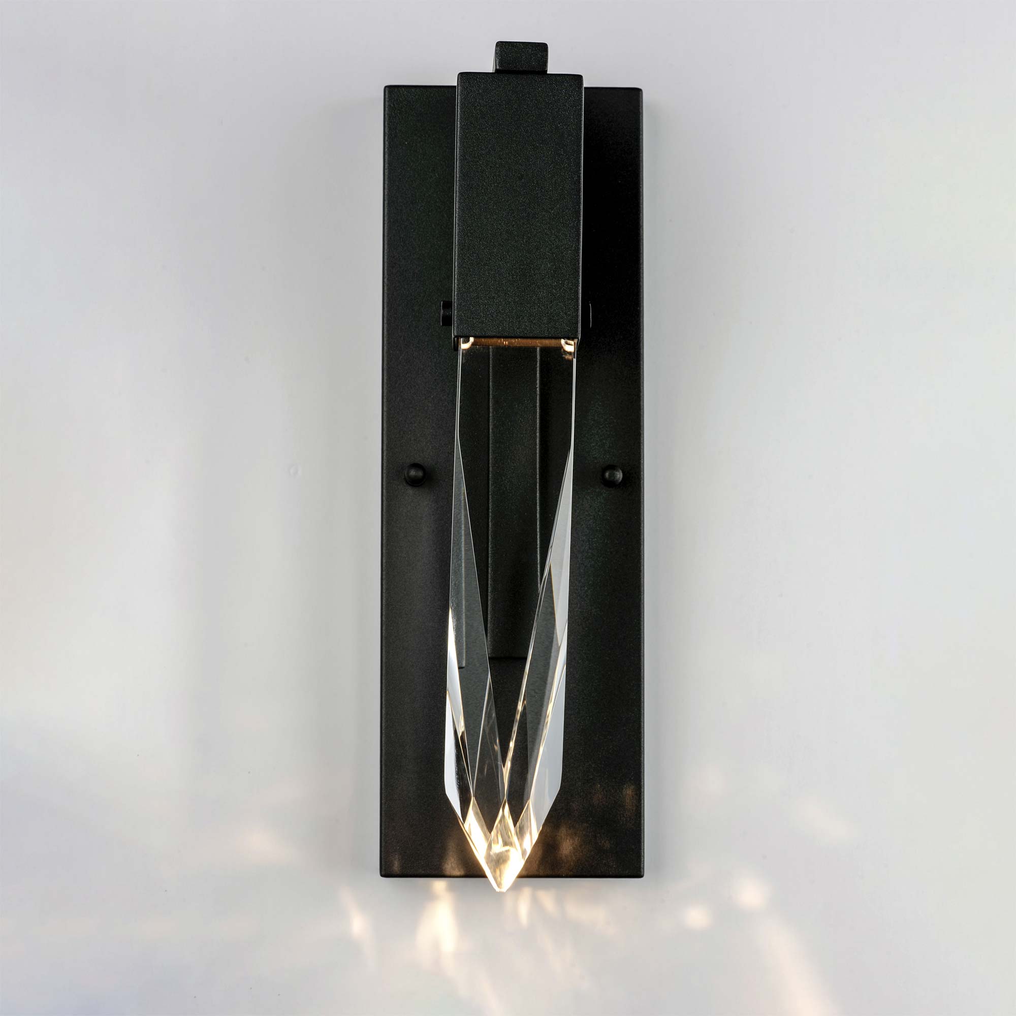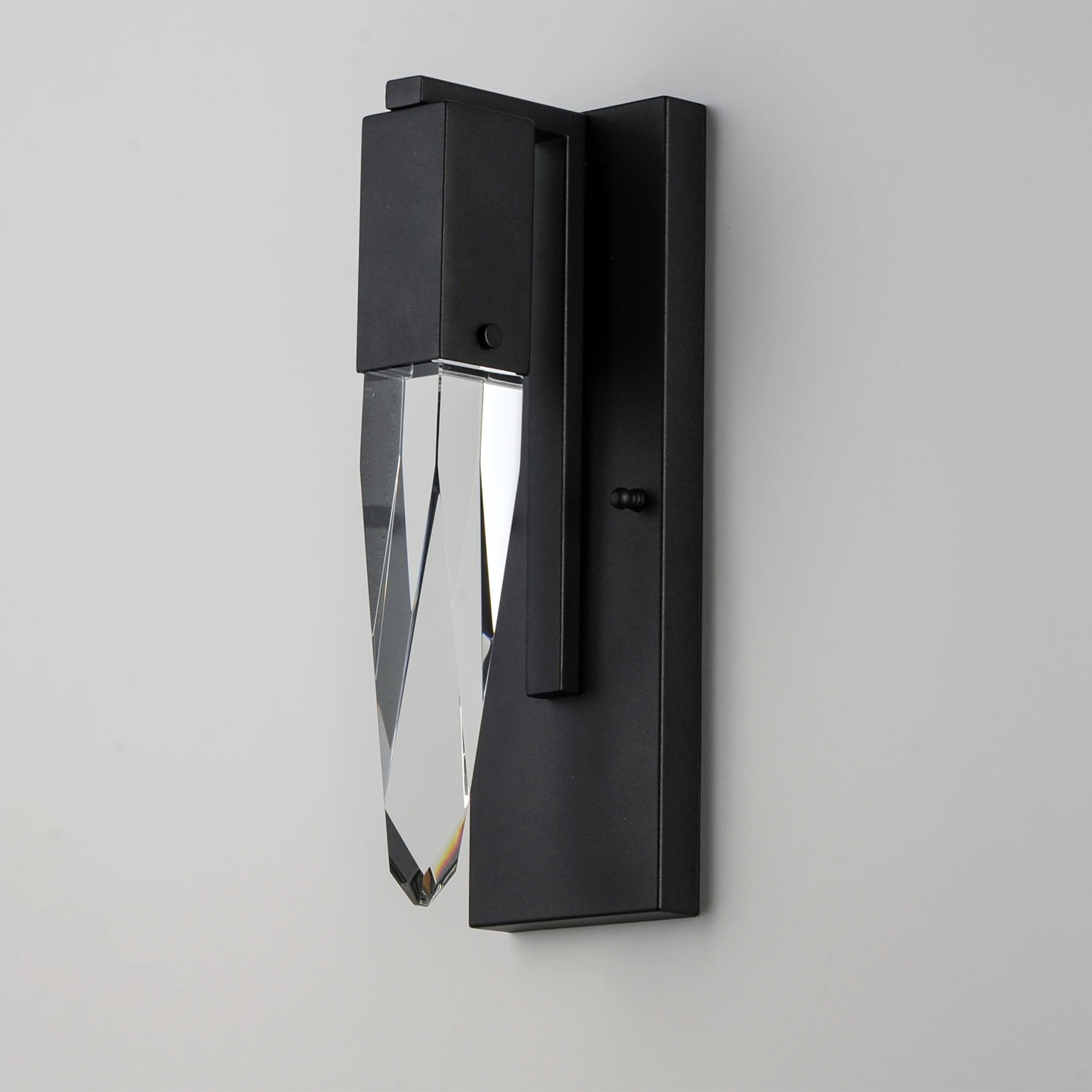 A shard of gorgeous crystal emulates an organic stalactite to bring natural splendor to the Quartz LED Bath Wall Light from ET2 Lighting.