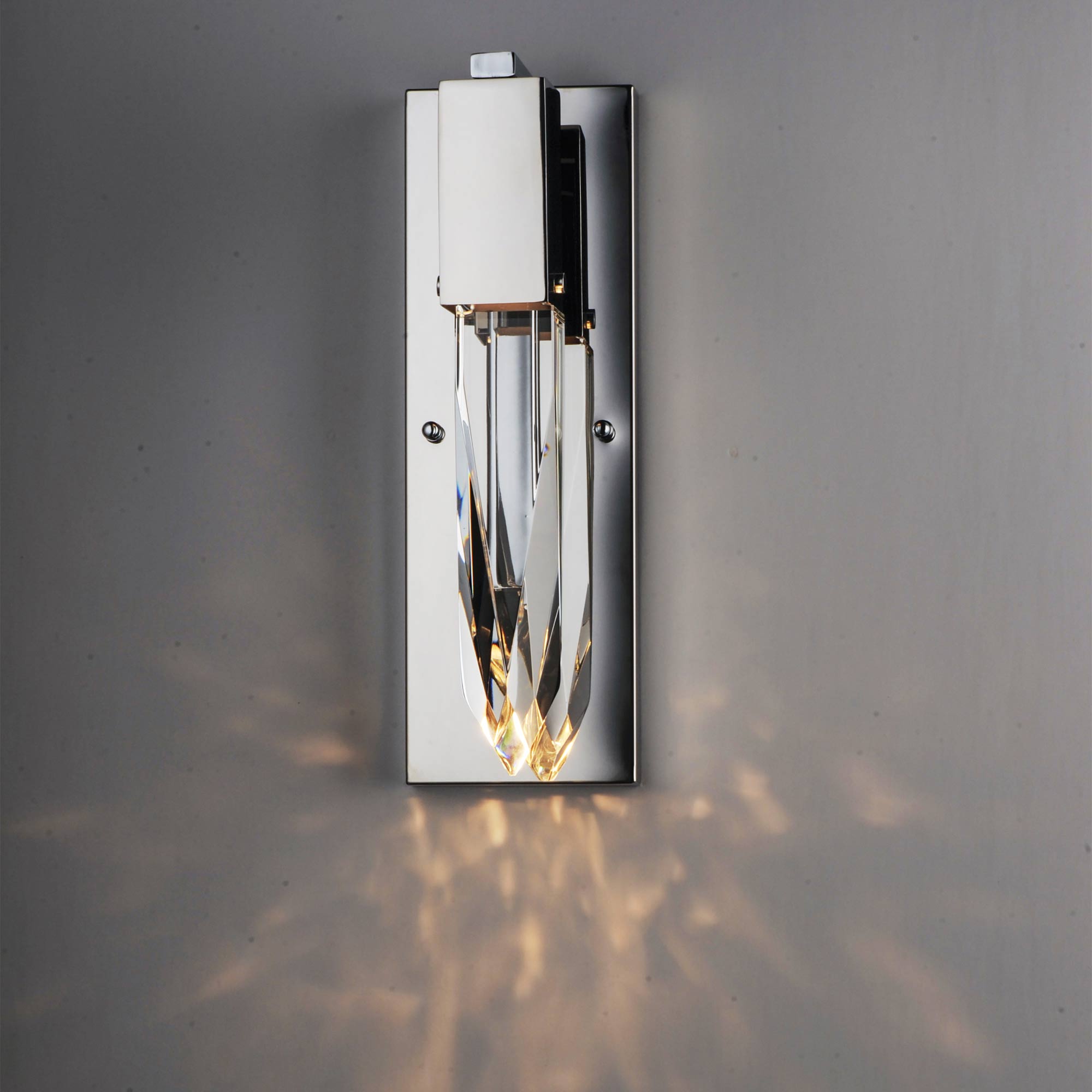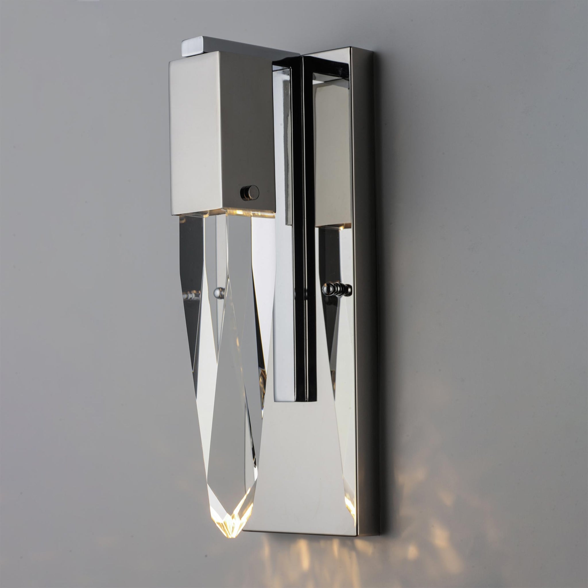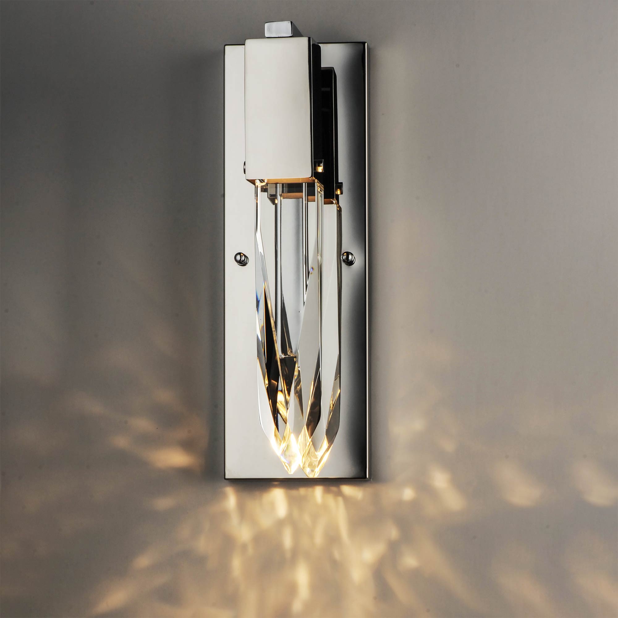 A shard of gorgeous crystal emulates an organic stalactite to bring natural splendor to the Quartz LED Bath Wall Light from ET2 Lighting.