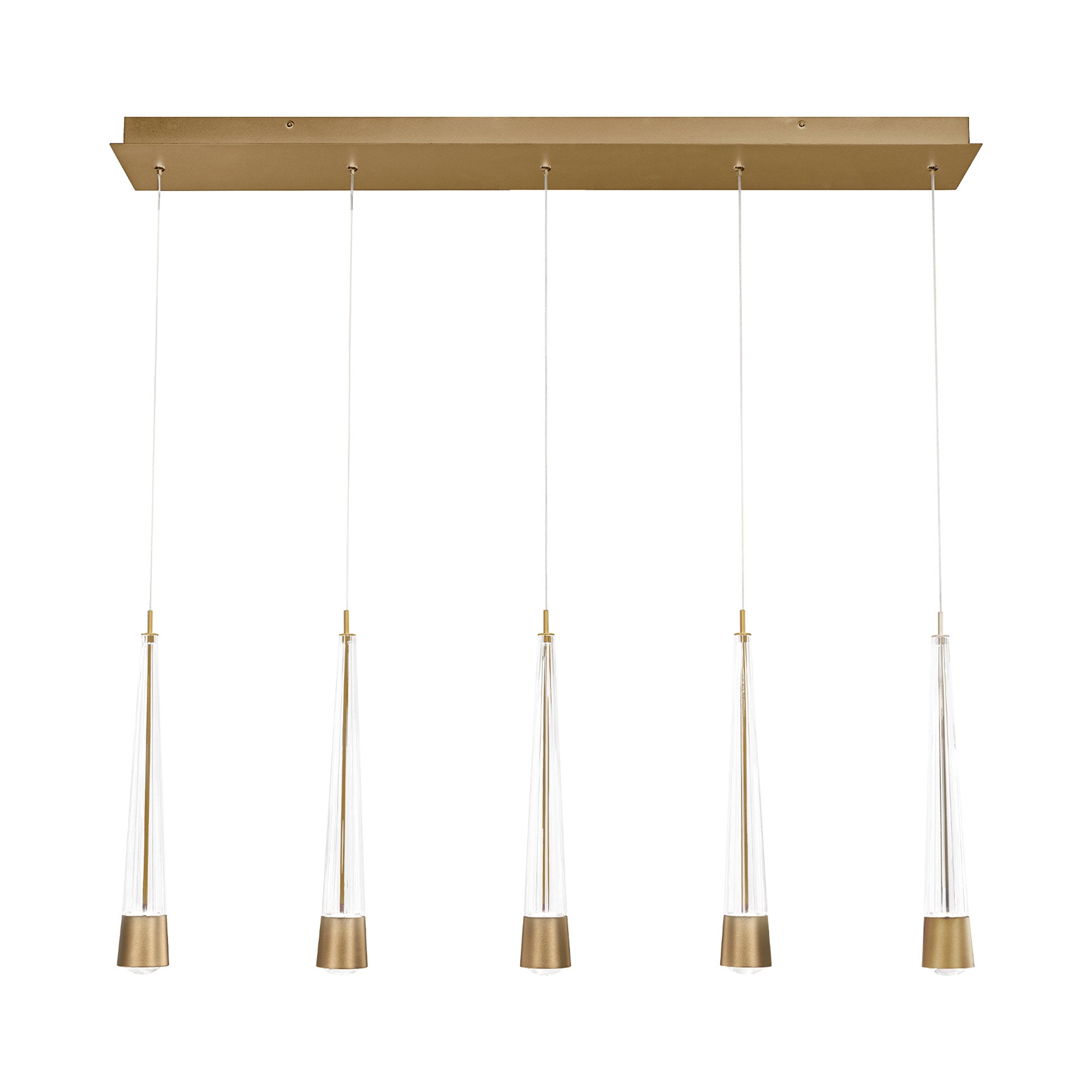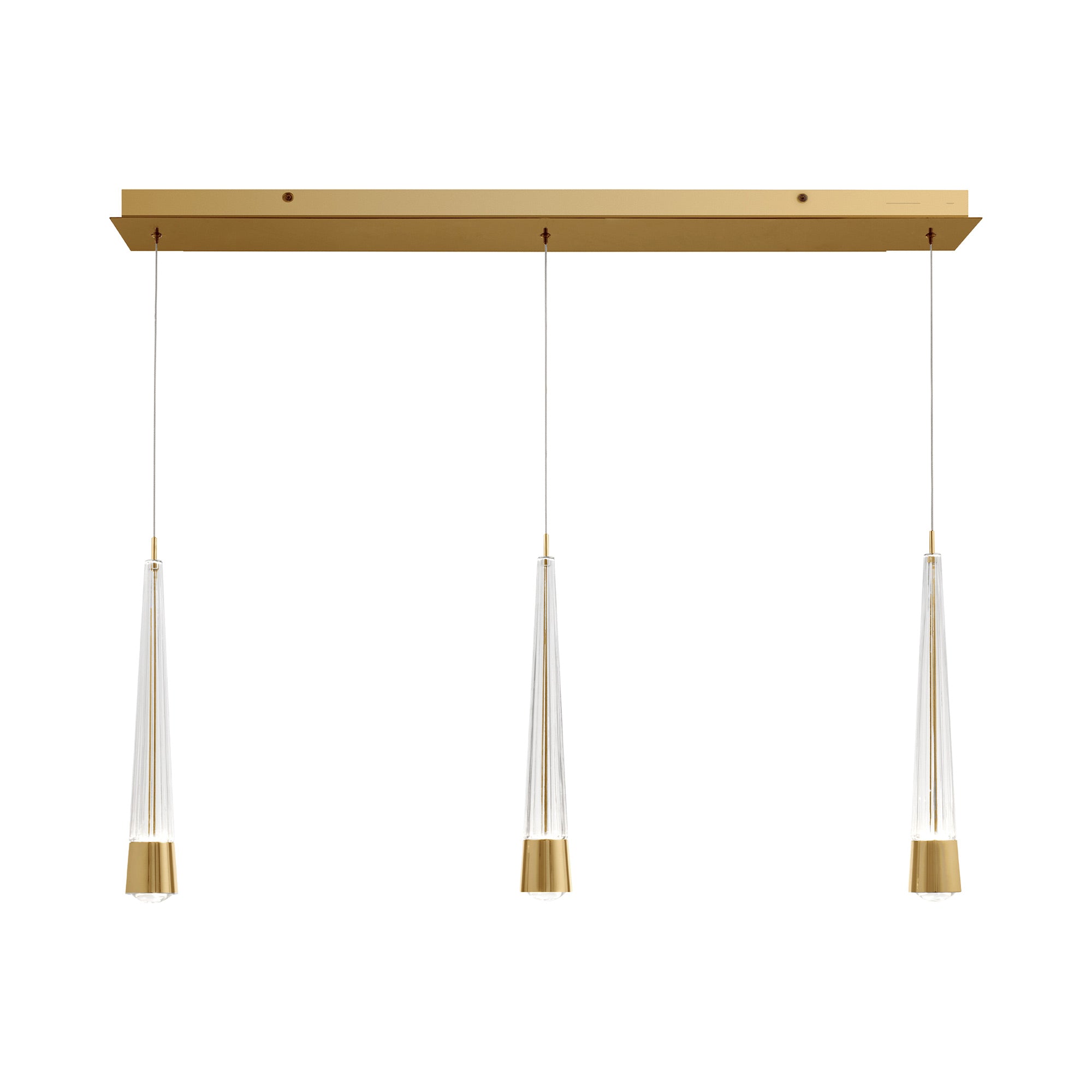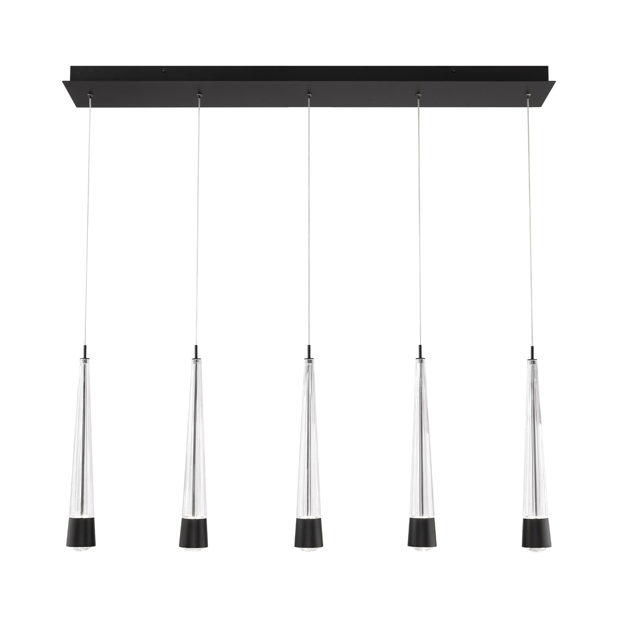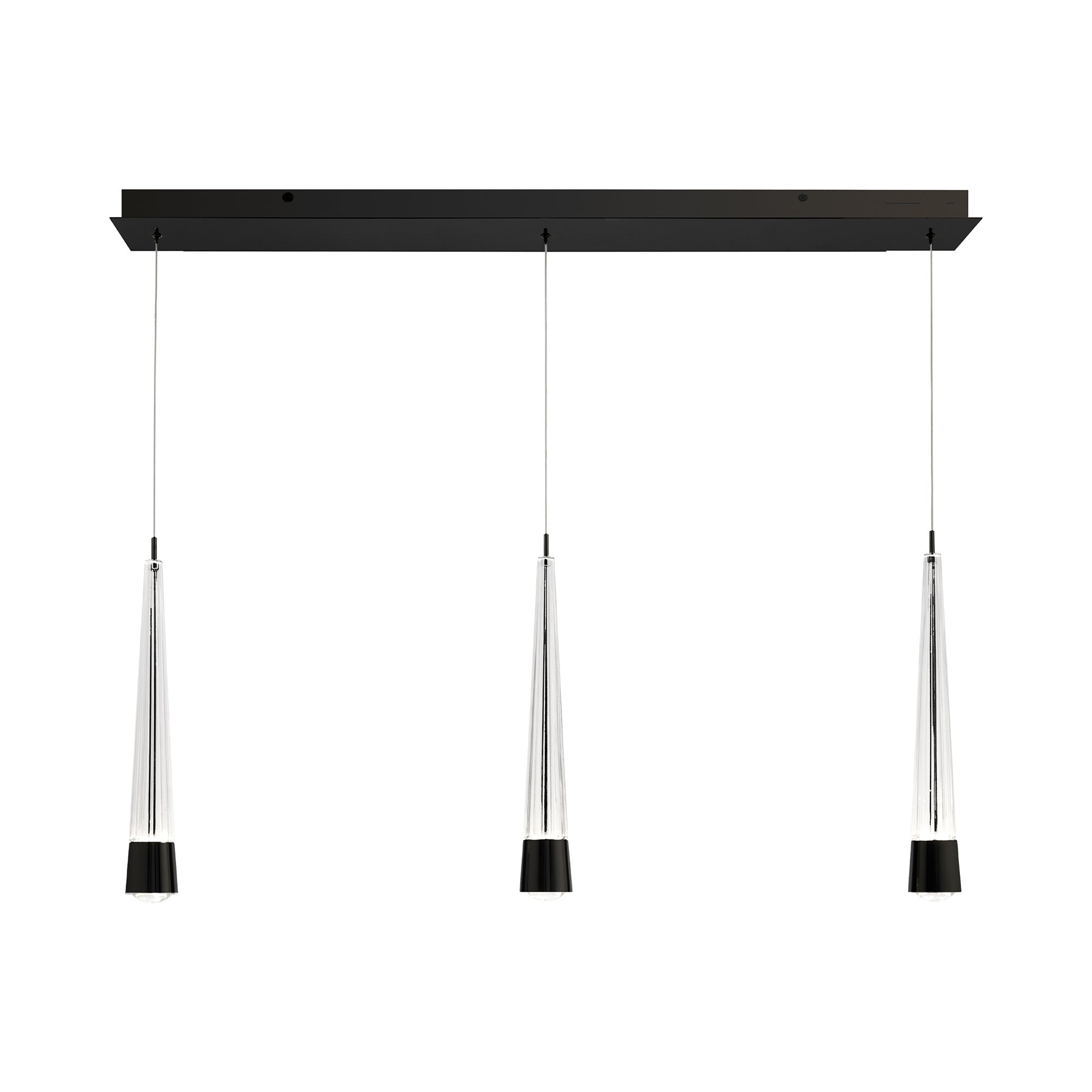 Introduce a mix of geometry and decadence with the Quill LED Linear Multi Pendant Light from dweLED. Aluminum hardware and glass bodies with a V-cut diffuser offers a minimalist approach to elegant style. This multi-light pendant features adjustable powered aircraft cables, creating a minimalist look.