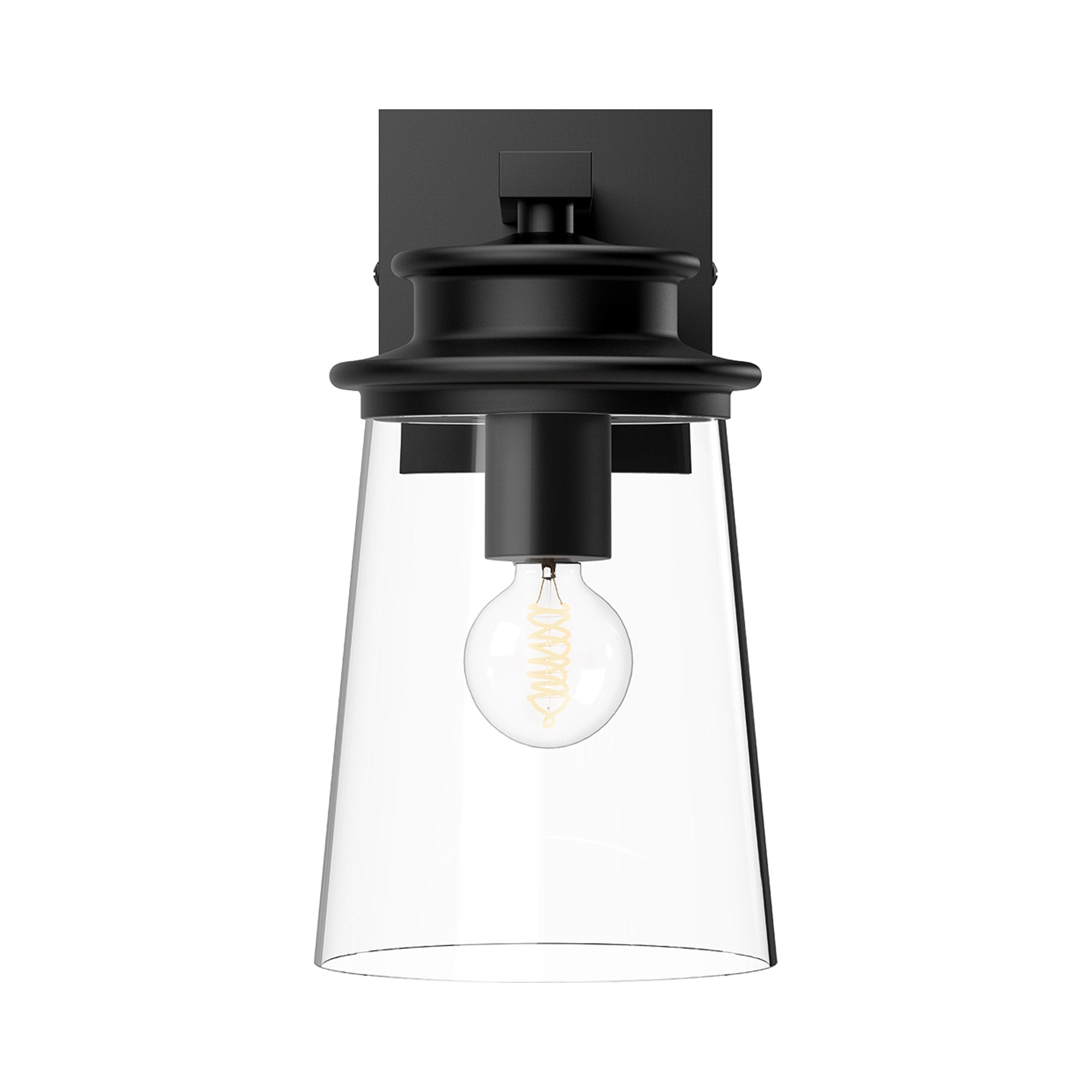 Layering of a metal frame invokes a hint of Japanese design form, making the Quincy Bath Wall Light from Alora Mood an extraordinary blend of organic art and industrial attitude. This seamlessly styled fixture begins with an intricate metal holder and ends with a tapered cylinder glass shade that gleams with glowing light.