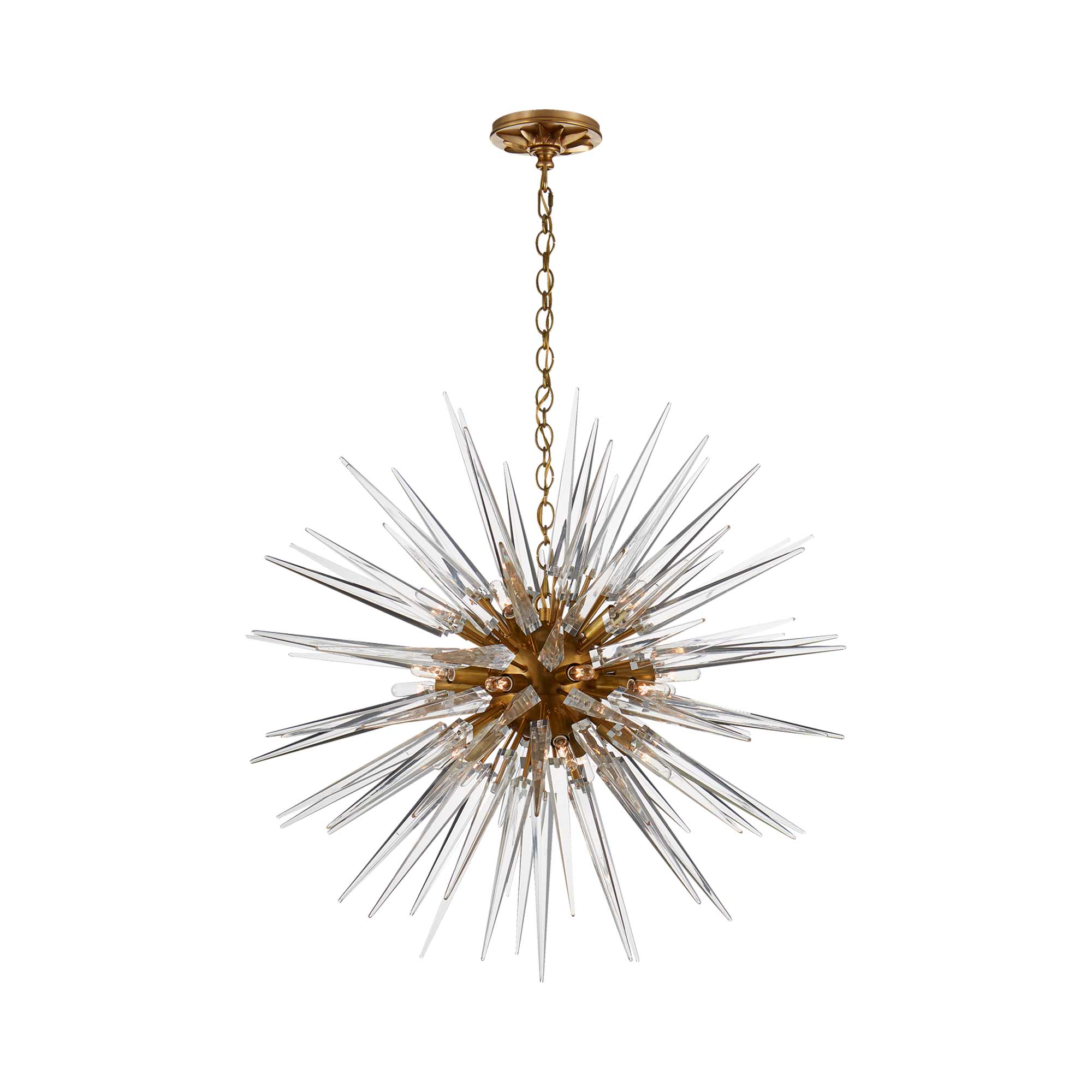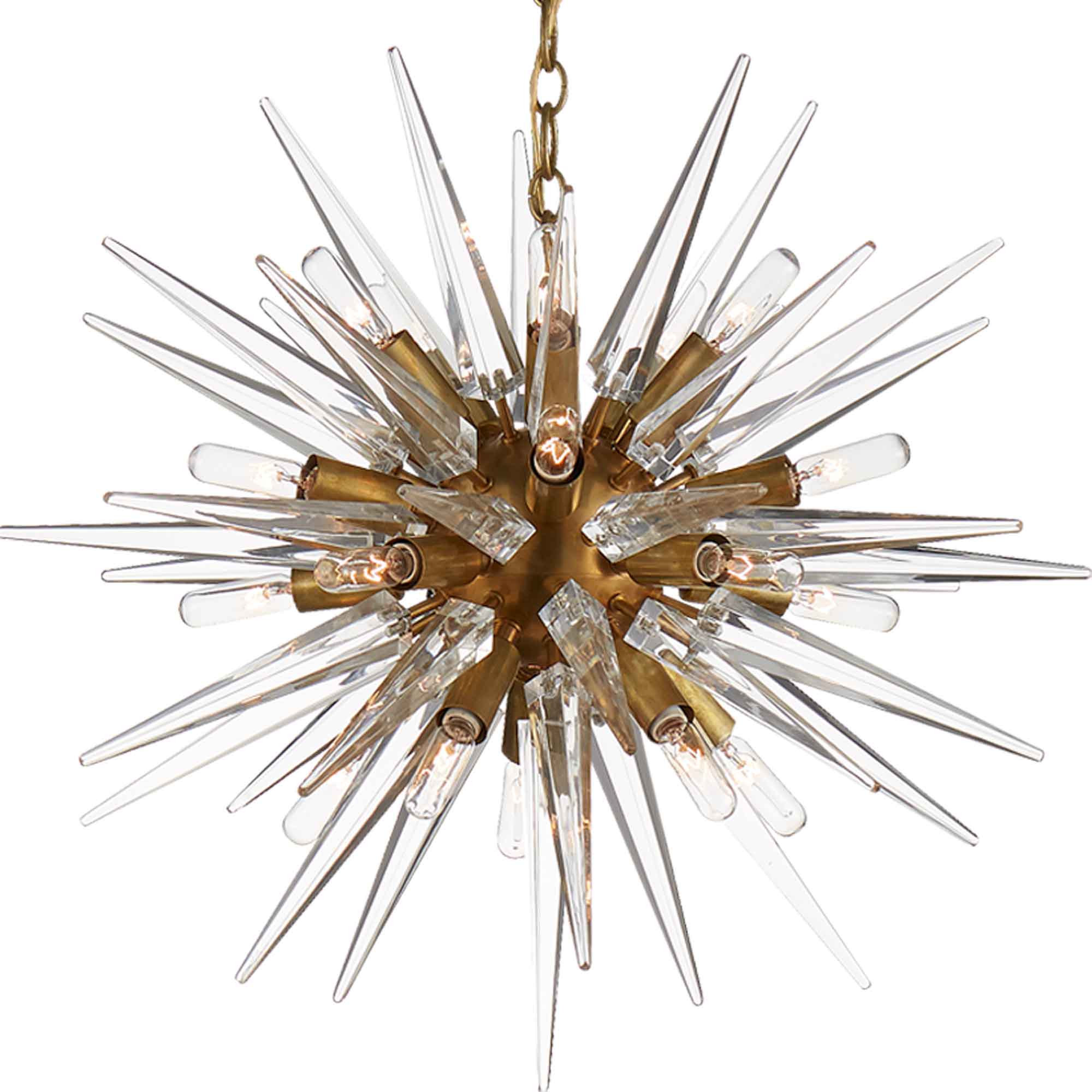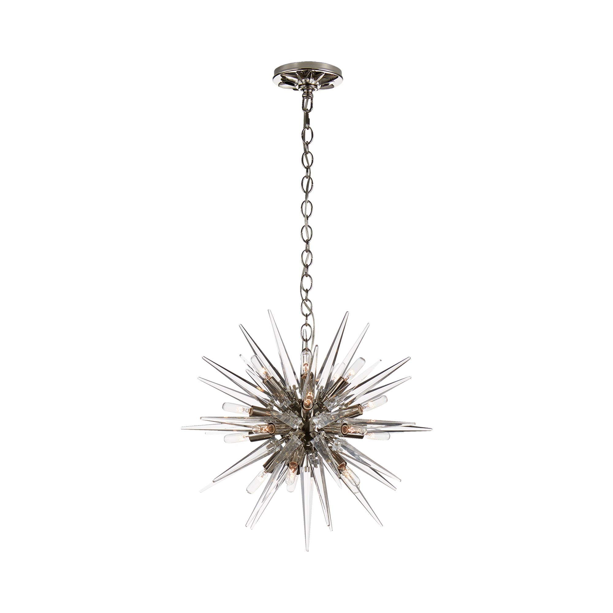 Adopt a futuristic ambiance in a modern setting, choosing the Quincy Sputnik Chandelier from Visual Comfort Signature to blend glam with space-inspired motifs. This extraordinary light features a metal frame sprouting candelabra-style bulb mounts and slender spindles of clear acrylic, offering the glimmering look of glass.