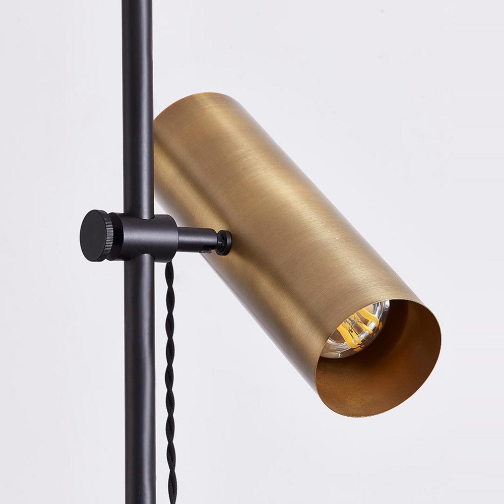 Industrial vibes embellish the studio motif of a floor lamp suited to a variety of casual interior design schemes. The Quinn Floor Lamp from Troy Lighting blends a soft black finish metal pole and base with a sleek, slender cylinder shade glowing with a patina brass finish. Adjustable settings accommodate tailored needs to make this light source a well-rounded choice.
