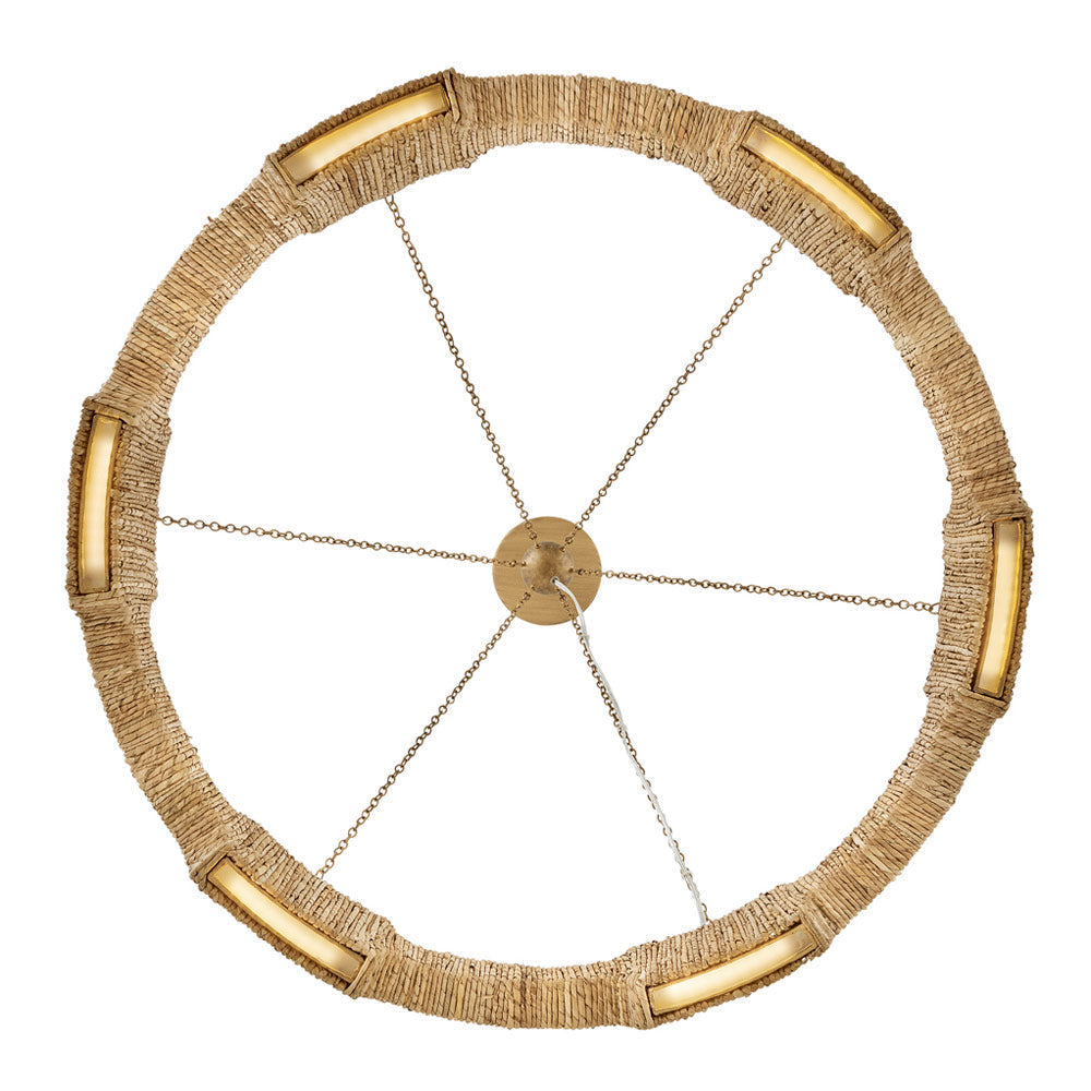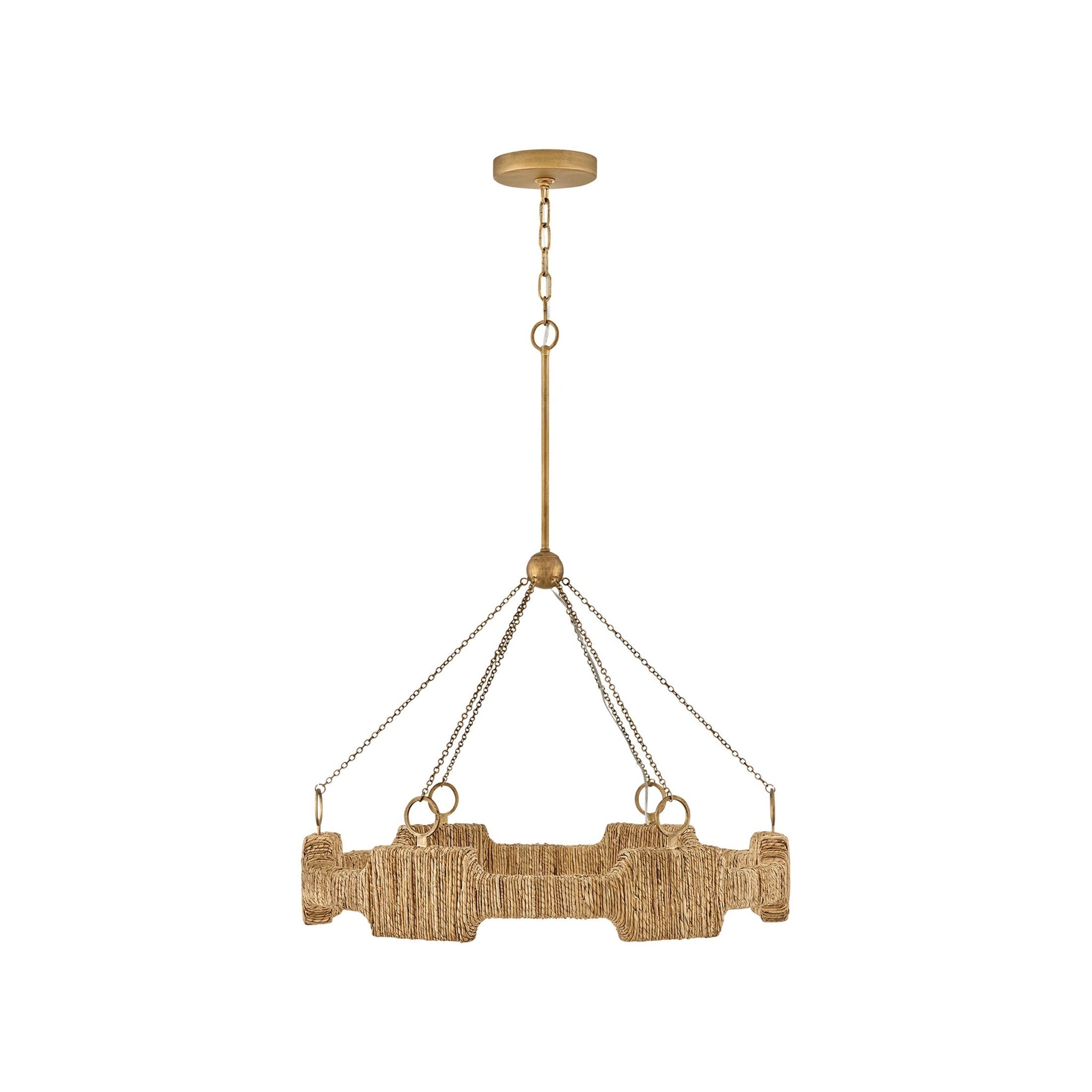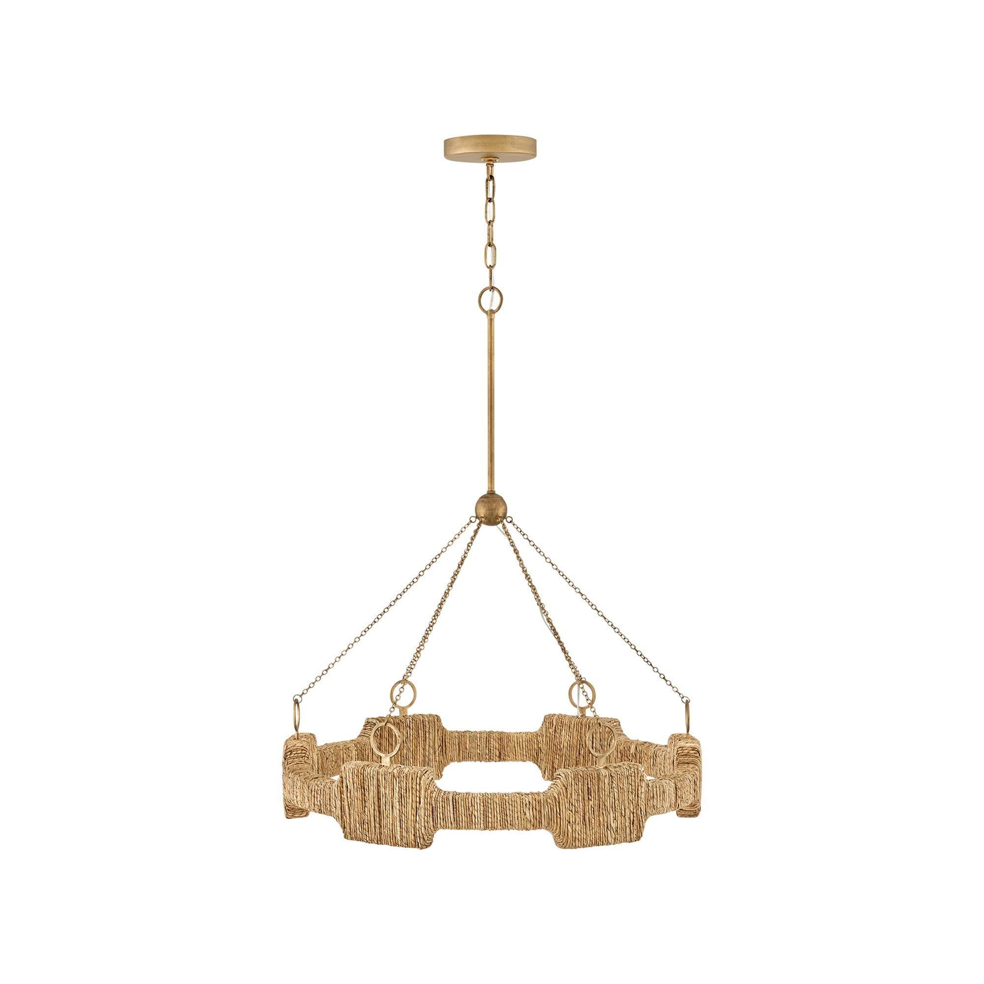 Modern meets coastal bohemian in the Raffi LED Chandelier from Hinkley. A burnished gold finish and basket-style weaving create compelling warmth and texture, ideal for a welcoming entry or dining room.