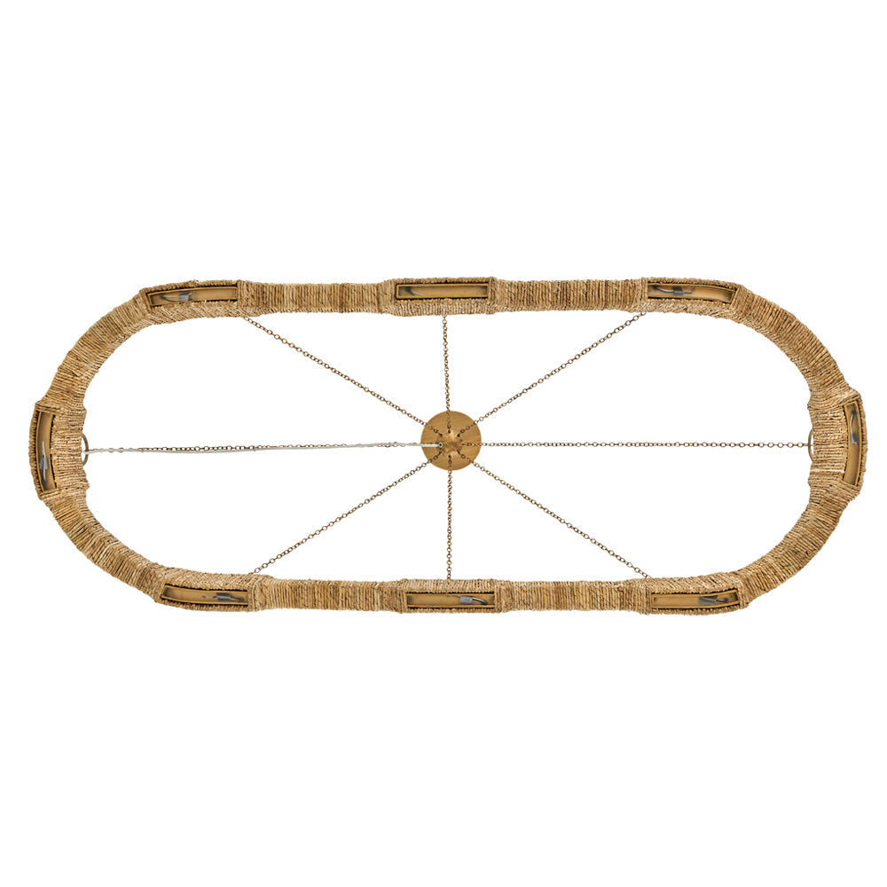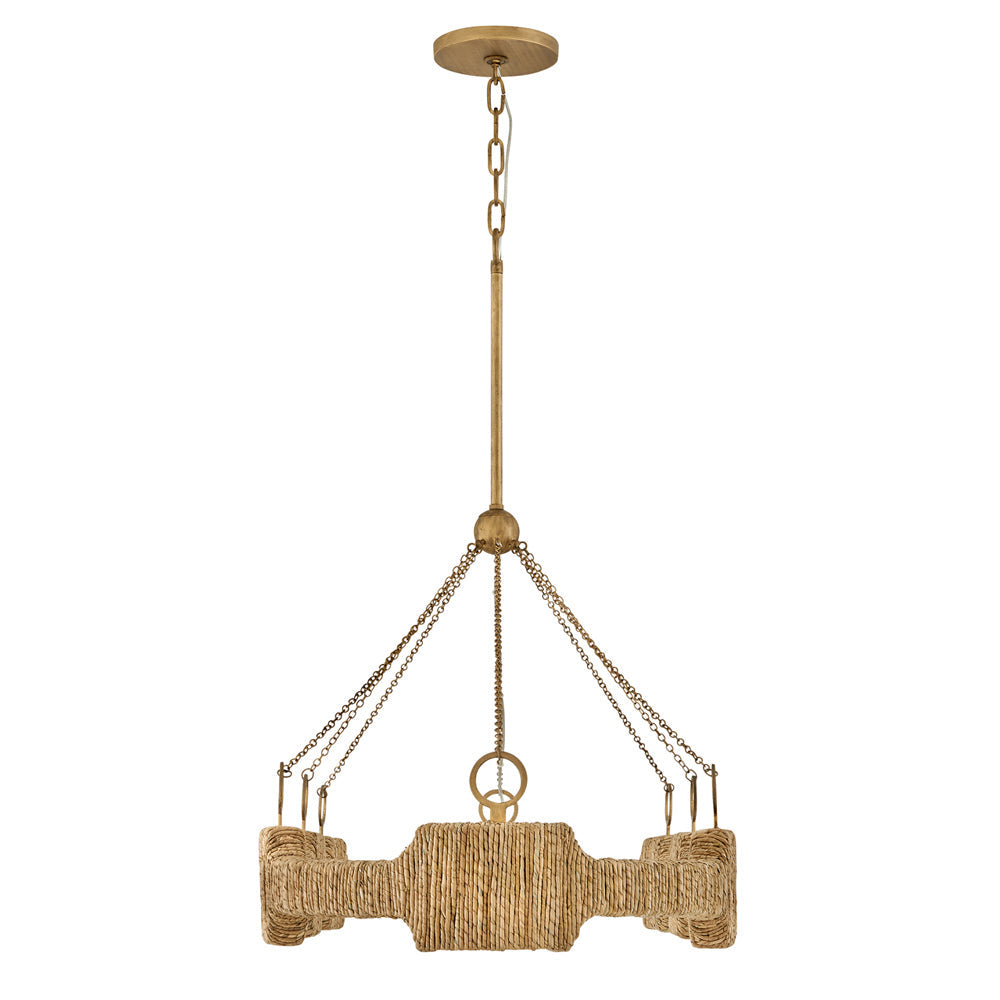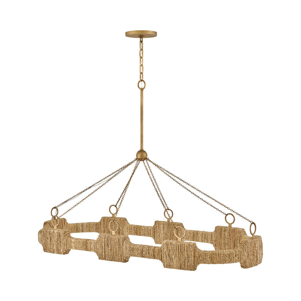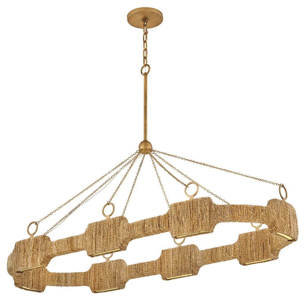 Organic shapes and impressive texture capture attention for the Raffi LED Linear Pendant Light from Hinkley. Beautiful in an inviting kitchen, it pendant boasts basket-style weaving paired with energy efficient illumination and a rich burnished gold finish. Elements of coastal and bohemian design are a stylish complement to a modern silhouette.