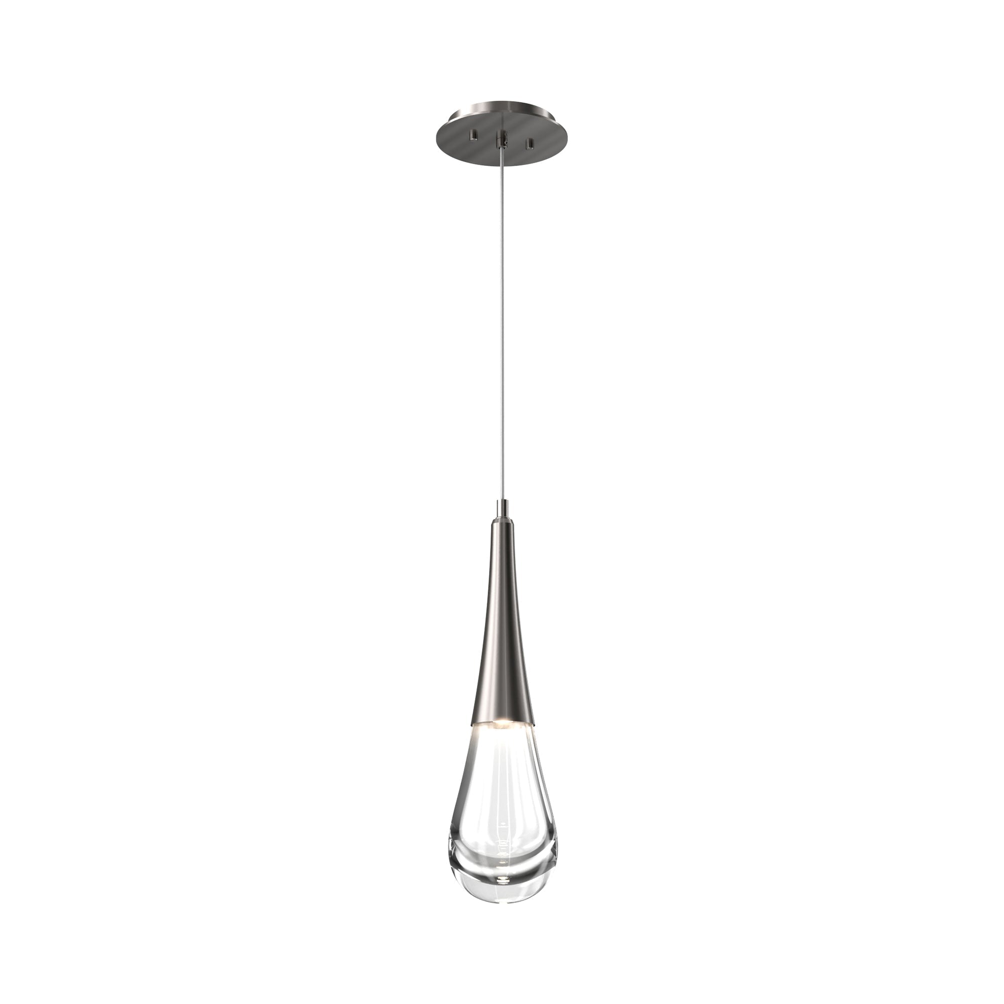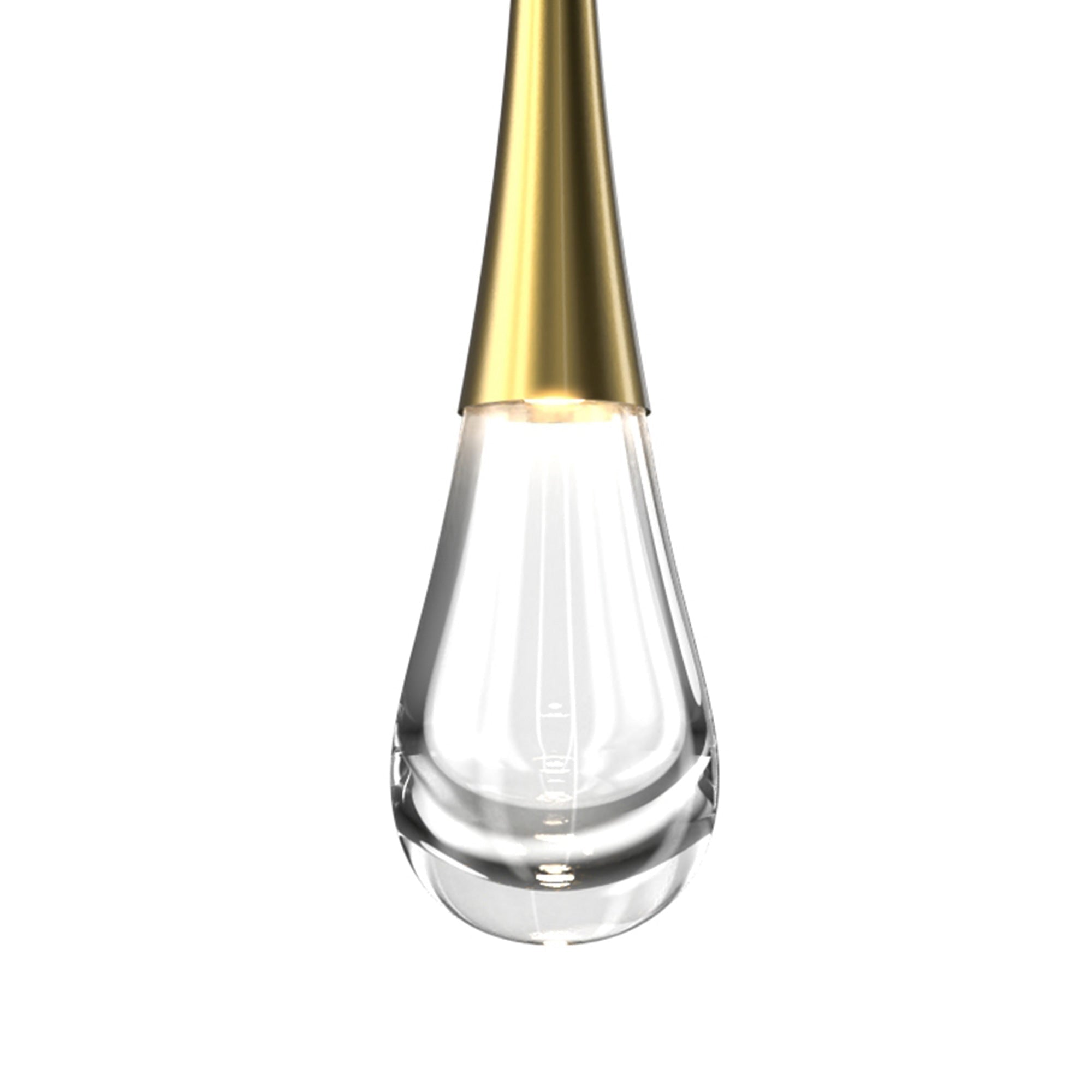 Add a refreshing modern touch to an interior with the modern style Raindrop LED Pendant Light from Hammerton Studio. A single artisan blown glass pendant lends a glistening dewy effect, capped with a slender metal tip that conceals an energy-efficient LED bulb, making this rain-inspired pendant light a glamorous lighting piece for sustainable interiors. Inspired by the wonder of nature with a sleek expression, this single LED pendant light catches the eye over bar tops, nightstands and focal walls.