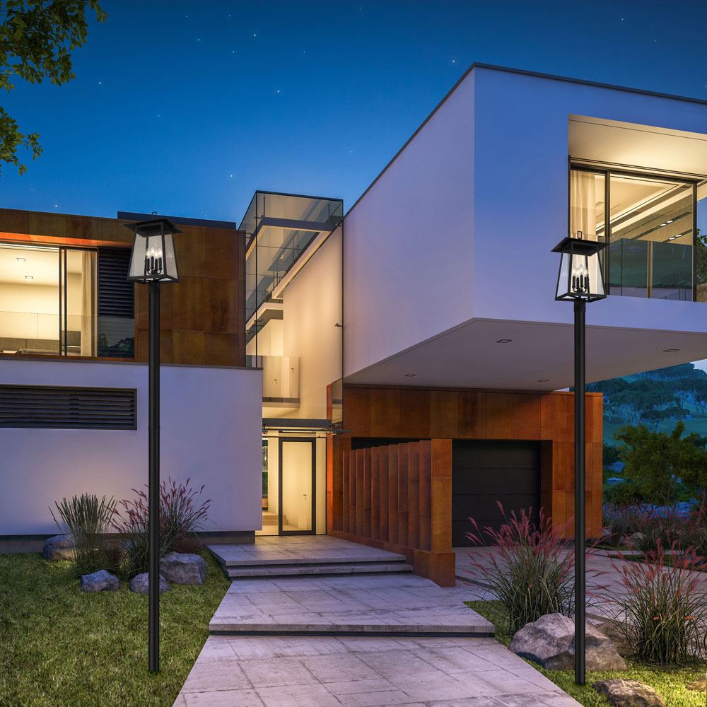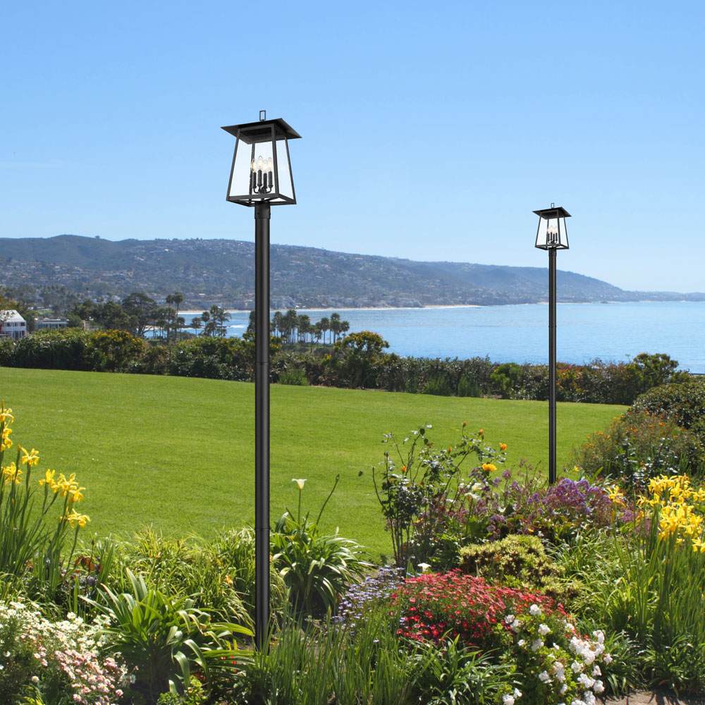 Showcasing flared panes of clear seedy glass, the Rainer Outdoor Sleek Post Light from Z-Lite creates bright, fresh illumination perfect for curb appeal and added safety in your garden. Its classic black finish lends versatility to a modern profile, while bright, direct illumination is ideal for lighting pathways and creating inviting curb appeal for your home.