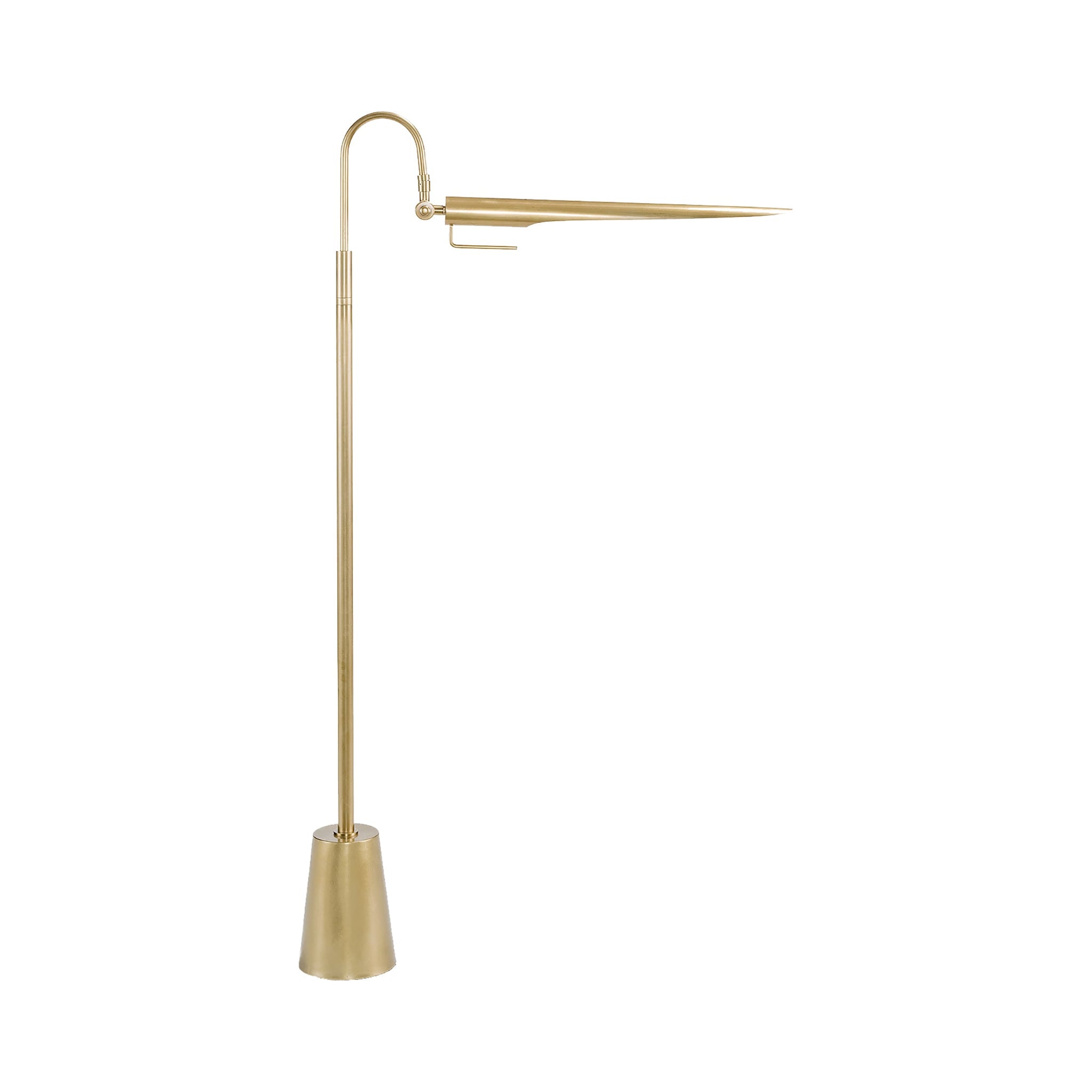 A theatrical depiction of nature creates enticing style as the Raven Floor Lamp from Regina Andrew focuses on earthy ambiance to emulate a bird theme. A modern aerodynamic silhouette becomes more rustic in motif, with metal construction of a multi-faceted base, body, curved arm, and protruding, tapered shade. This lamp repurposes any space into a museum of intrigue.