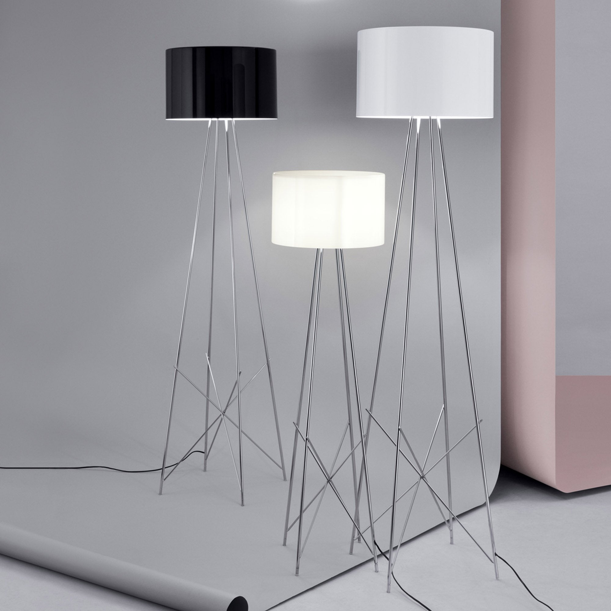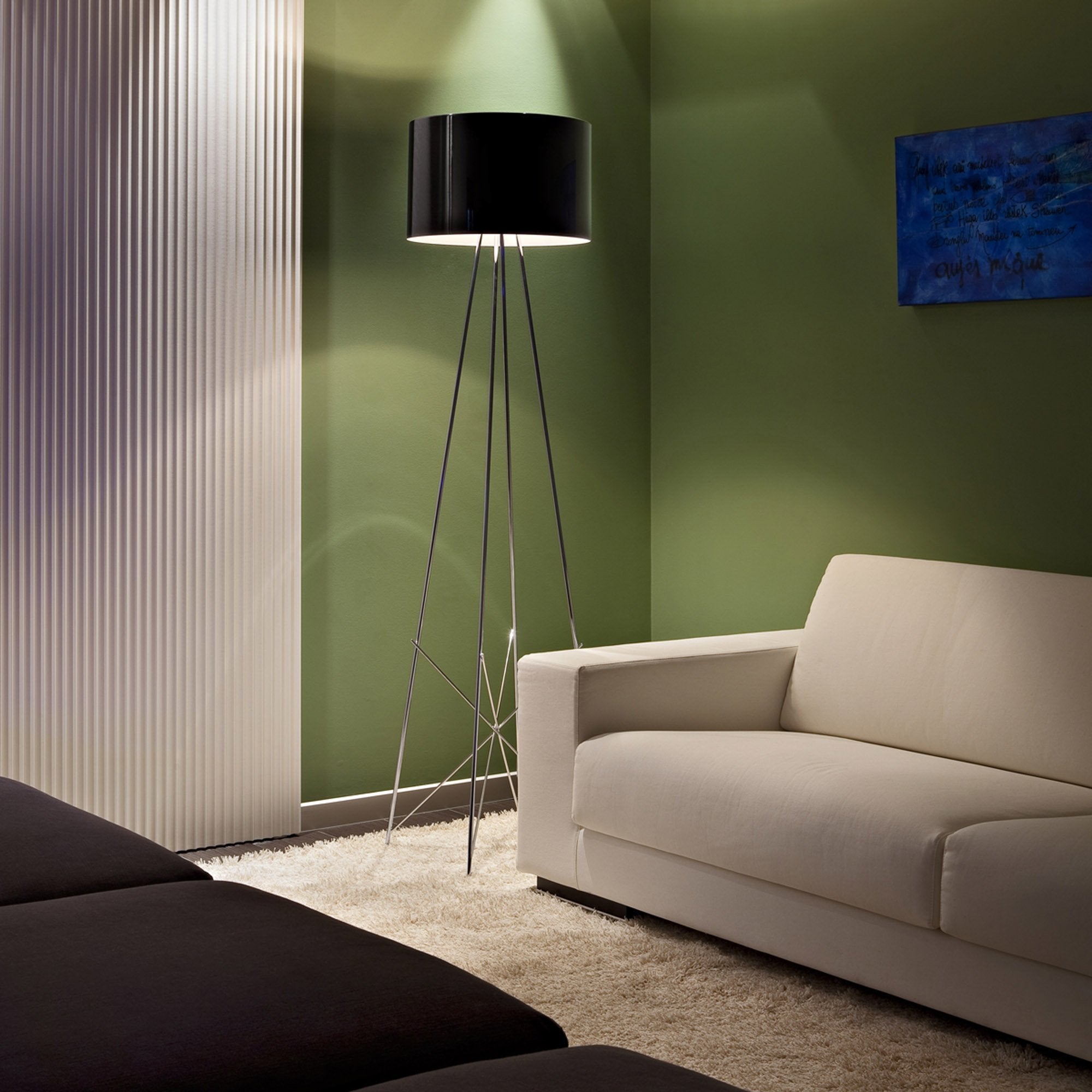 Illuminate a living room lounge with the chic, modern artistry of the Ray F Floor Lamp from FLOS.