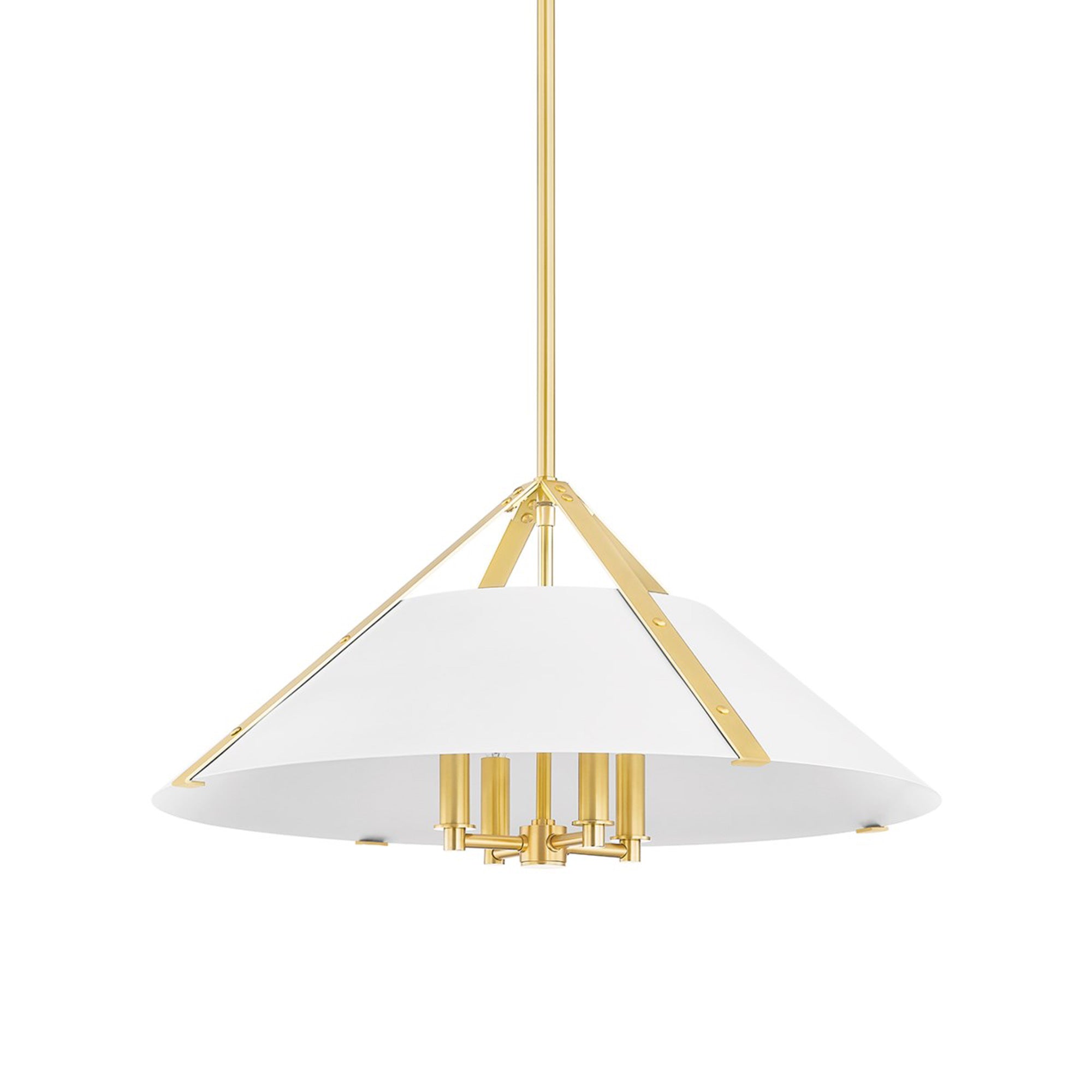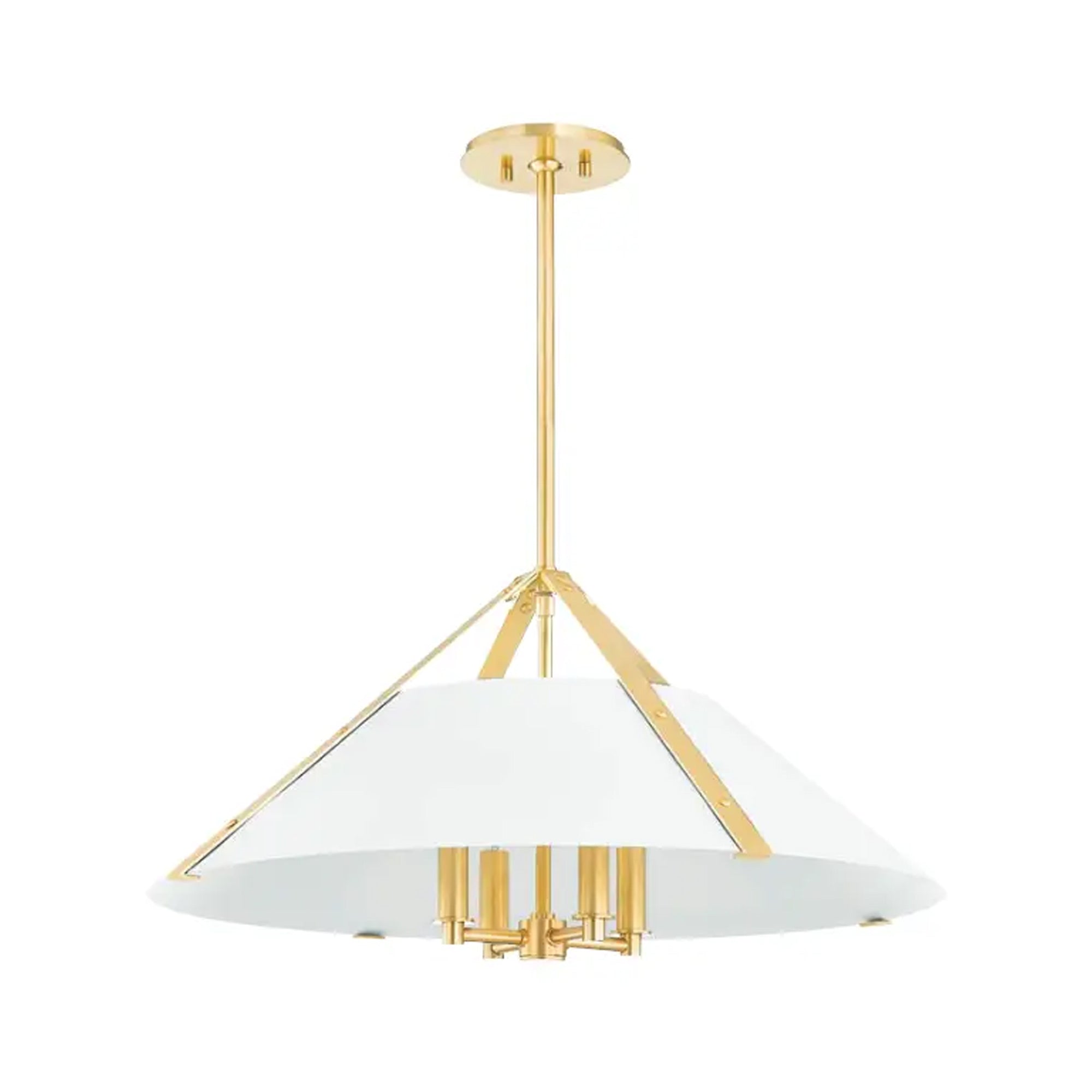 Extraordinary with a gorgeous finish palette and striking industrial design, the Raymond Pendant Light from Hudson Valley Lighting plays up the easy elegance craved in custom yet casual spaces. A structural design configuration leans on geometric shaping with a slender cone shade and metal strips forming a busy style motif, bringing a rather dramatic impact to kitchens, dining rooms, and entryways.