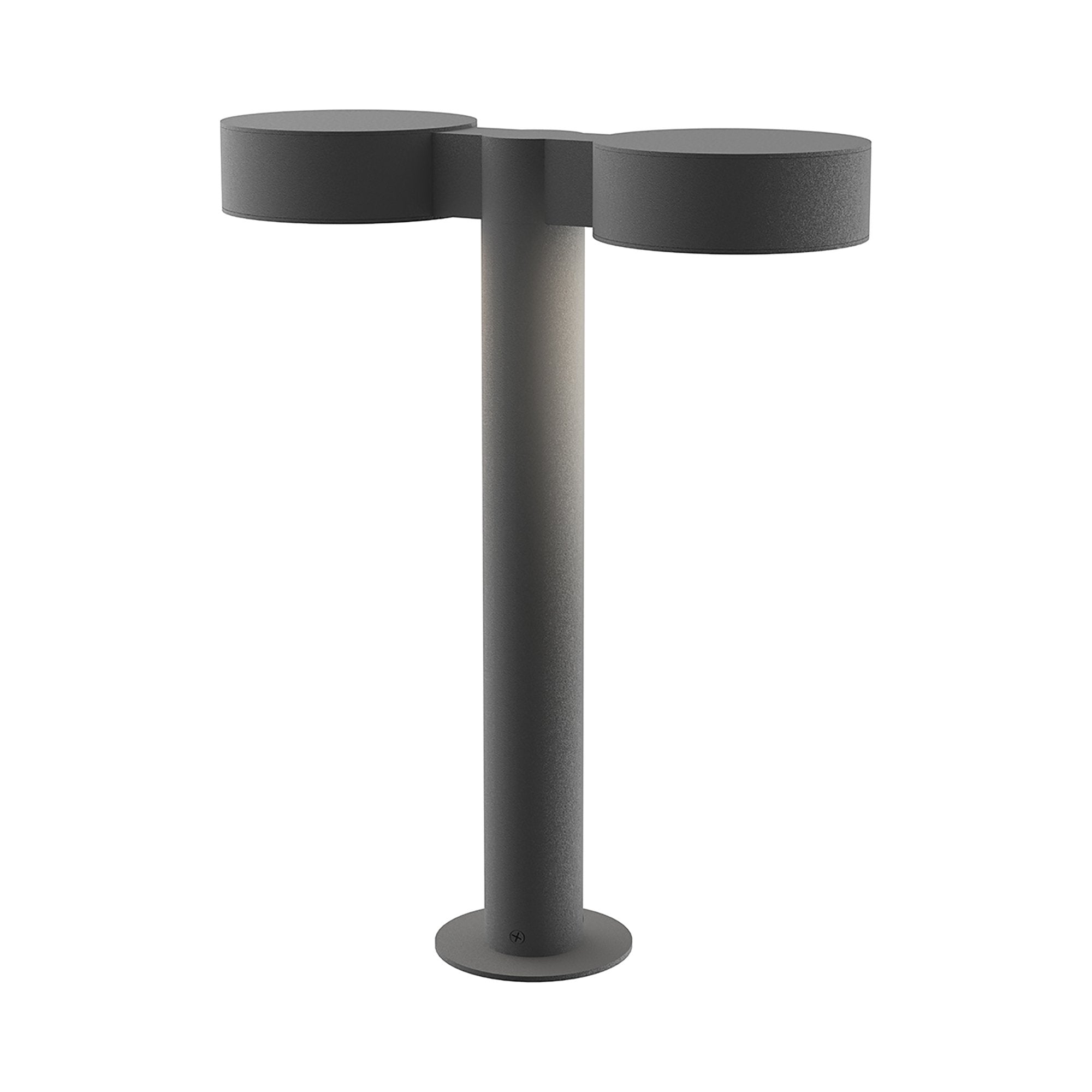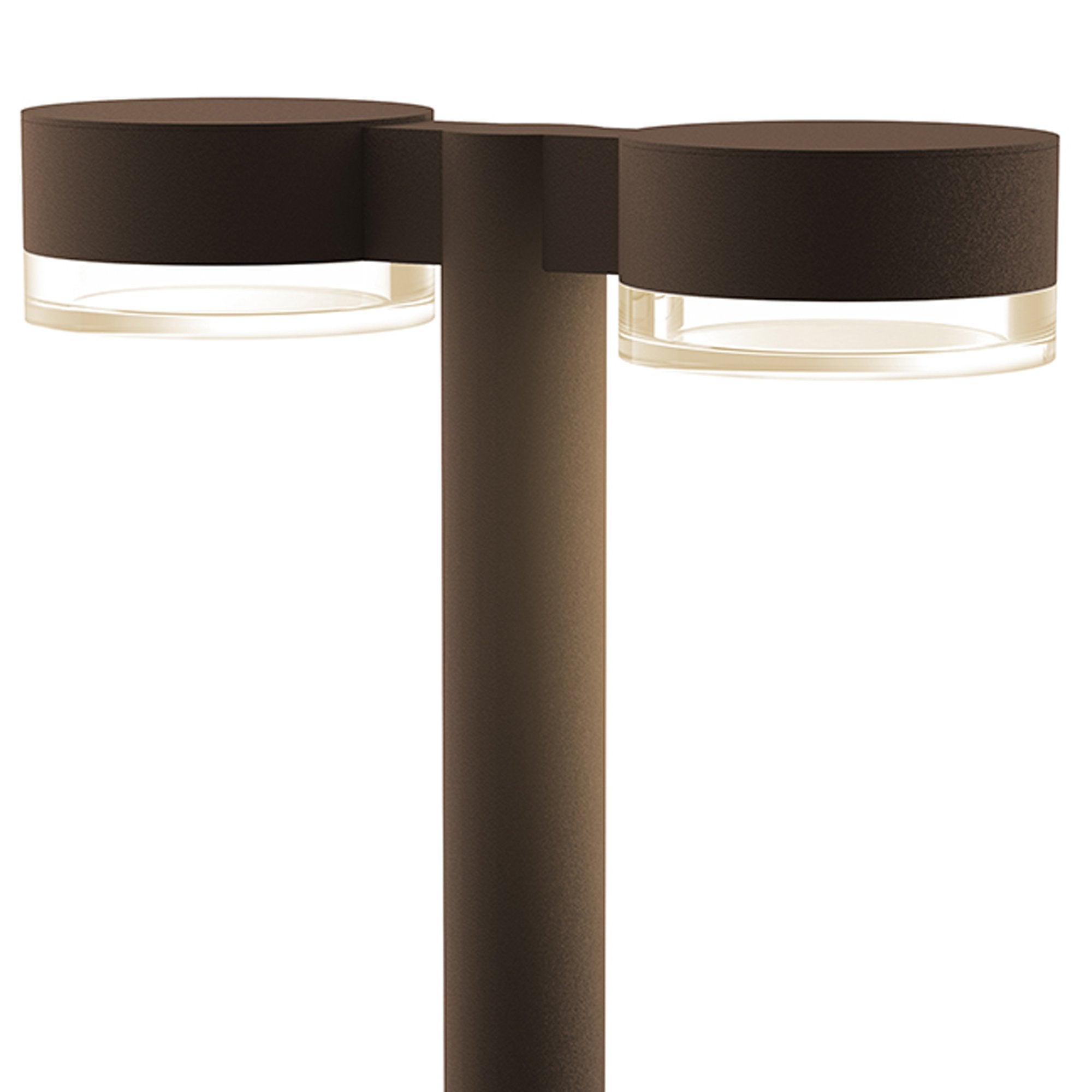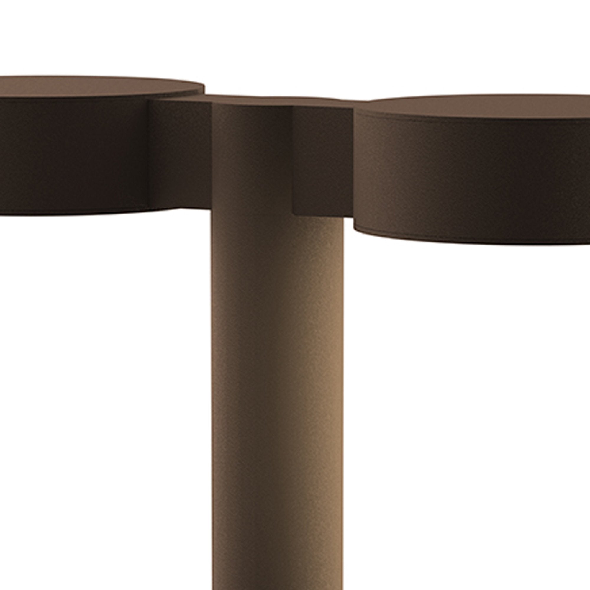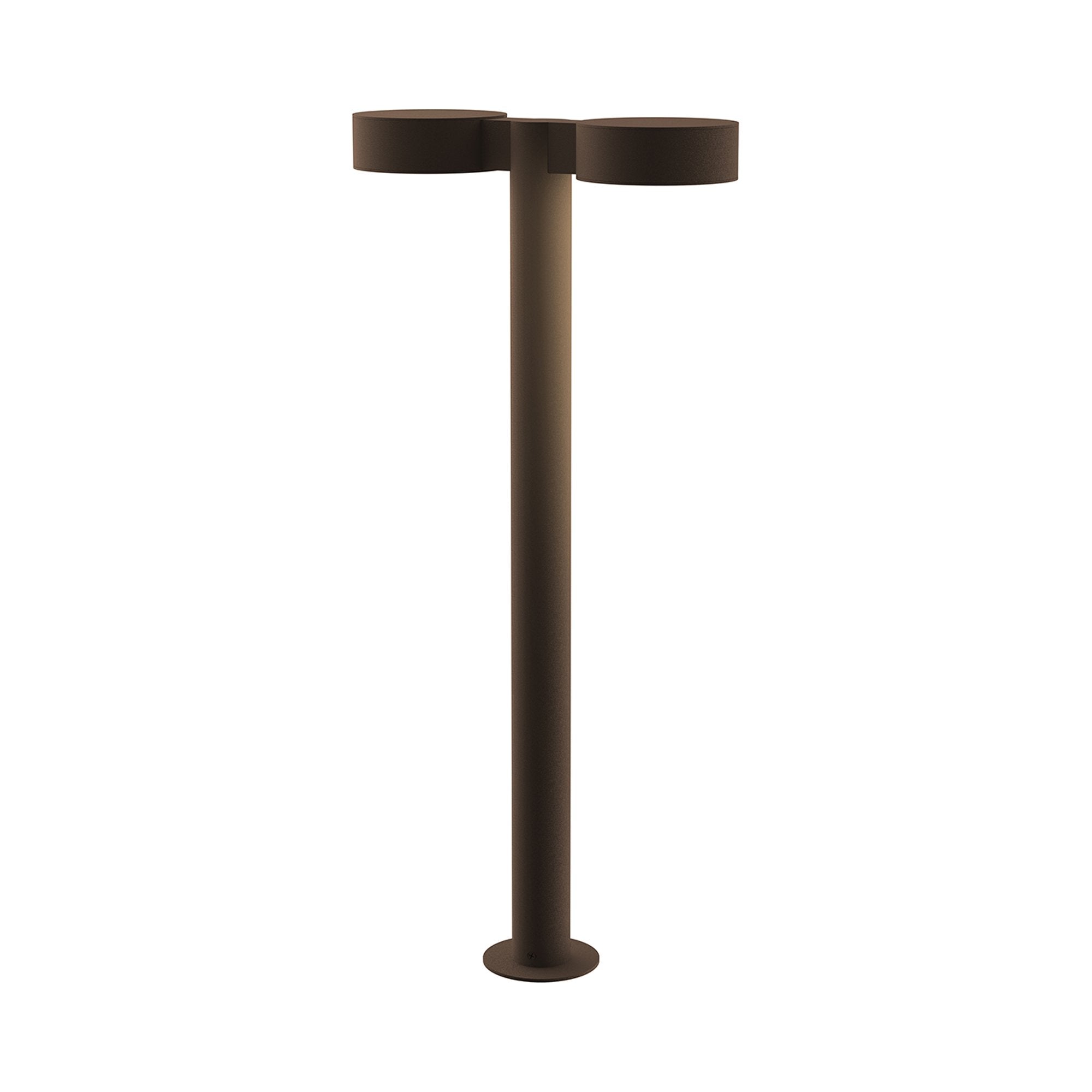 Double illumination in an exterior garden or pathway with the Reals Plate Cap LED Double Bollard from Sonneman Lighting, indulging in its rustic aluminum construction and polycarbonate lenses hidden within disc-style shades.