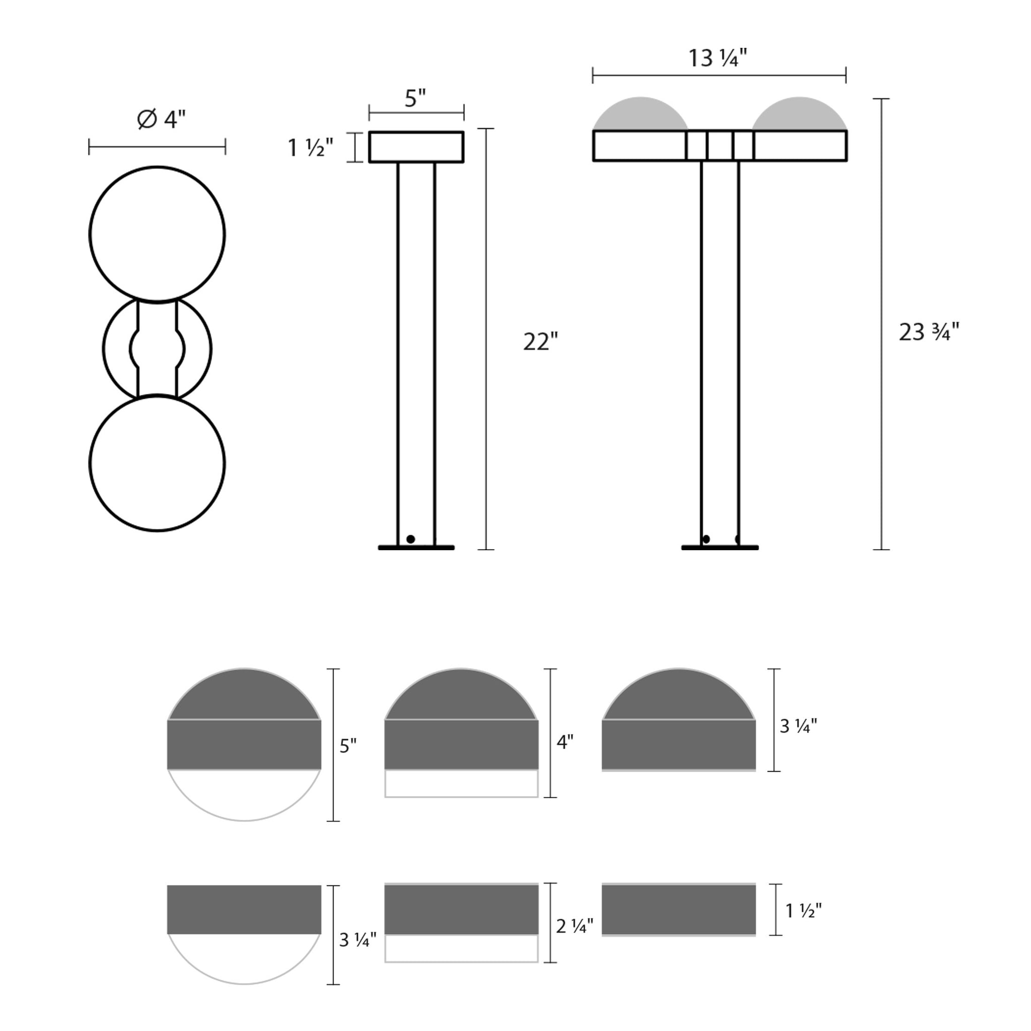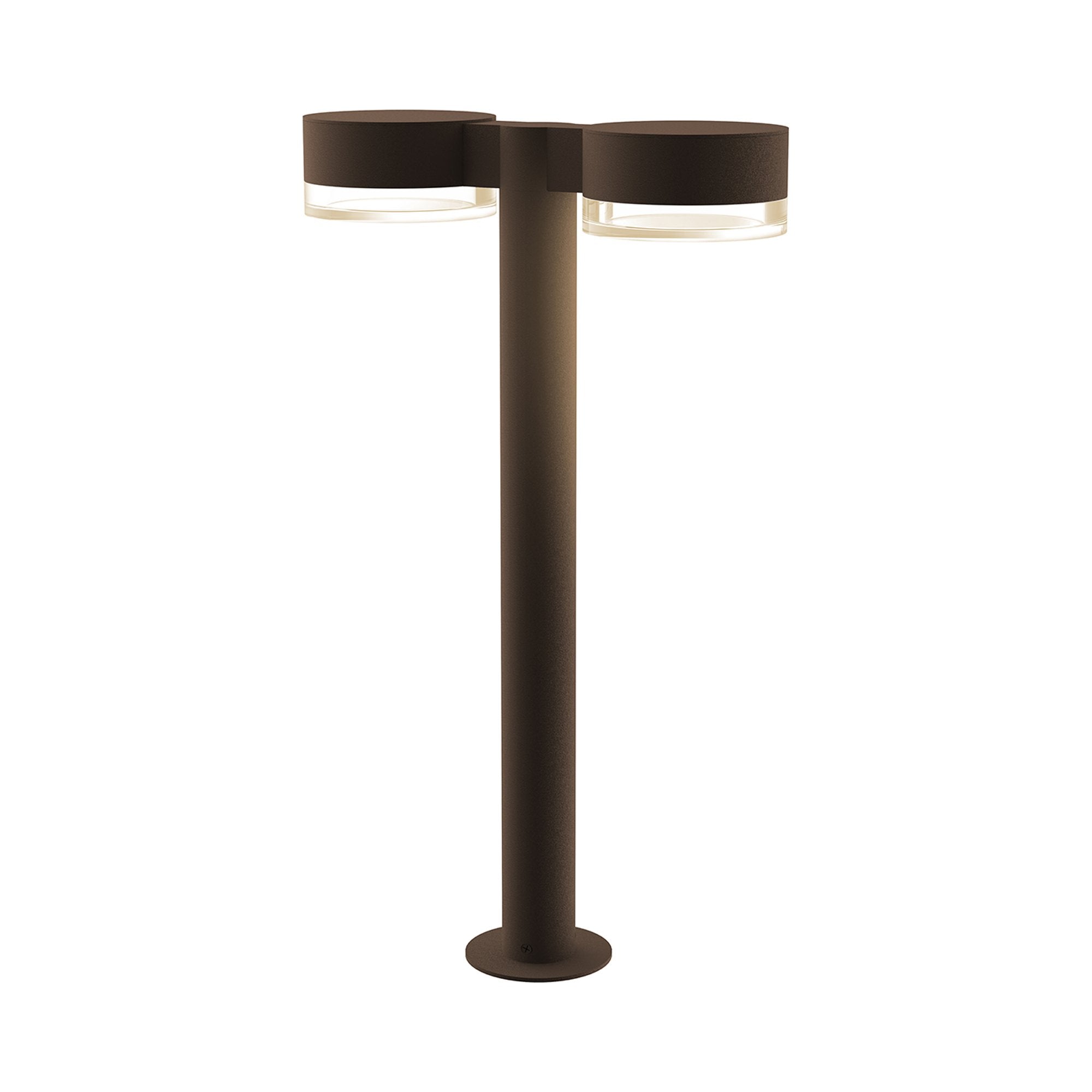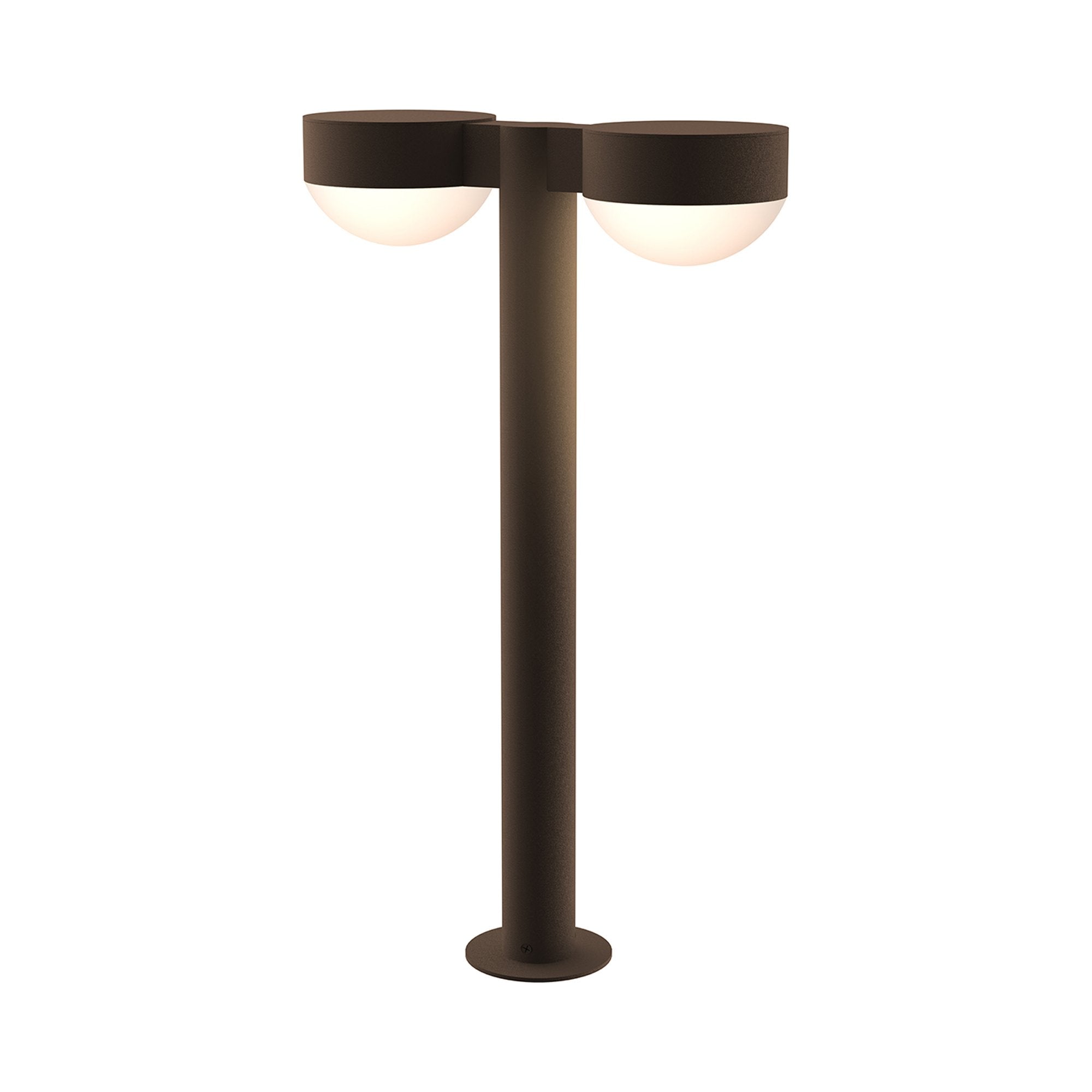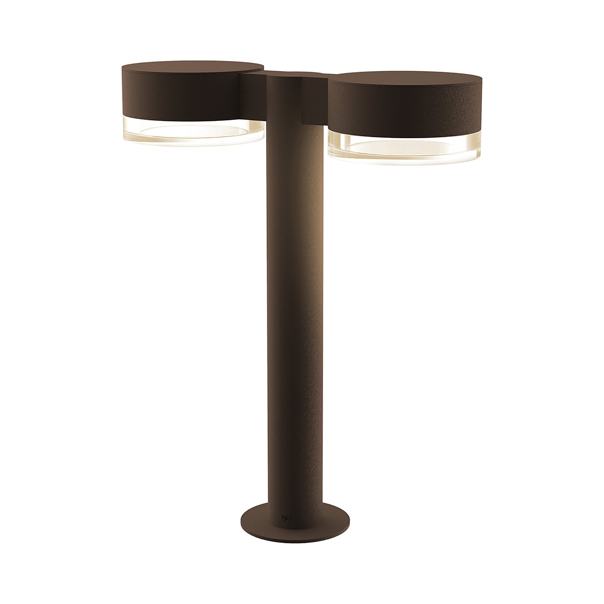 Double illumination in an exterior garden or pathway with the Reals Plate Cap LED Double Bollard from Sonneman Lighting, indulging in its rustic aluminum construction and polycarbonate lenses hidden within disc-style shades.