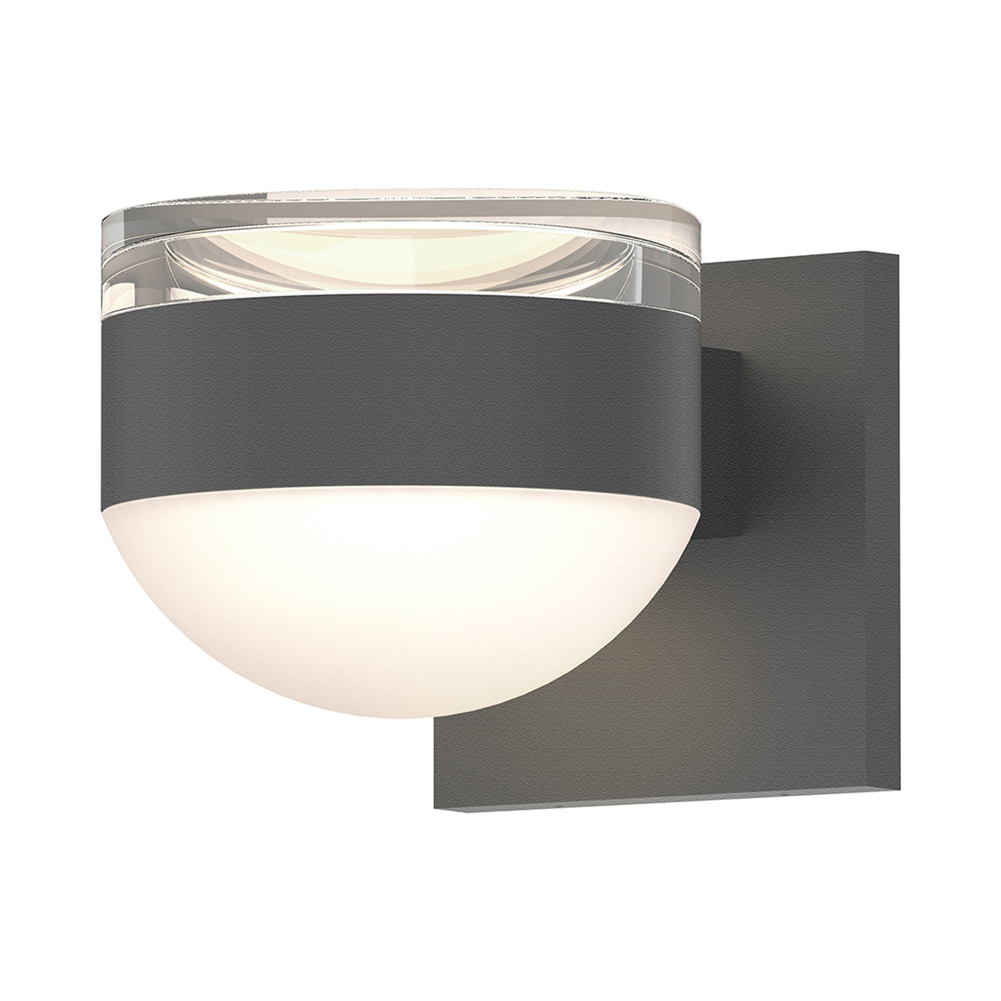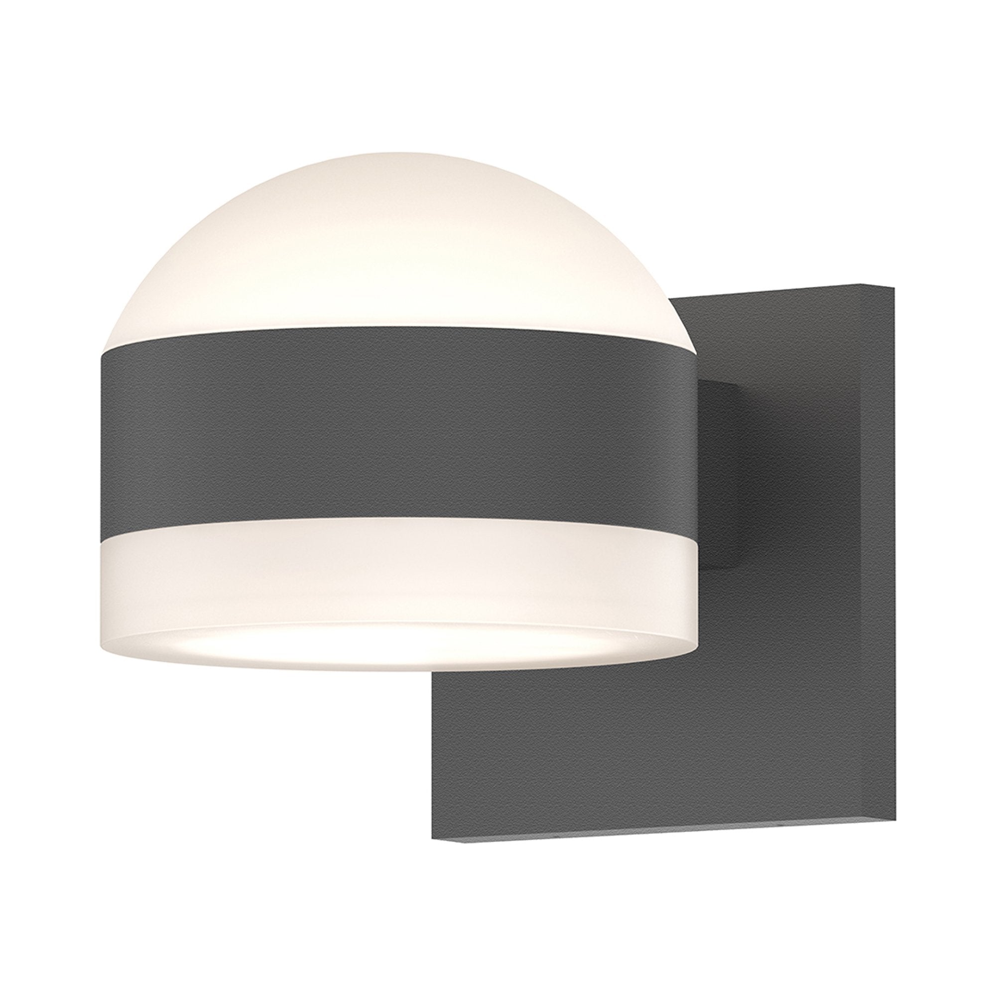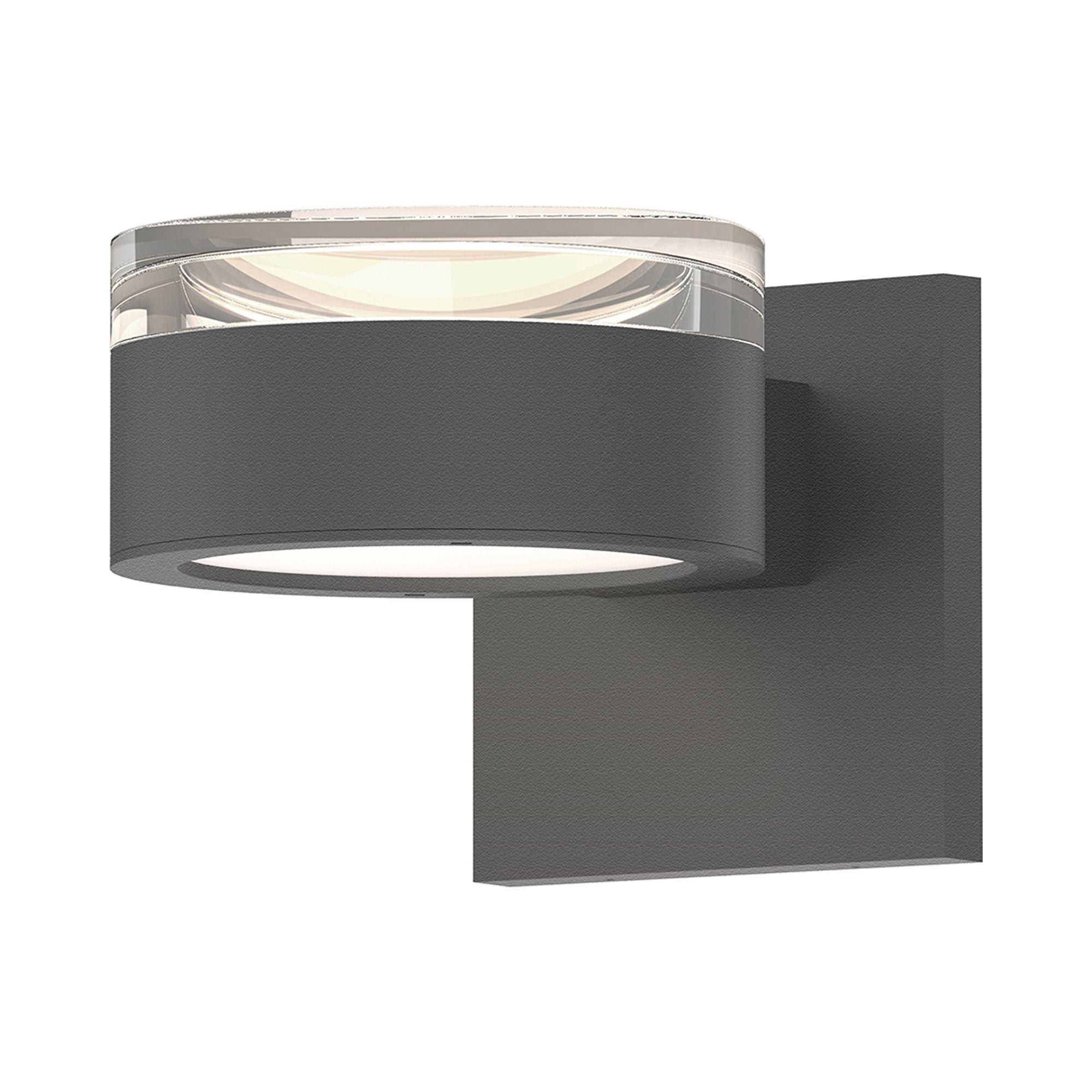 Bi-directional illumination plays a role in evening entertaining when the Reals Up/Down Outdoor LED Wall Light from Sonneman Lighting offers an artful domed polycarbonate lens and aluminum backplate and disc-shape frame.