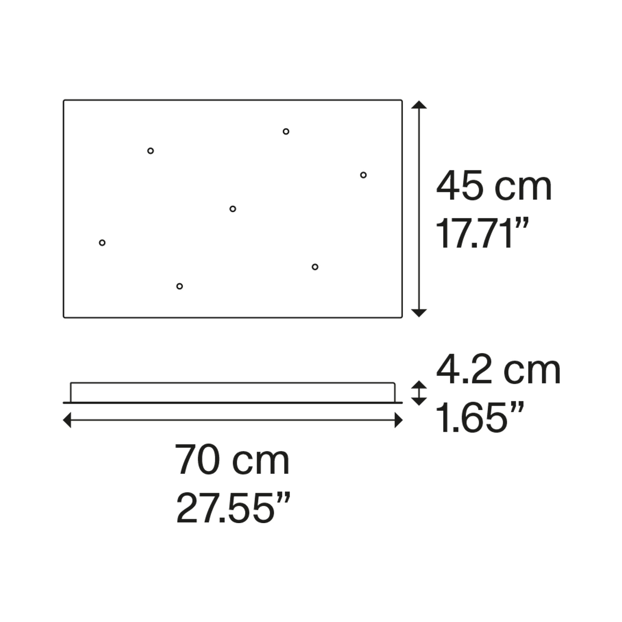 Full customization is at your fingertips as the Rectangular Canopy from LODES sets up the start of a tailored display of lights. A rectangular shape accommodates a shower of carefully placed wires or cables, sets up creative license to construct an assembly of dangling lamps. Go to work with a plan that starts with this functional canopy.