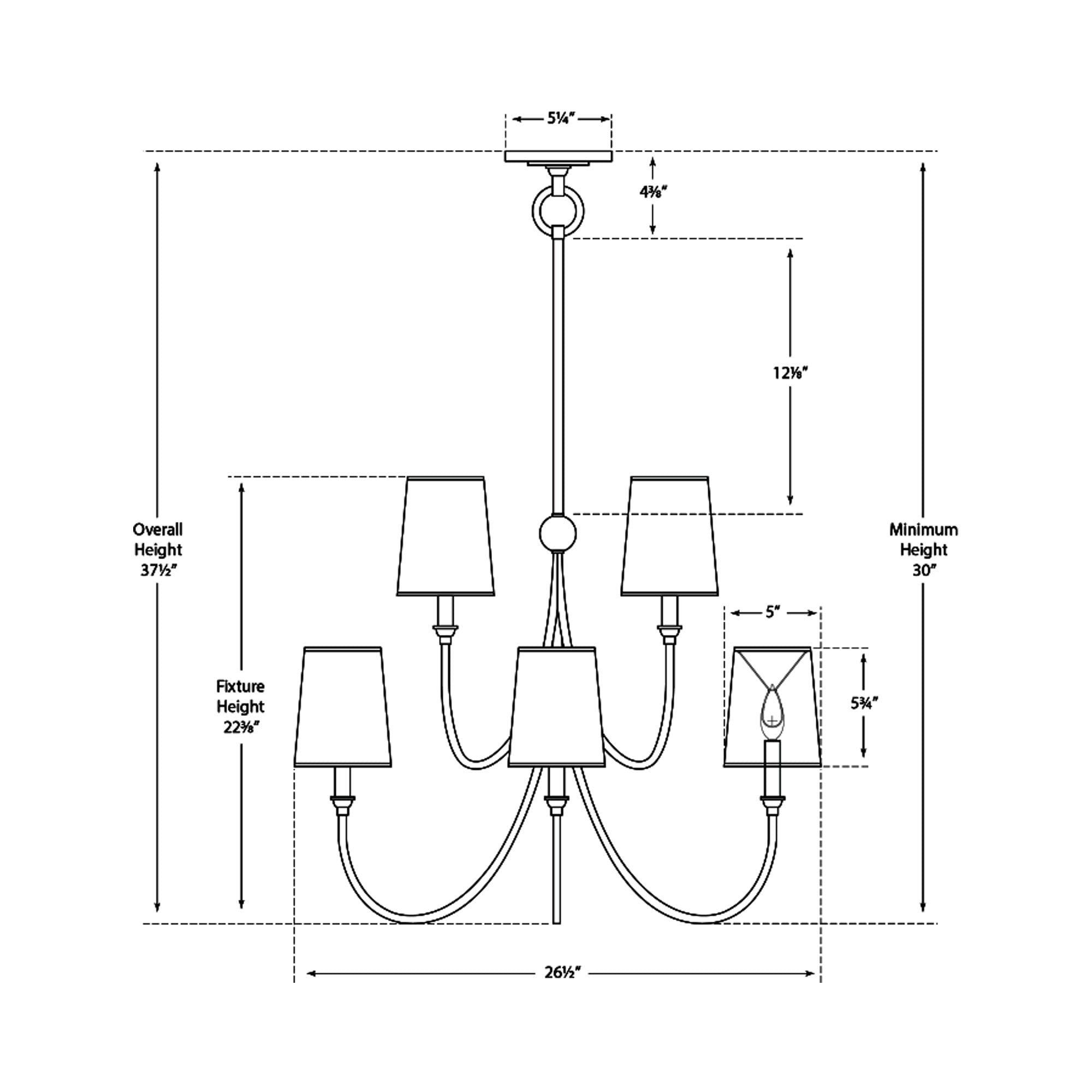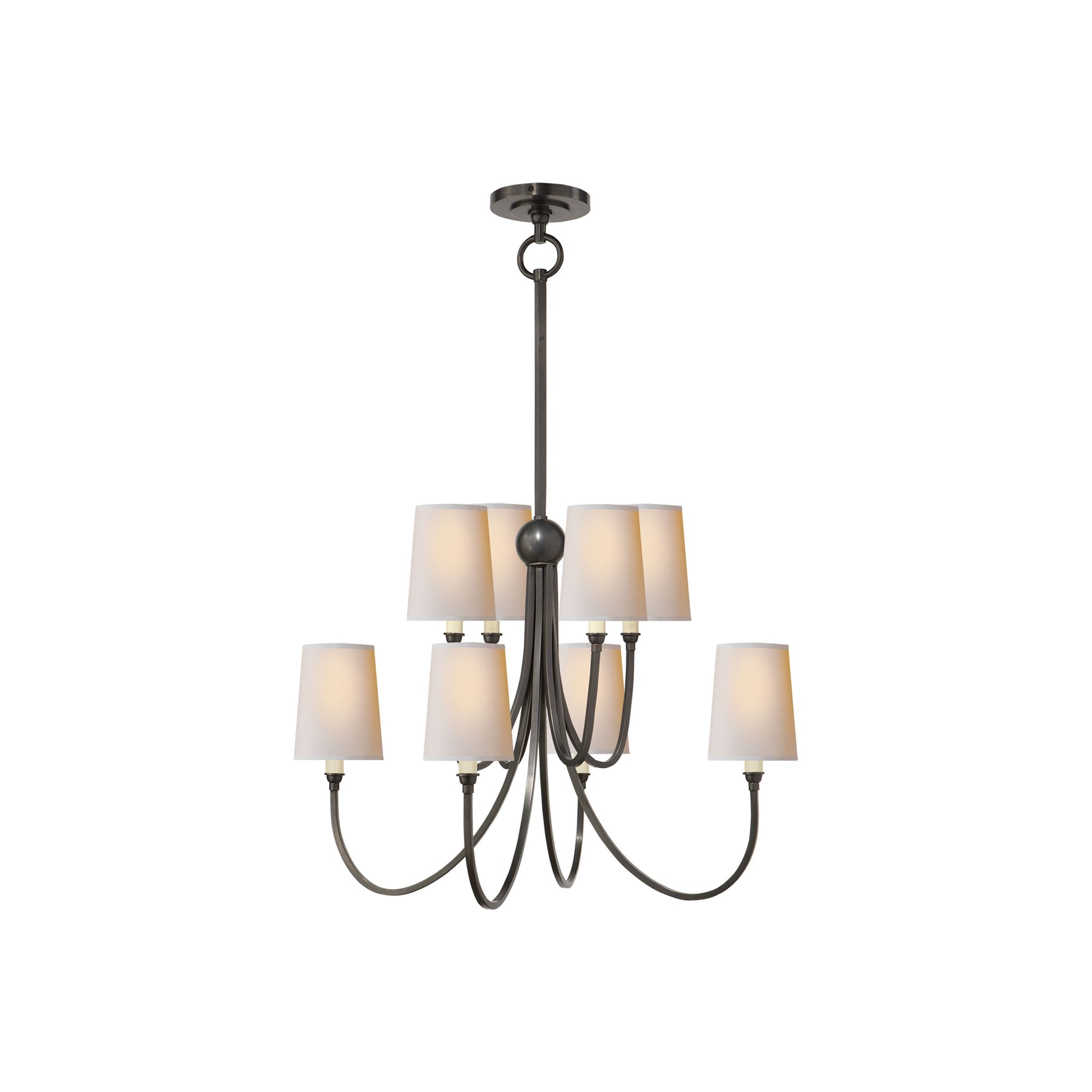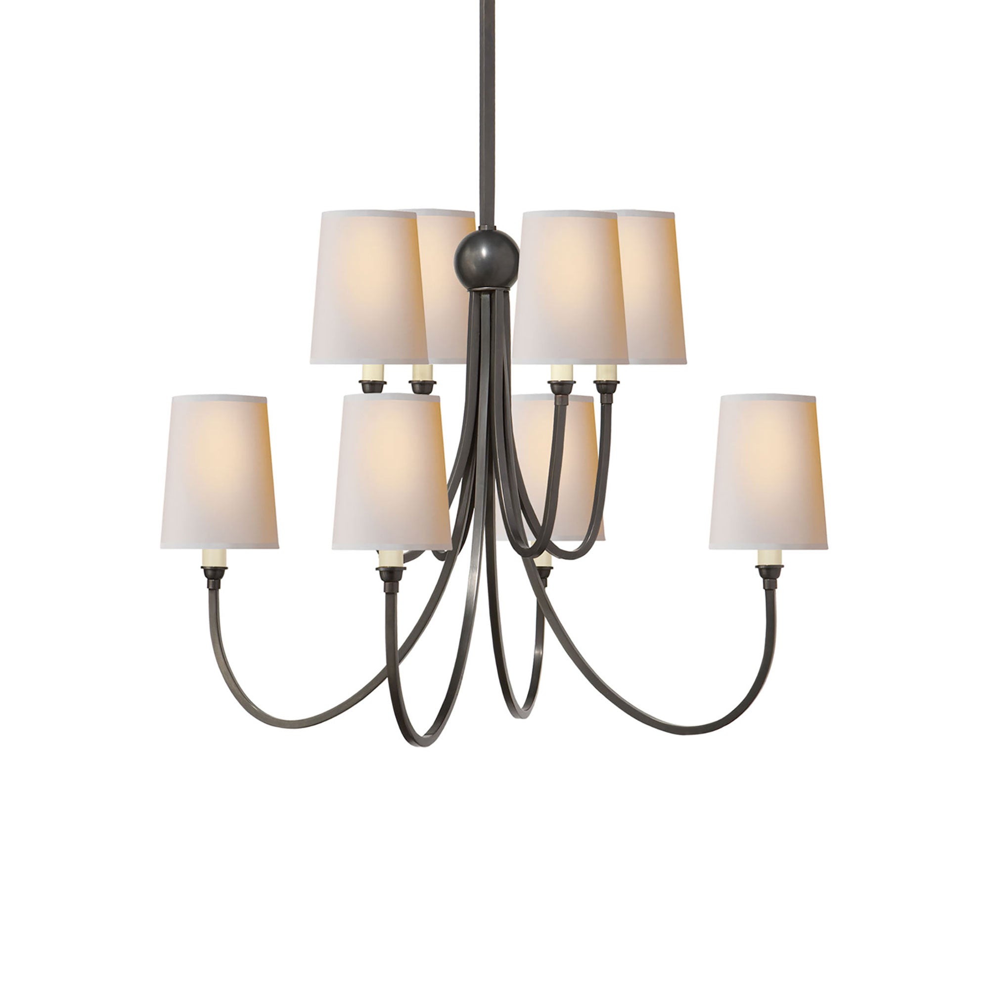 Choose lighting fixtures that represent the overall motif of a custom modern space. The Reed Chandelier from Visual Comfort Signature simplifies illumination in a metal frame with alluringly curved arms and a decorative emblem placed near linen shades. Versatile style aesthetics create multiple possibilities for blending this sophisticated chandelier into décor motifs of dining spaces, living rooms, and entryways.