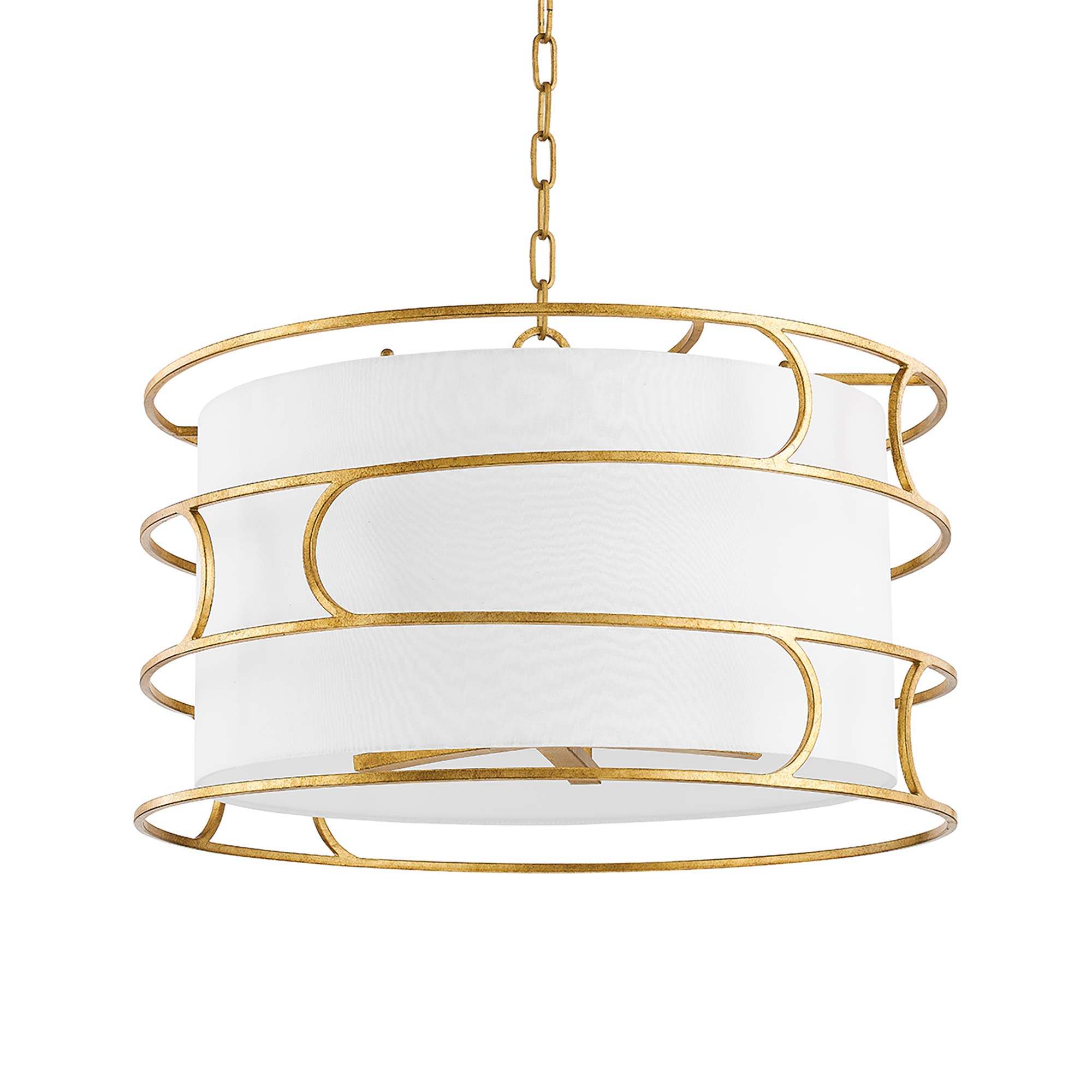 Bring out the style-indulgent interior crafter with the charming Reedley Chandelier from Troy Lighting. Designer finishes create a whimsical story of curved lines and extra accents in a tasteful updated fixture. Swirling metal framing exacerbates the iconic sophistication of a drum shade, spinning a retro-inspired look that captures attention.