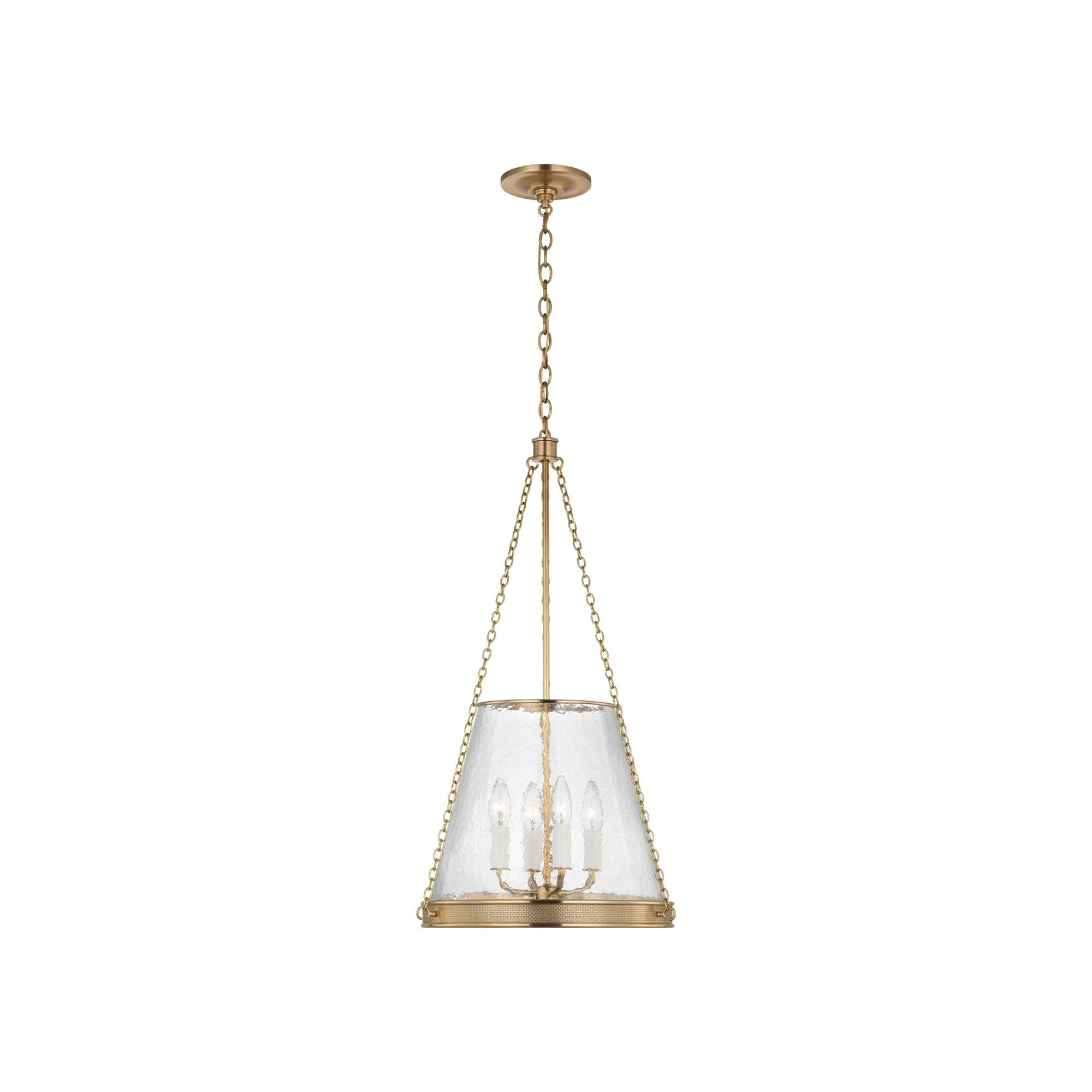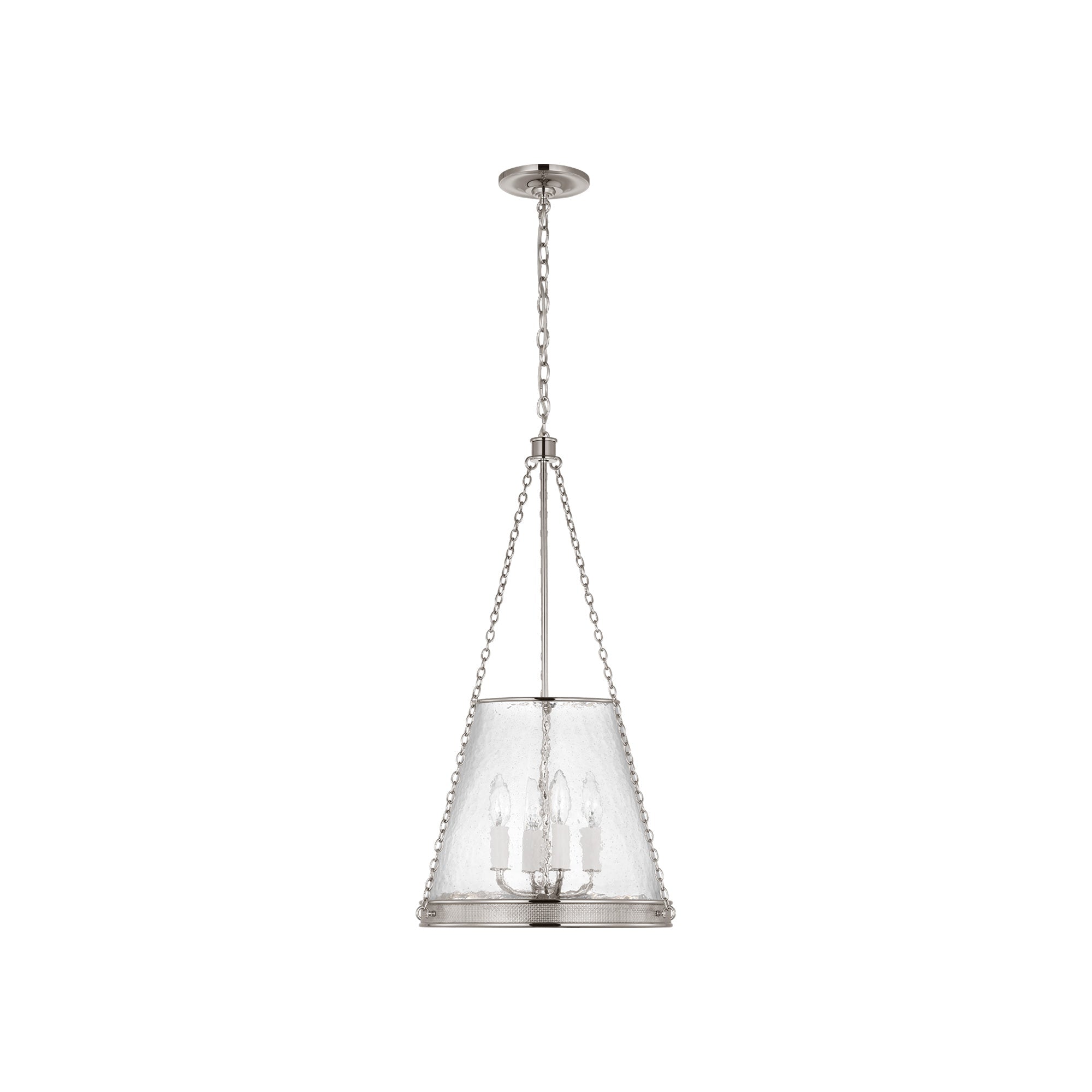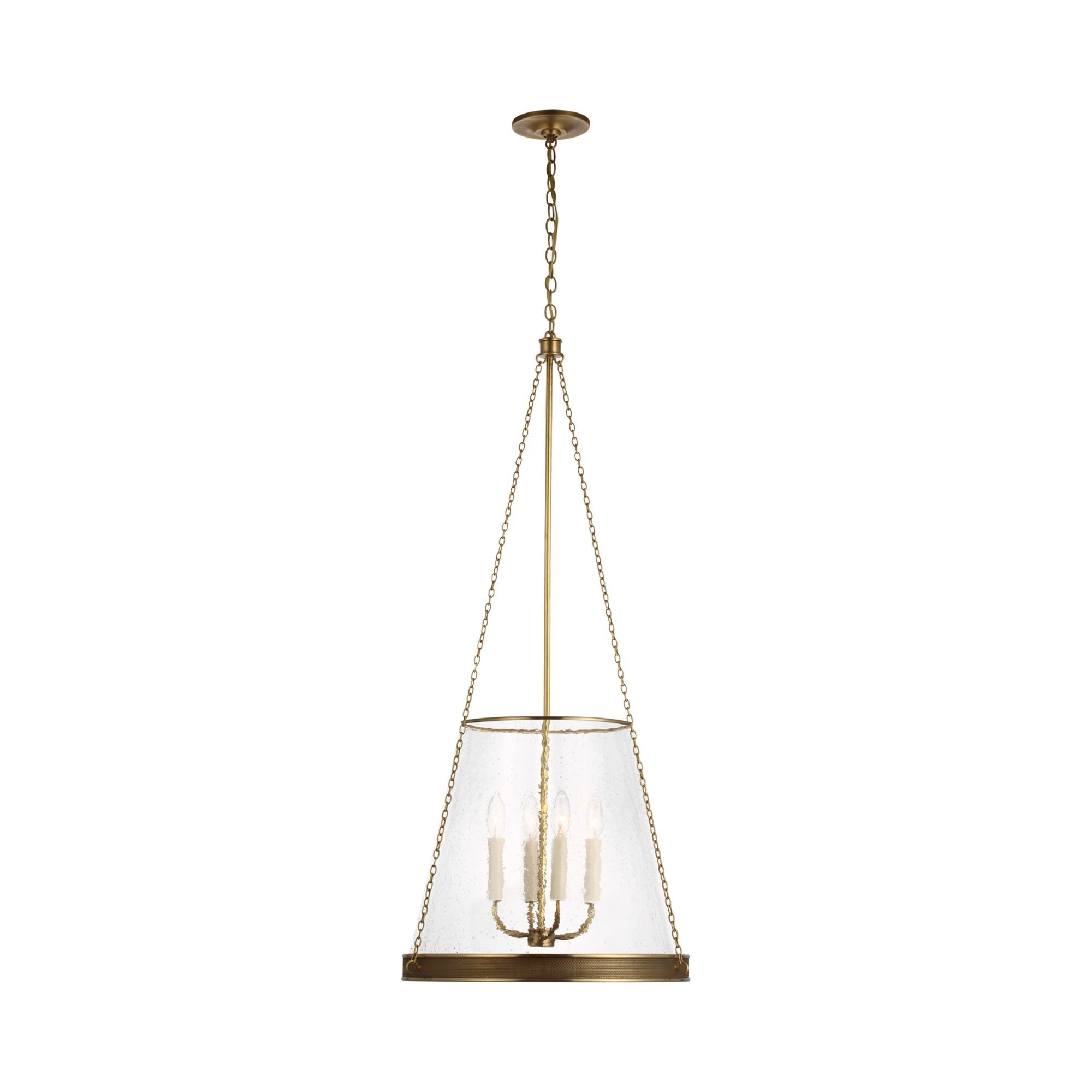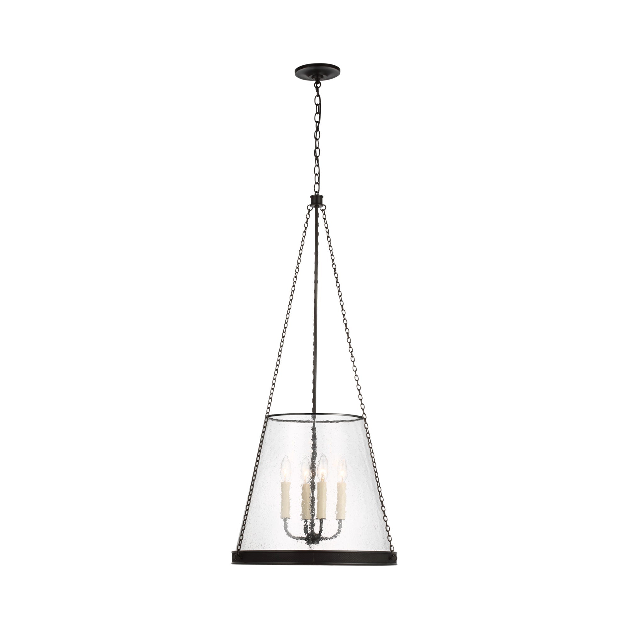 Inverted design creates a bold, engaging look for the Reese Pendant Light from Visual Comfort Signature. Four lights sit within a tapering shade, supported with a metal and chain link framework that creates bold contrast and detail in your kitchen or dining room.