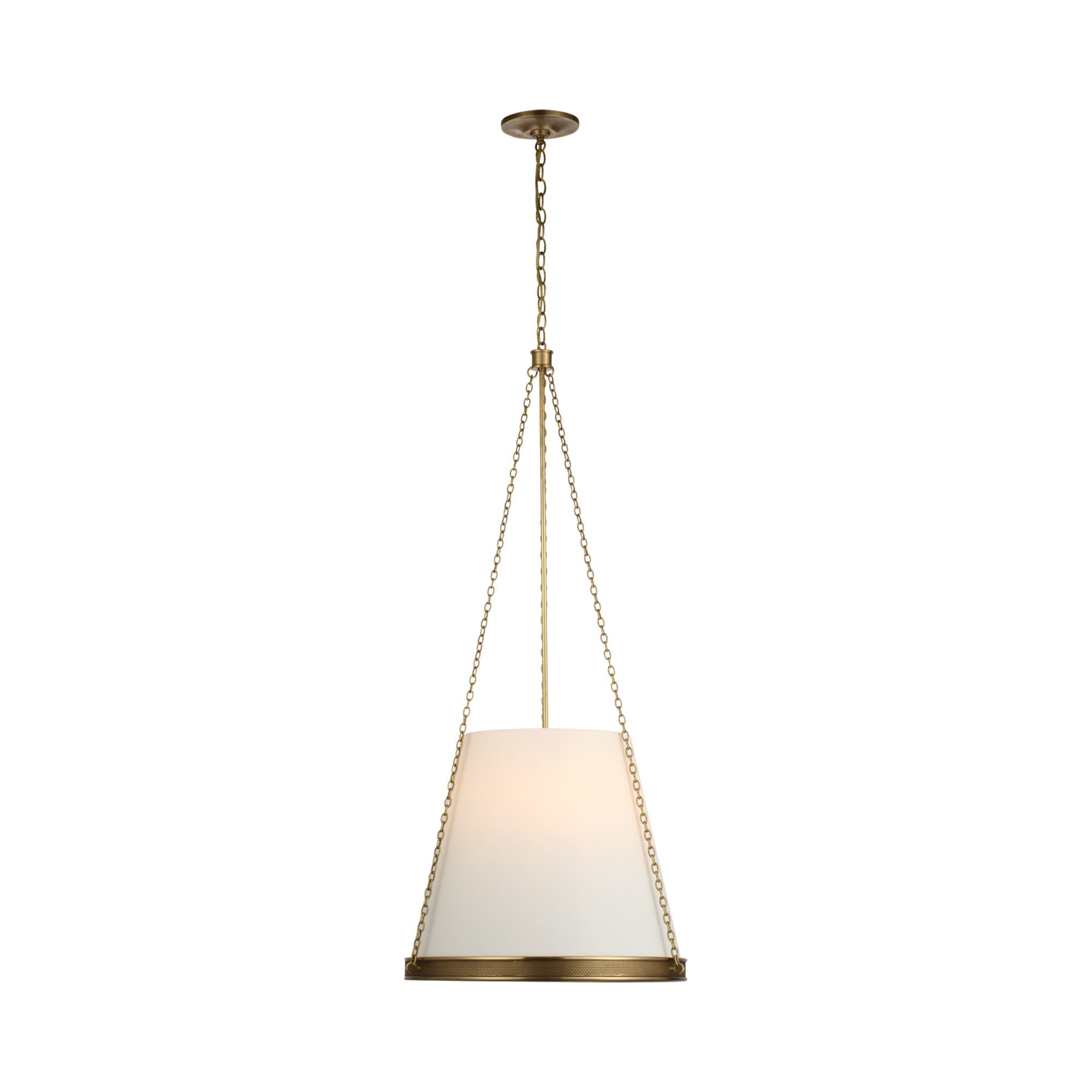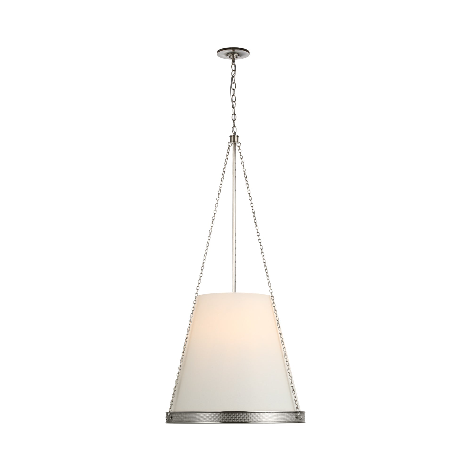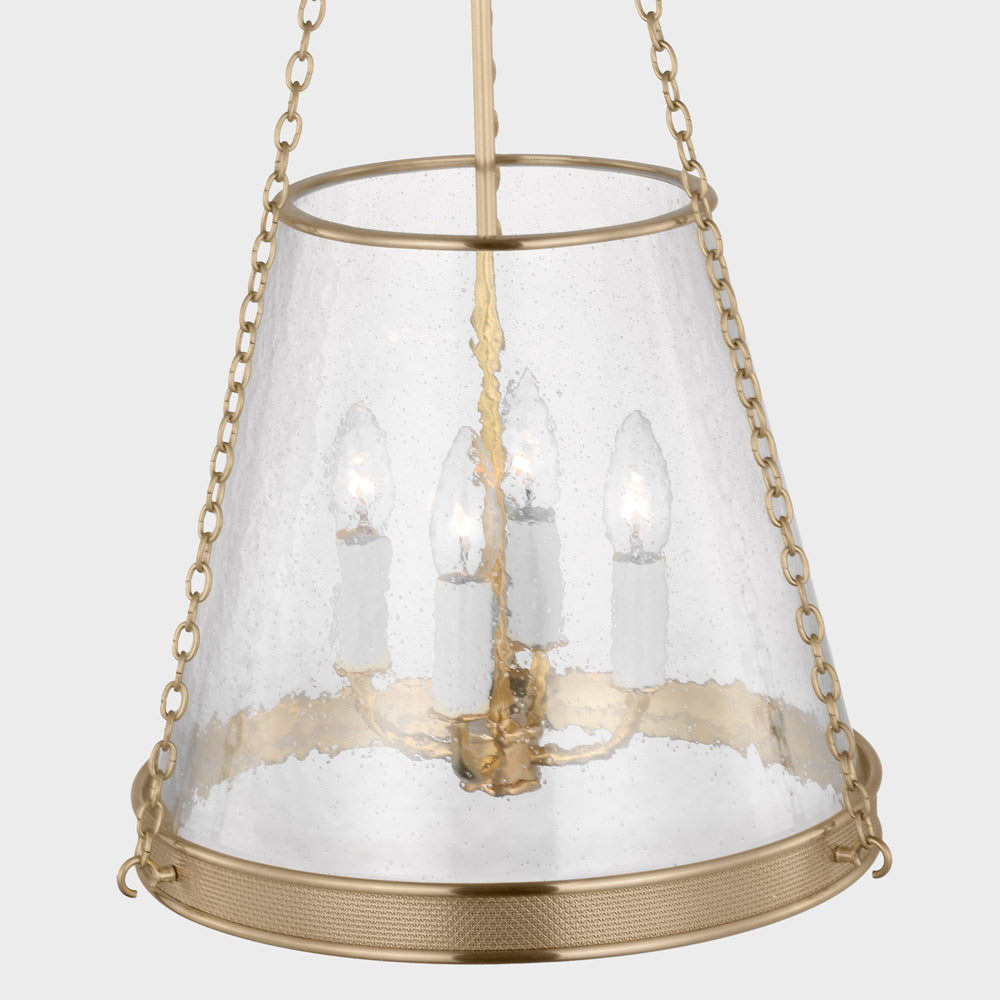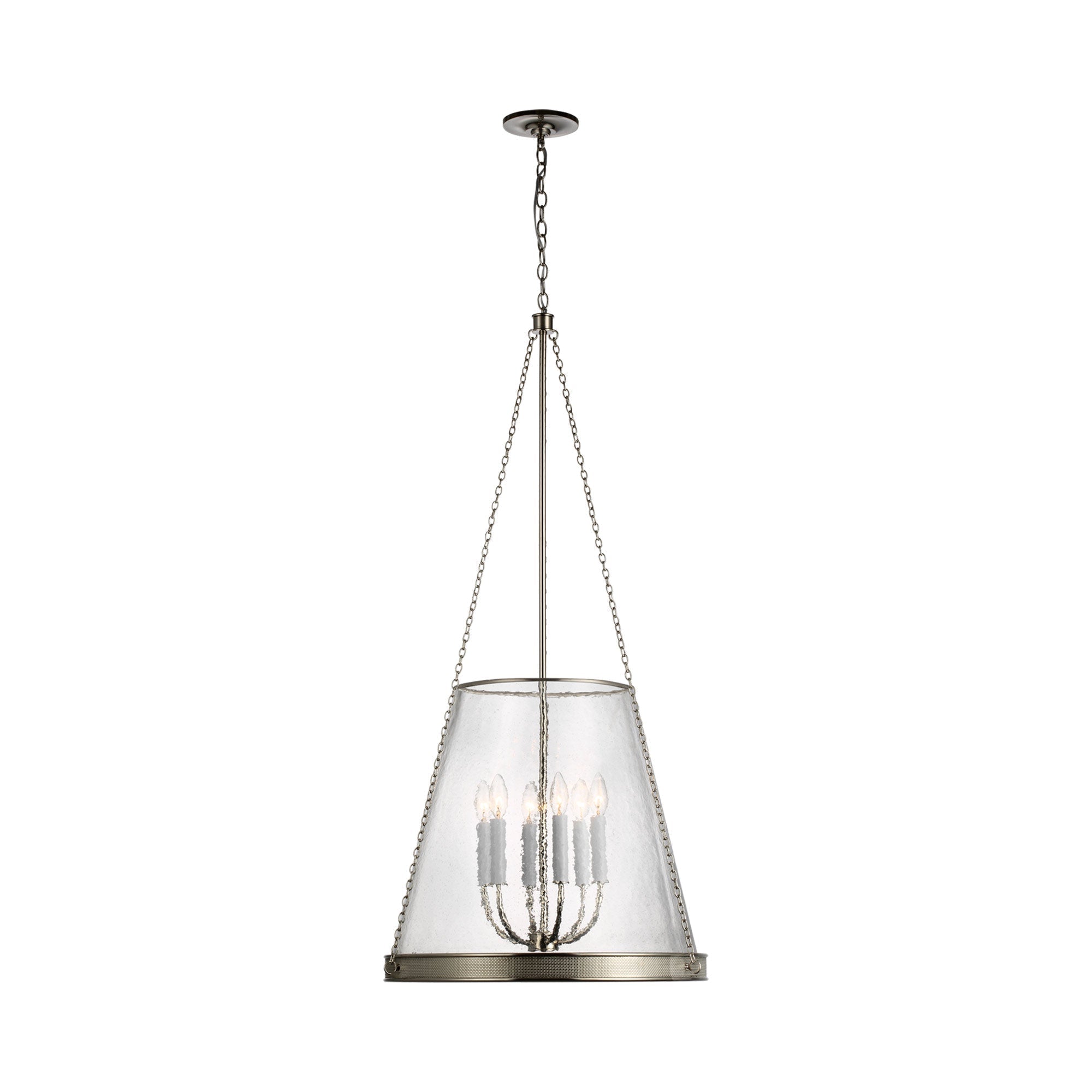 Inverted design creates a bold, engaging look for the Reese Pendant Light from Visual Comfort Signature. Four lights sit within a tapering shade, supported with a metal and chain link framework that creates bold contrast and detail in your kitchen or dining room.