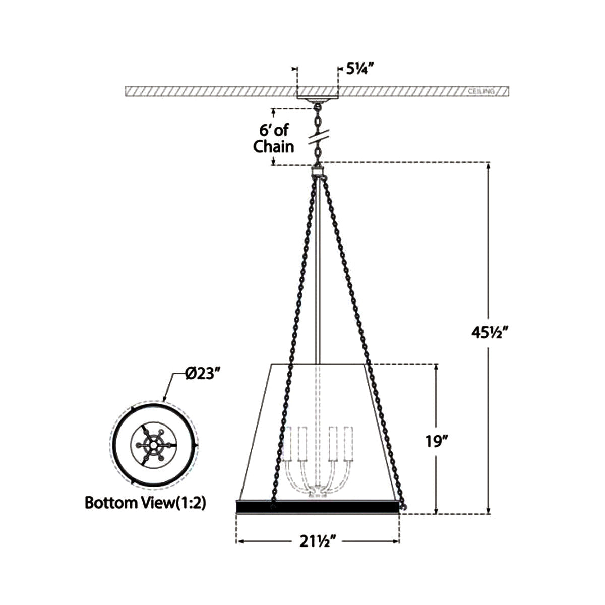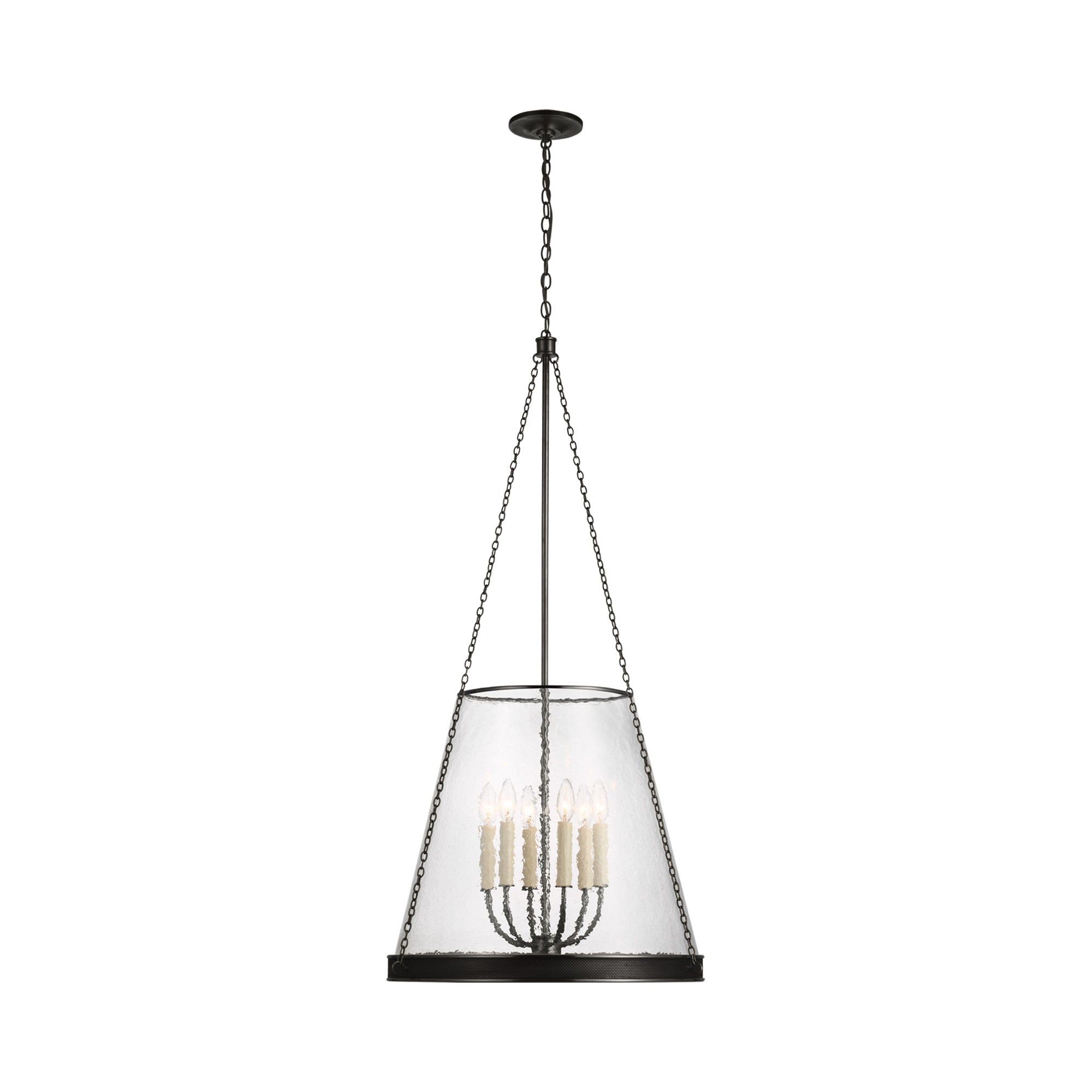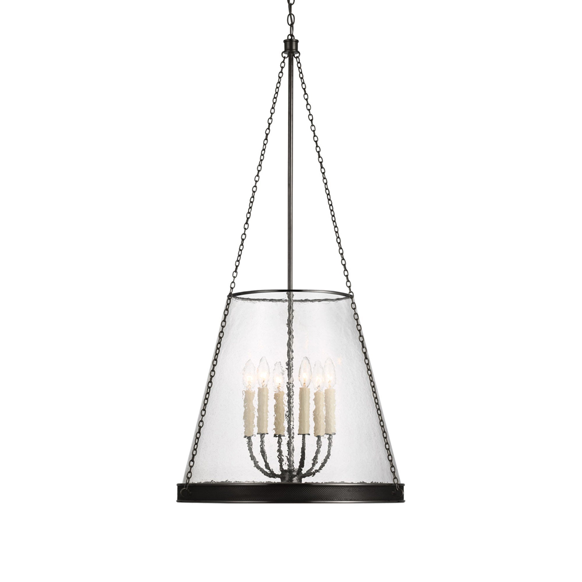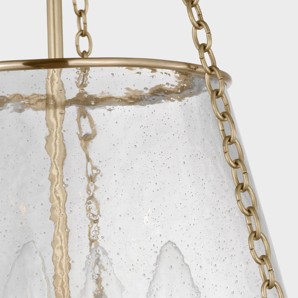 Inverted design creates a bold, engaging look for the Reese Pendant Light from Visual Comfort Signature. Four lights sit within a tapering shade, supported with a metal and chain link framework that creates bold contrast and detail in your kitchen or dining room.