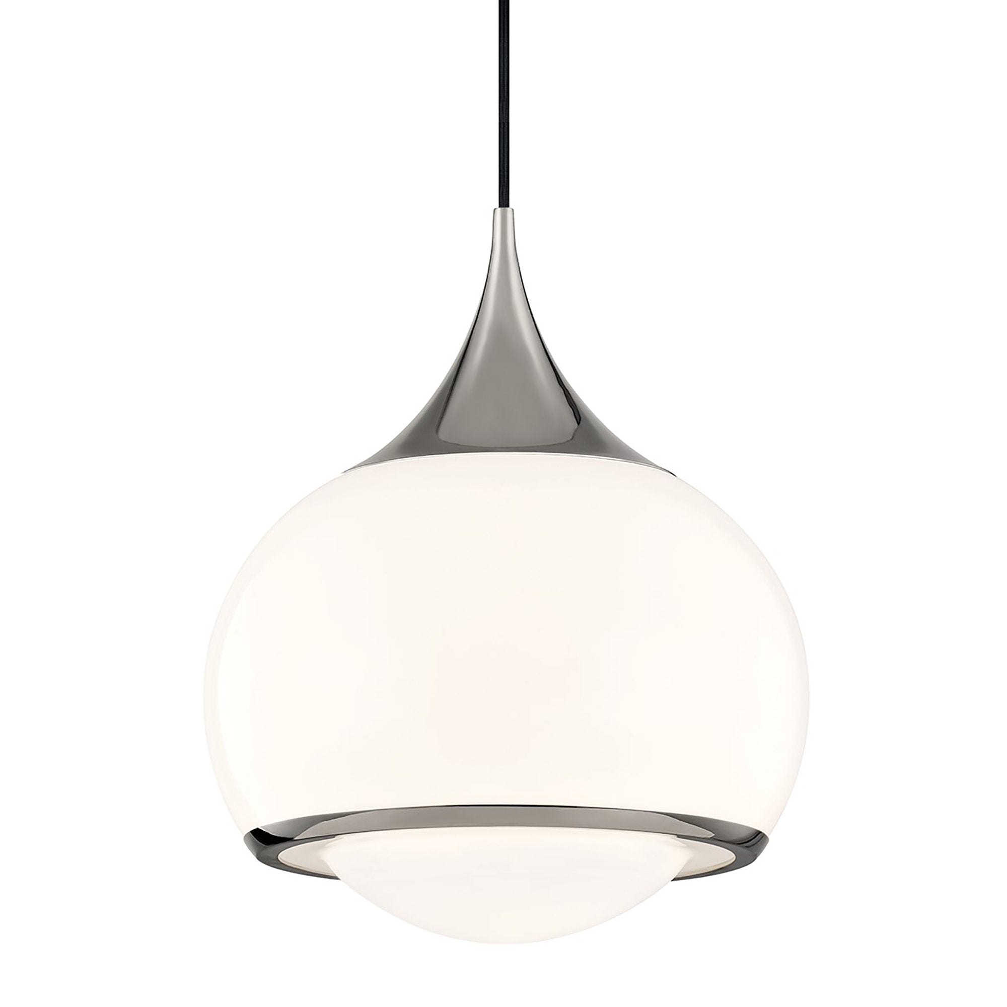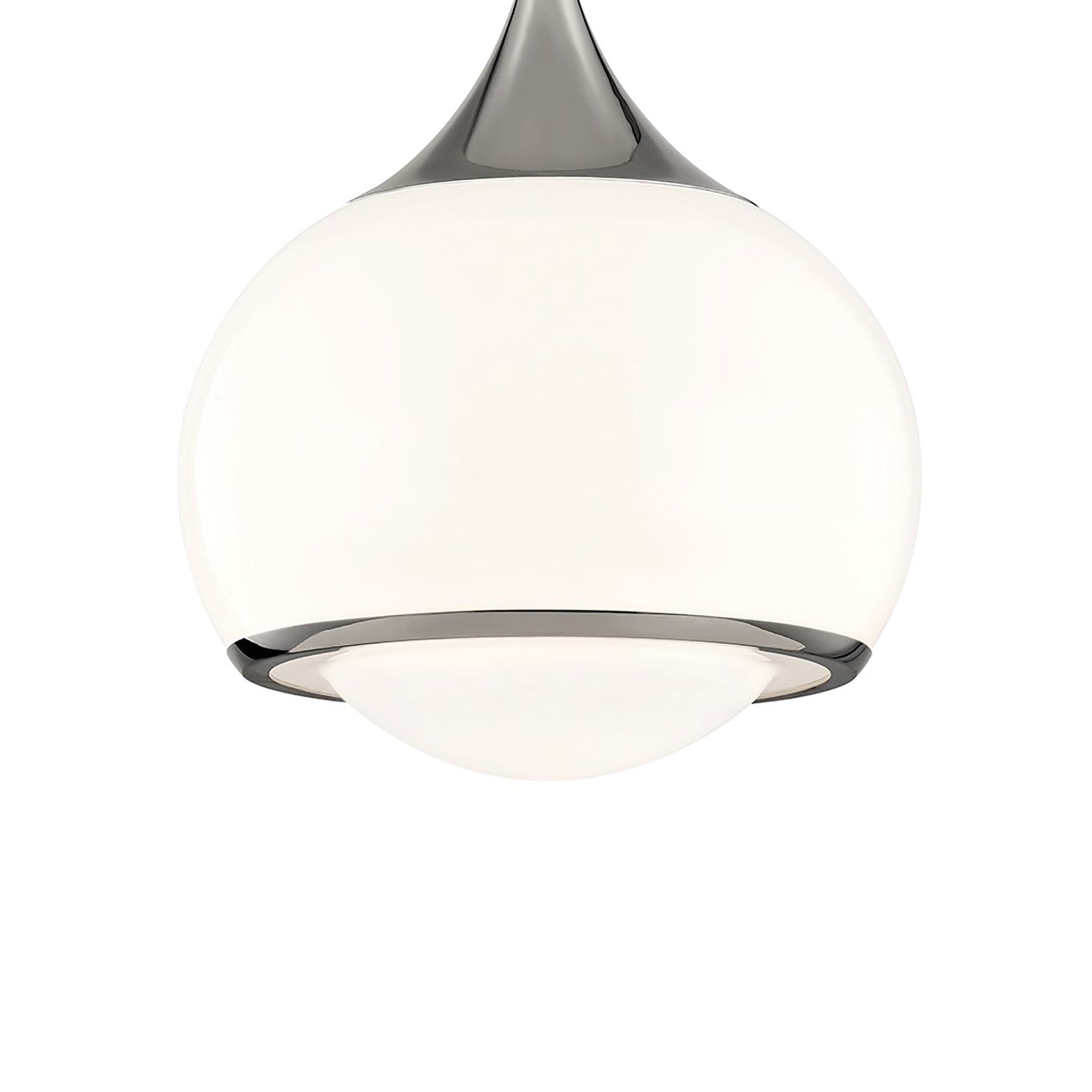 Accentuate your refined taste with the sleek lines and gentle curves of Reese Pendant Light from Mitzi. An alluring addition to the elegantly-styled home, this piece exudes unique character with gleaming metal accents and a bold silhouette with a delicate white shade for softly diffused light.