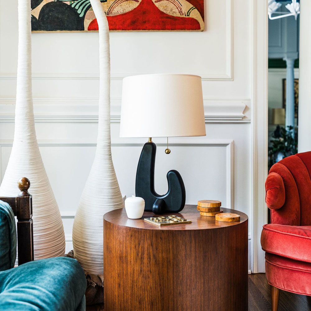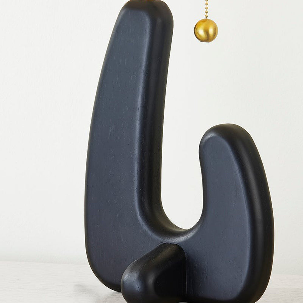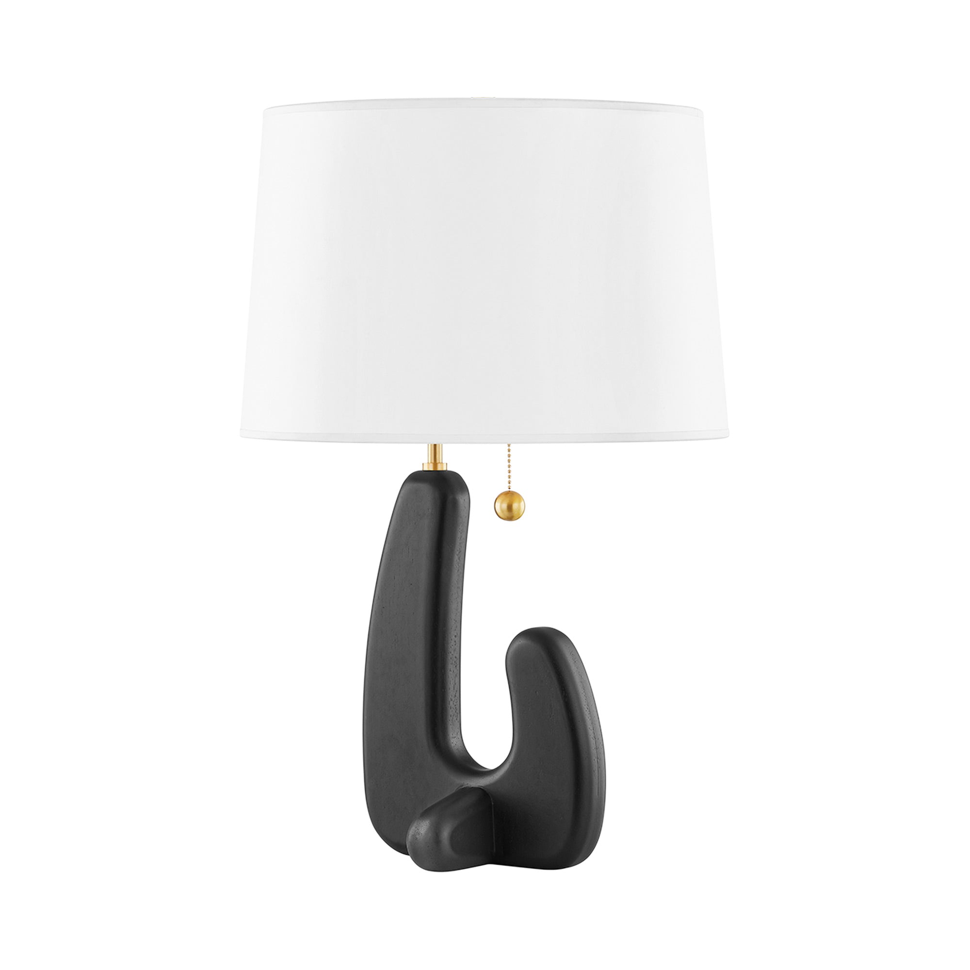 Sculpted and asymmetric, the Regina Table Lamp from Mitzi is a dynamic choice for a focal point on a side or console table. Its blackened wood base is accentuated with a ball finial on a pull chain, perfectly highlighting the space created with its J-shaped design. On top sits a tapered drum of cream paper, pairing with an aged brass hardware finish to create a clean, sleek ambiance for your space.