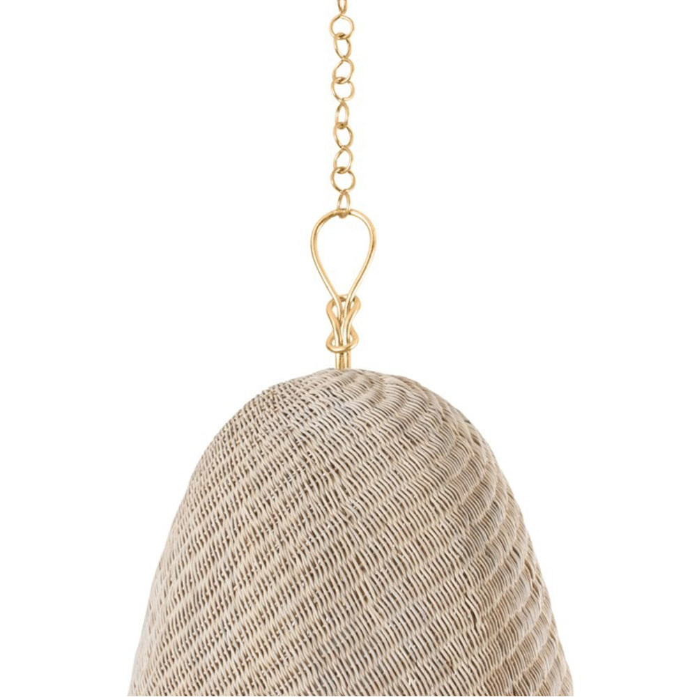 Romantic Boho inspiration goes tropical and natural with an organic feel, turning the Reina Pendant Light from Hudson Valley Lighting into a statement piece that just happens to illuminate a casual space. Coastal ambiance is key with a fixture featuring a handwoven basket-like bell shaped shade hanging from a charming open metal holder and suspending from a linked chain. The carefree vibe of this casual pendant is a winning selection for foyers, living spaces, and bedrooms.