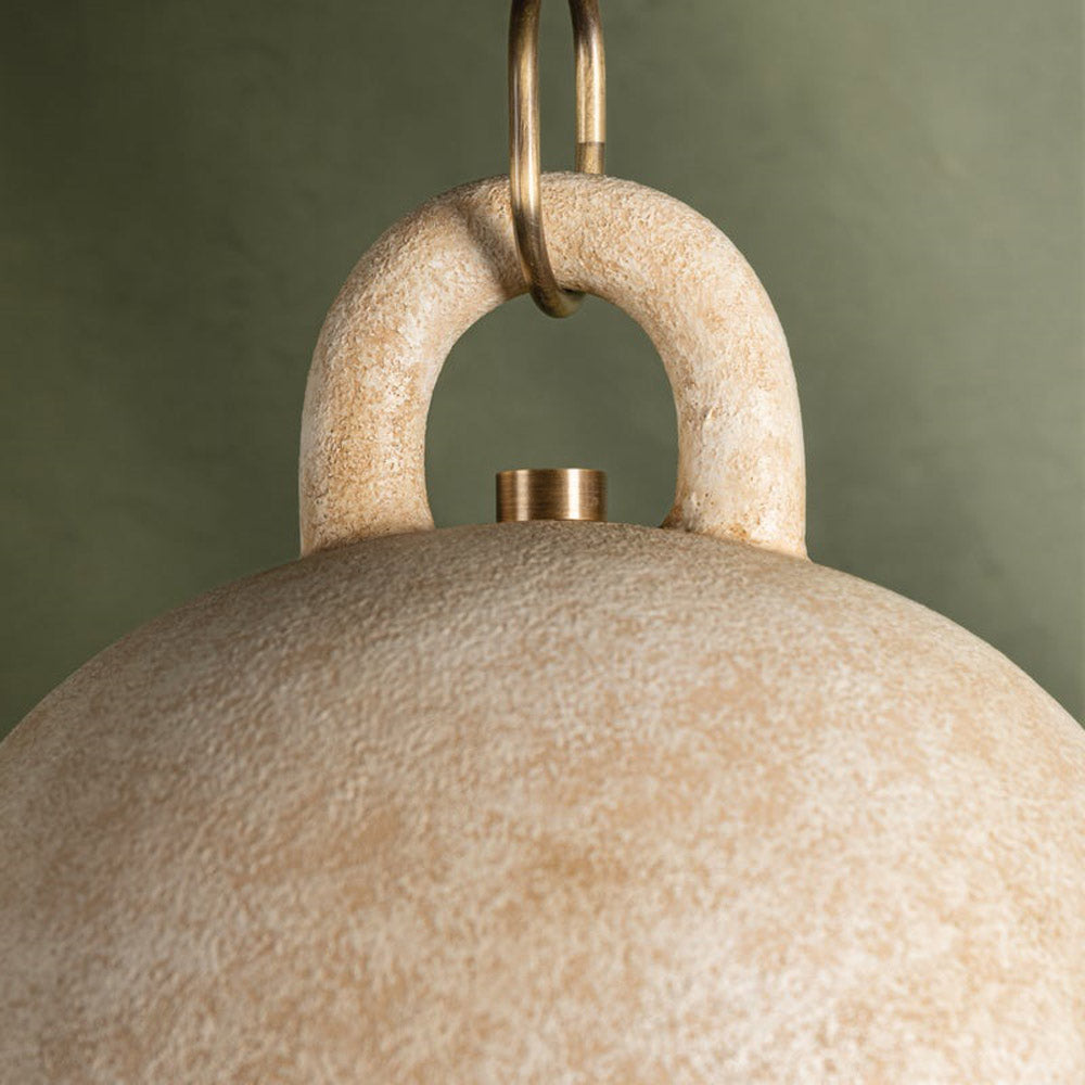 Easy organic flavor calms a casual setting with a light fixture providing both versatility and charming romantic style. The Relic Pendant Light from Troy Lighting and its farmhouse-inspired bell shade makes the most of distressed white ceramic, showcasing subtle texture. Chain link suspension made of patina brass finish metal puts finishing touches on a stately fixture making itself at home in kitchens, living rooms, and bedrooms.