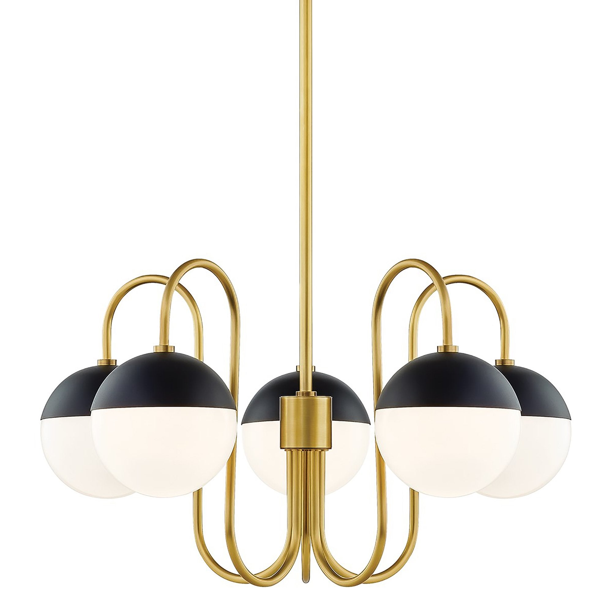 A retro aesthetic with a modern edge creates an awe-inspiring dining room focal point. Light up your surroundings with the elegant glow of Renee Chandelier from Mitzi, boasting striking spheres of black and white fused with sleek, slim curves for dramatic effect.