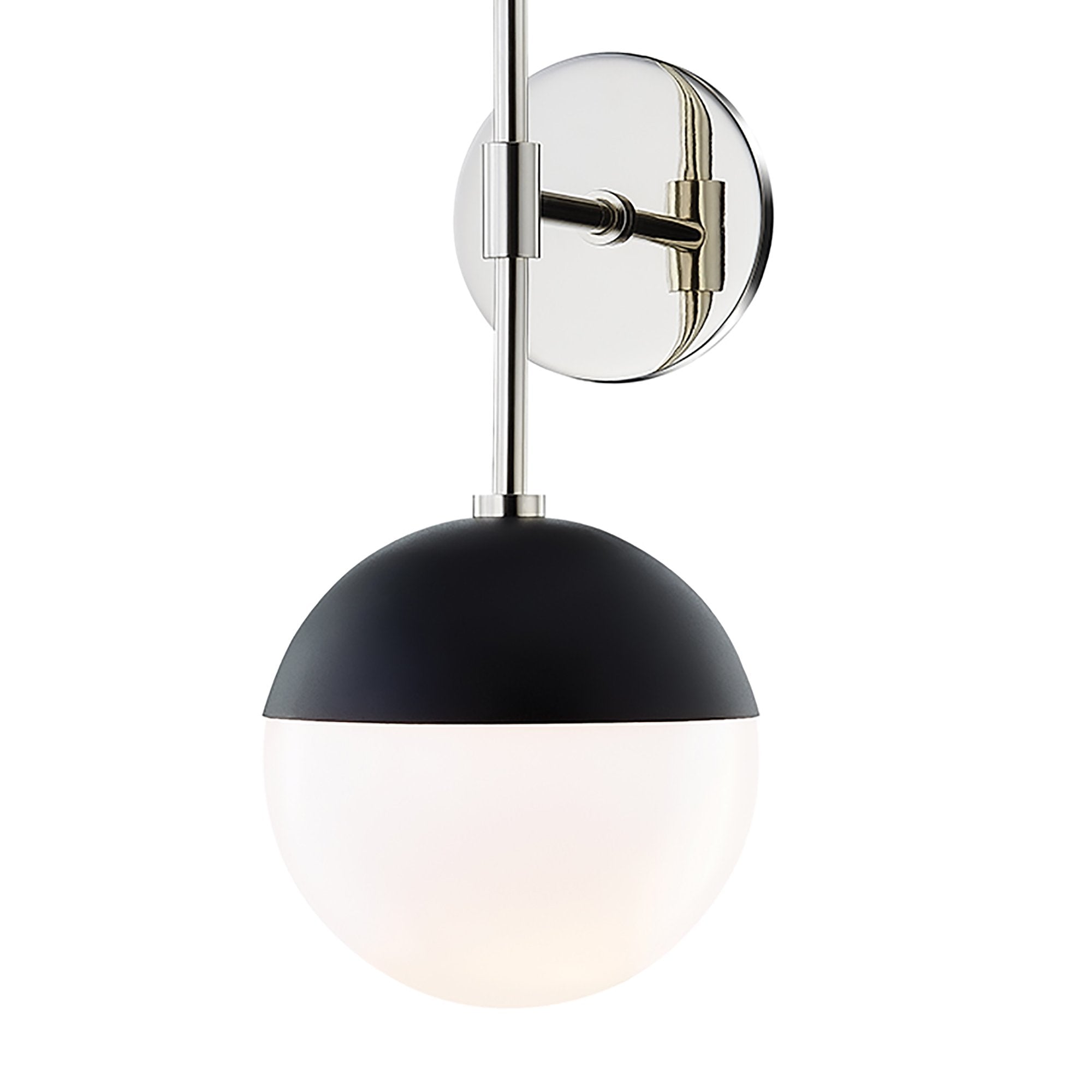Switch it on and switch it up with this dramatically distinguished metal Renee H344102A Wall Light from Mitzi. Elevating décor with bold, black accents fused with sleek, gleaming metal and soft, diffused light, it's the perfect fixture to punch up a parlor with mid-century modern elegance.