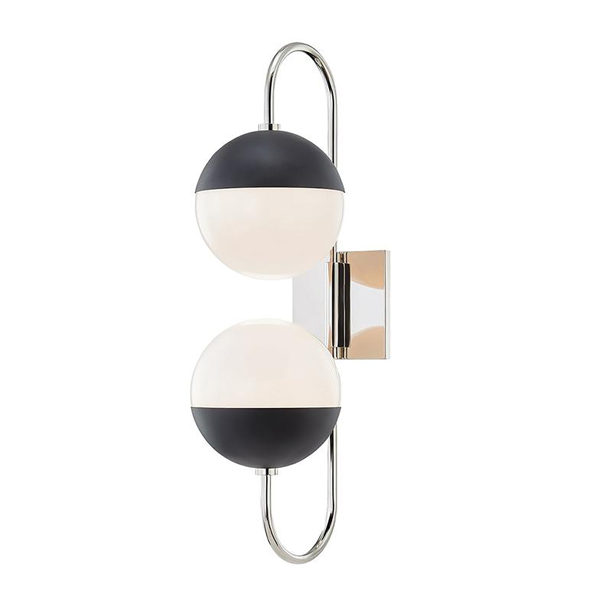 Flaunting two round diffusers wrapped with black metal accents and a sleek, curvy frame to balance it all out, Renee H344102B Wall Light from Mitzi is a seamless match for your unique sense of style. Place it in a hallway, entry, or bath to add an effortless glow with a bold, modern edge.