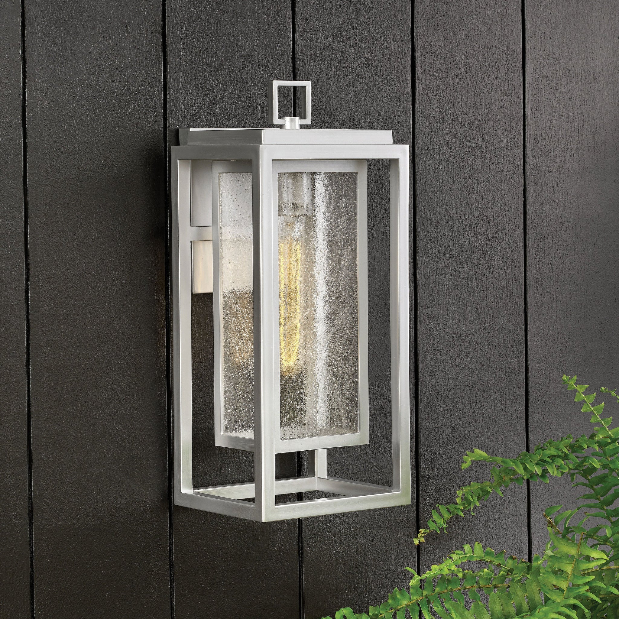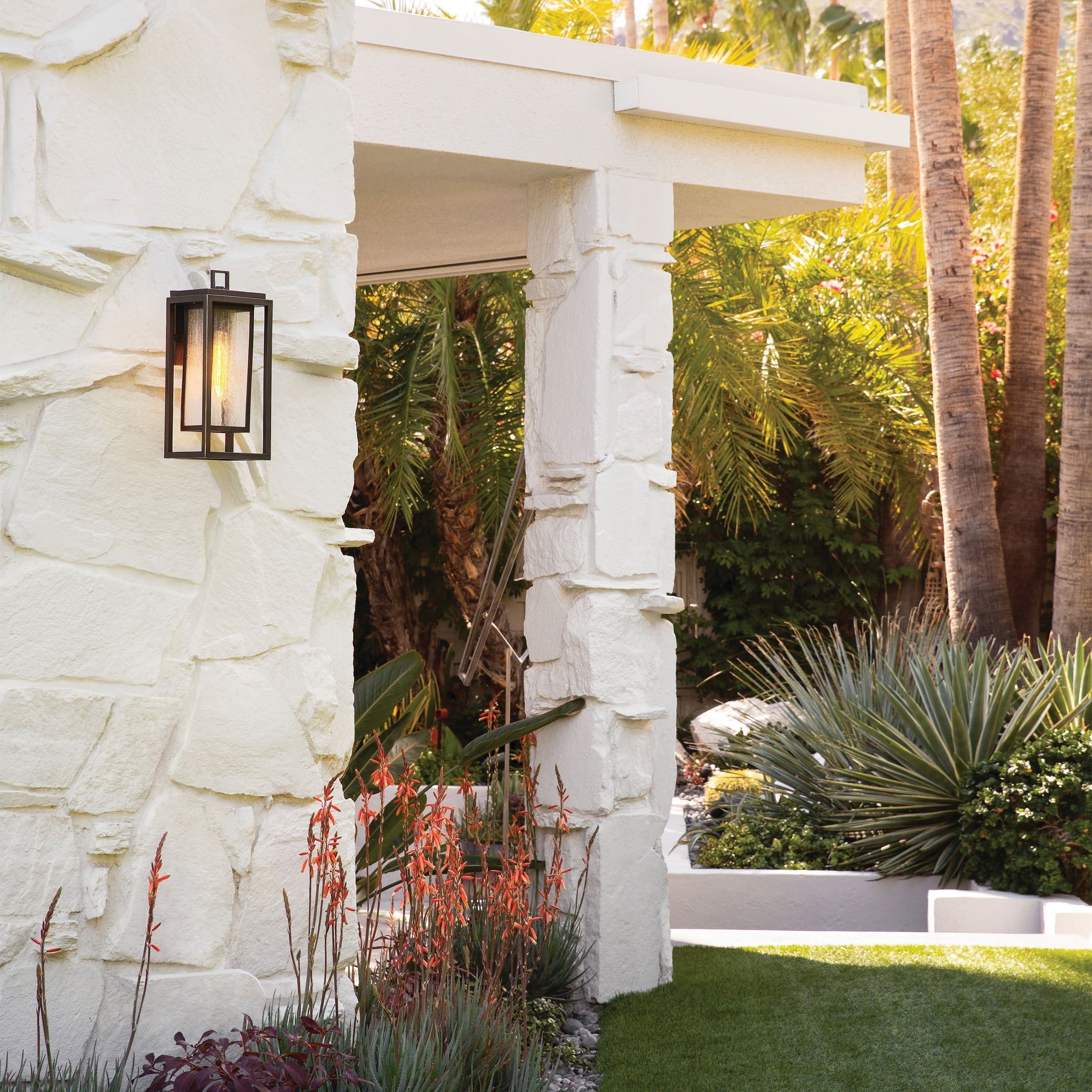 Republic Outdoor Wall Light’s striking double frame design, constructed from a composite material and treated with an anti-fading agent for maximum durability, is at home on the coast or a country lodge. The Oil Rubbed Bronze, Satin Nickel and Black resilience finishes feature a 5-year warranty and are resistant to rust and corrosion. Vintage filament bulbs are recommended to complete a stylish look.