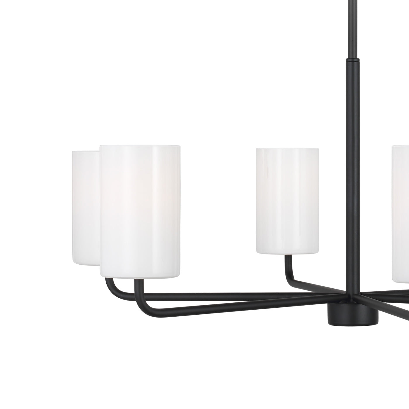The Rhett Chandelier from Generation Lighting puts a spotlight on simplicity as it adds sly elegance. The subtle and orderly silhouette of this sophisticated light fixture blends cylinder shades with pipe-like metal framing, throwing in low-key accents and becoming a perfect choice for updated custom dining rooms and entryways.