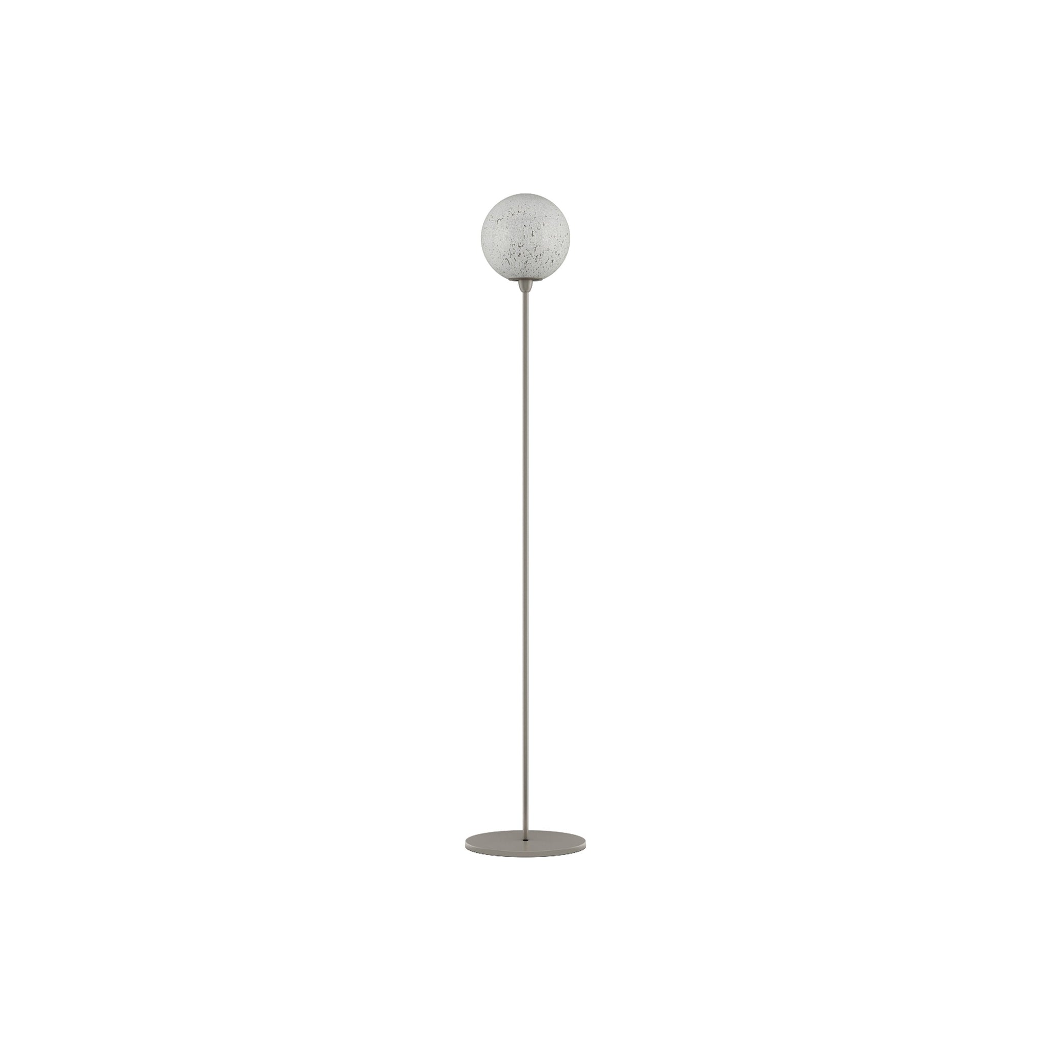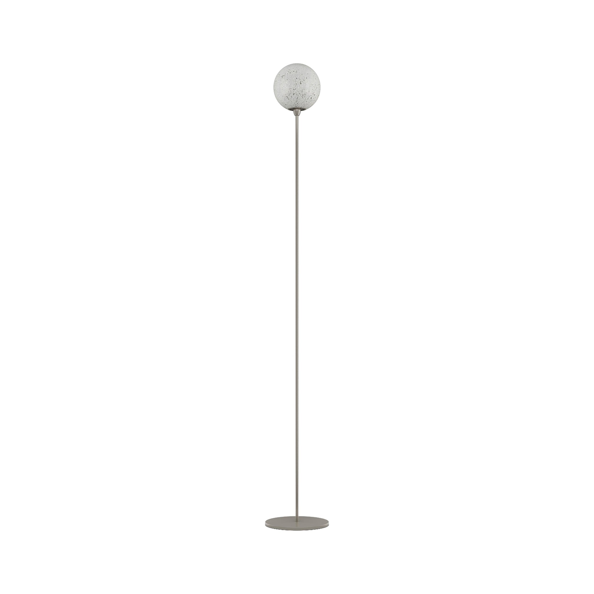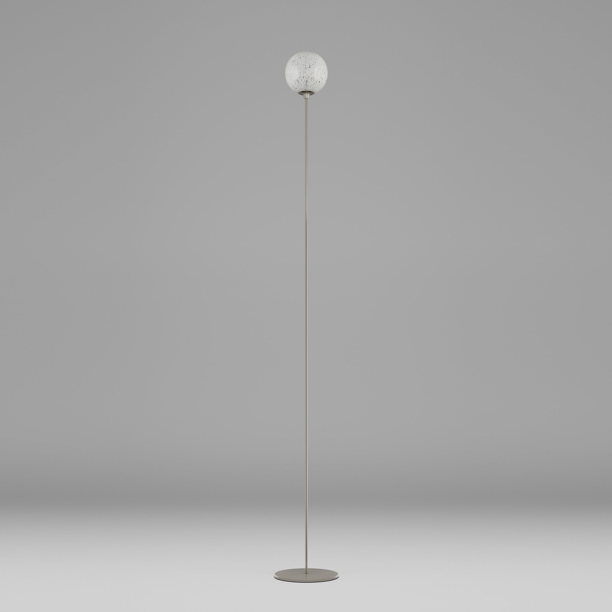 An exotic look of texture coats the circular shade of the Rina Floor Lamp from Vistosi, supplying exceptional style and intrigue perfect for a custom space. This lamp maintains the essence of minimalism with sleek detail as it embellishes and coordinates surrounding décor. A white murrina finish glass sphere shade adds an aged look that enhances a simple metal frame and base.