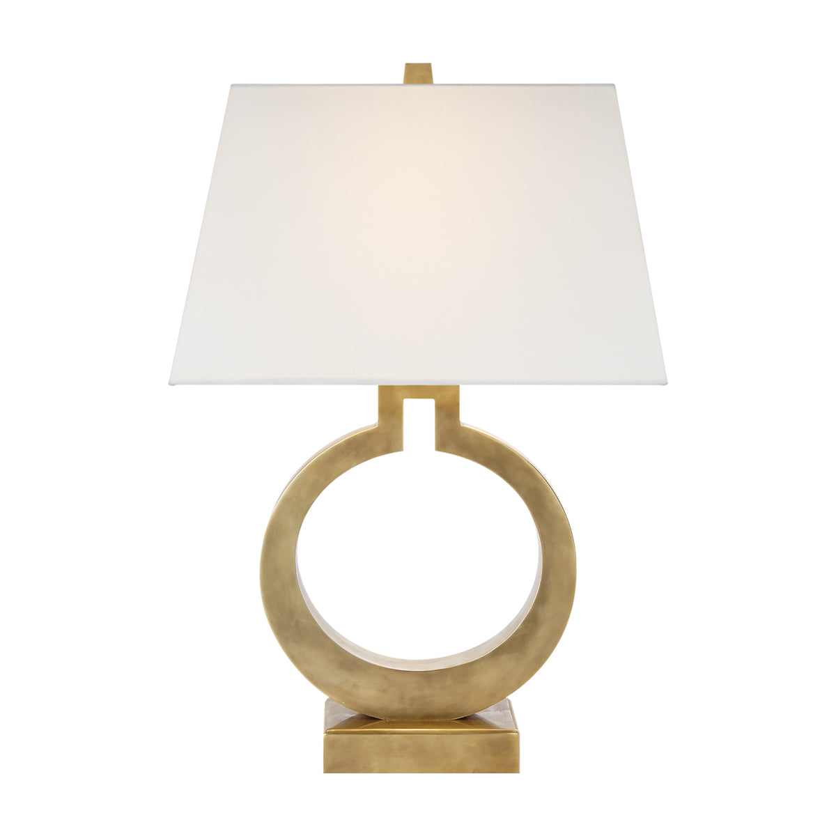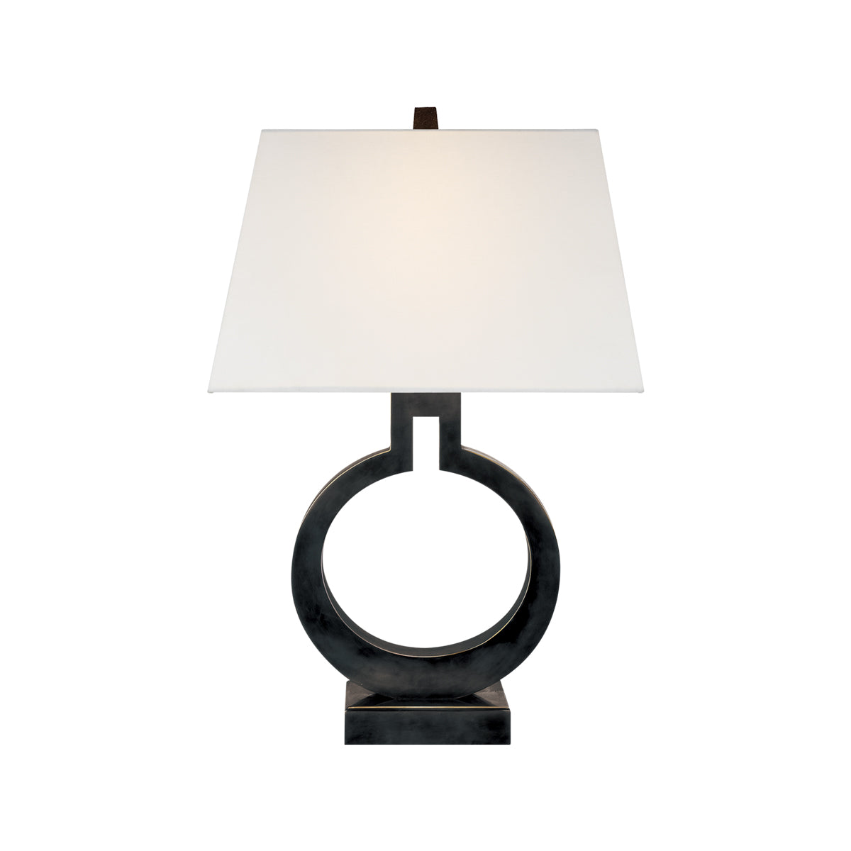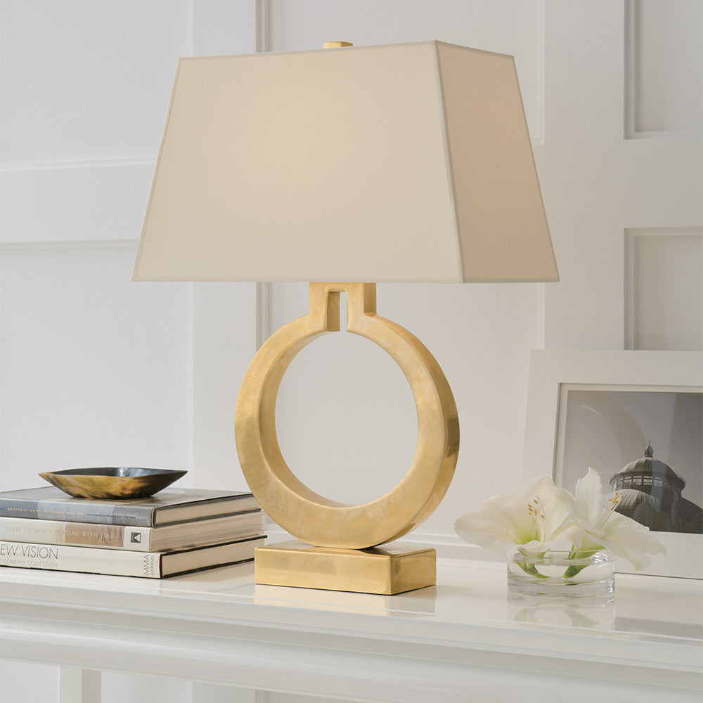 In a compelling hybrid of design and function, the Ring Form Table Lamp from Visual Comfort Signature repurposes conventional style in an elegant pursuit of artistry. Geometric silhouetting creates a keyhole-inspired open round body, chic and gallery-inspired. Light up a semi-formal setting with a lamp created to enhance living areas and bedrooms.