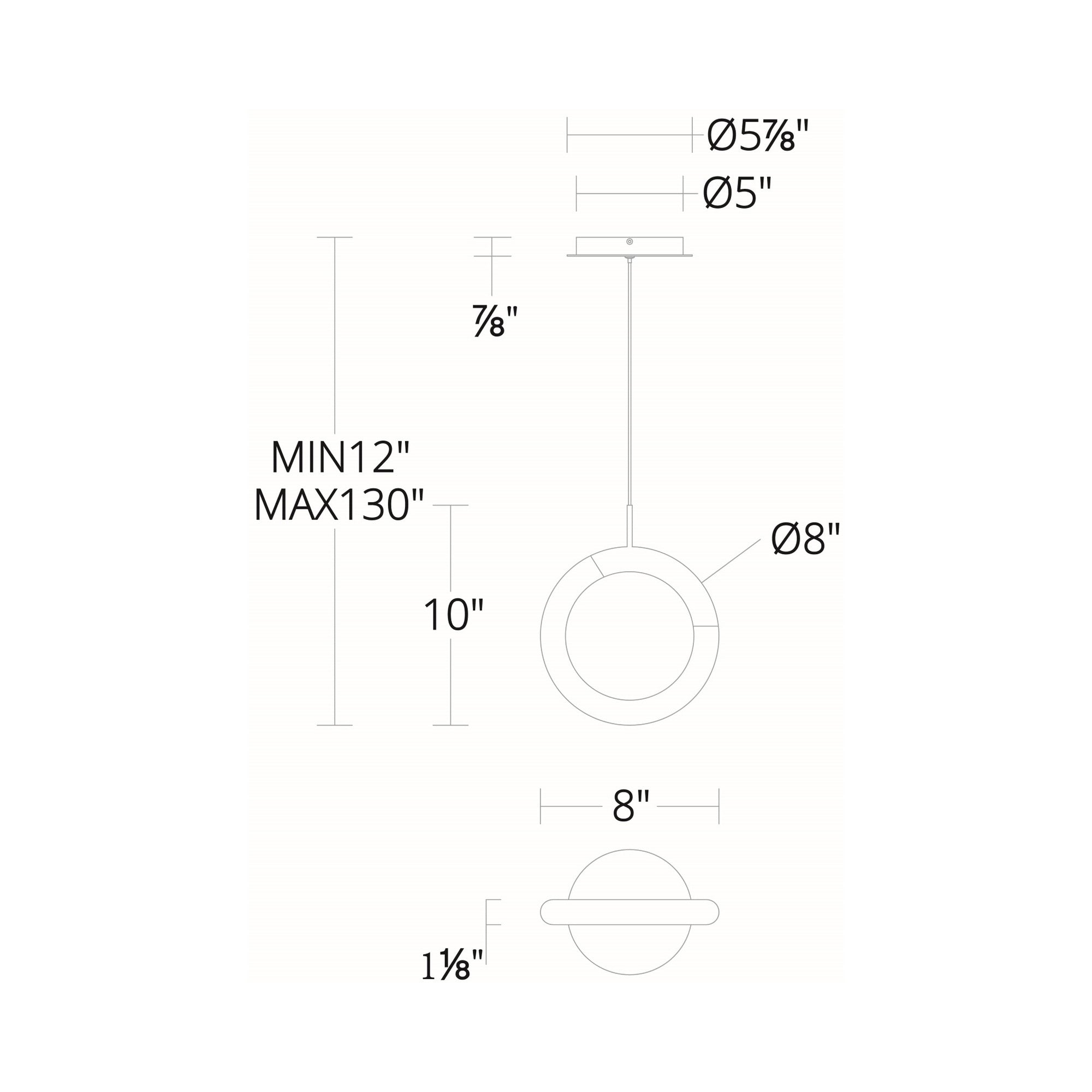 - Dimensions: 8"D X 10"H; 130" max height