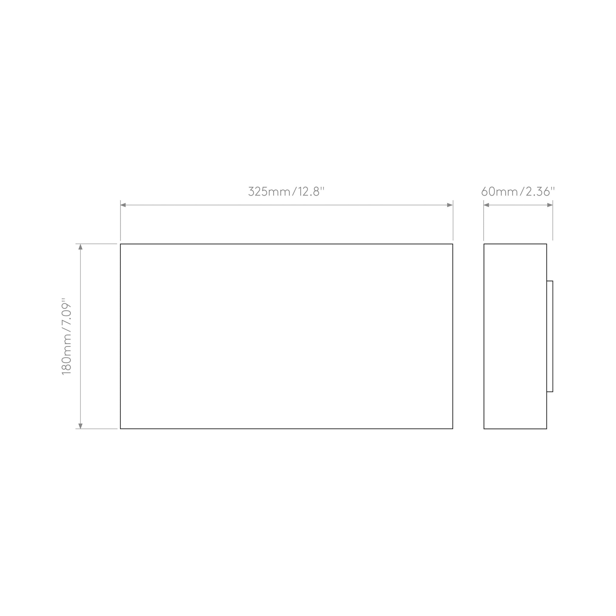 - Horizontal: 12.8"W X 7.09"H; 2.36" Extension
