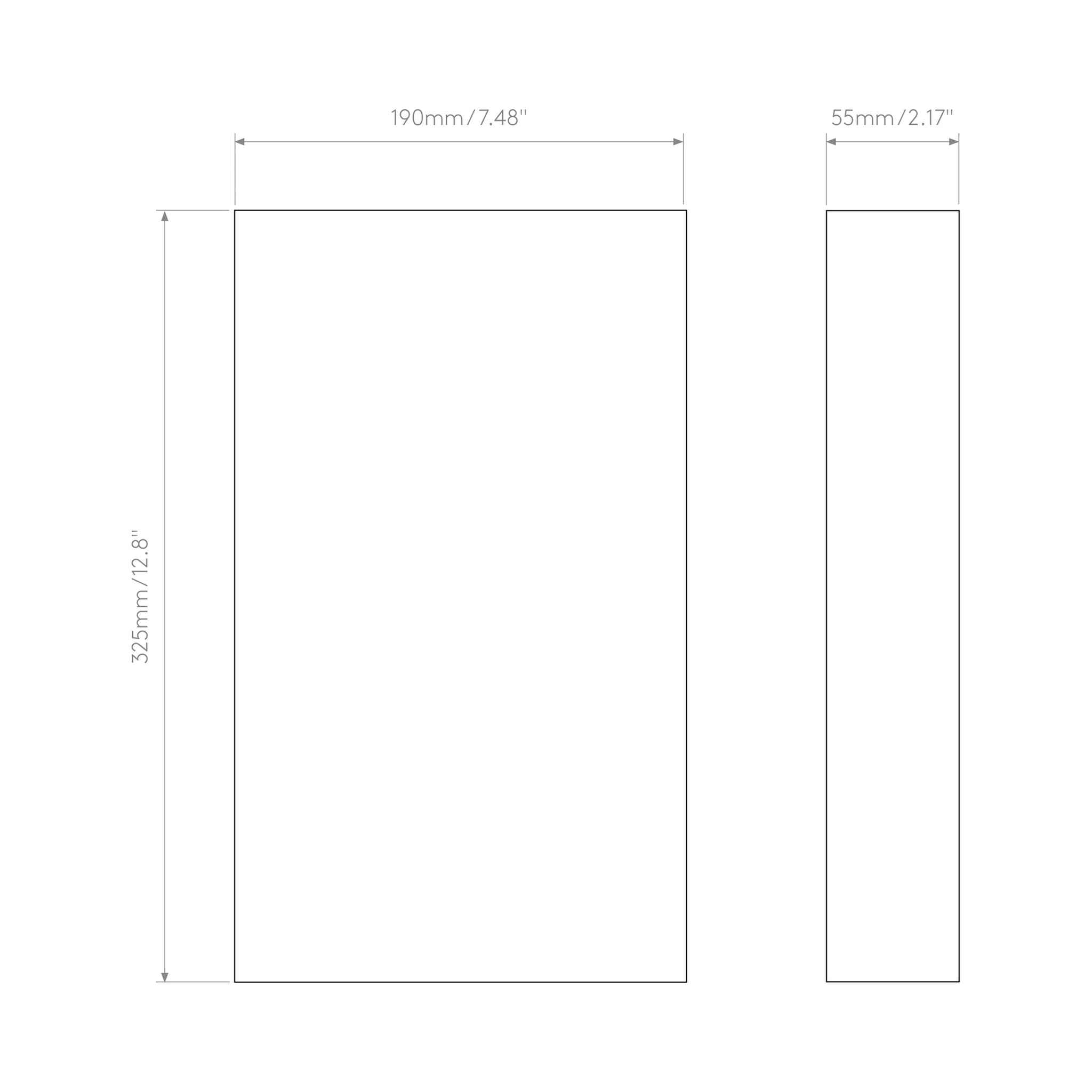 - Vertical: 7.48"W X 12.8"H; 2.17" Extension
