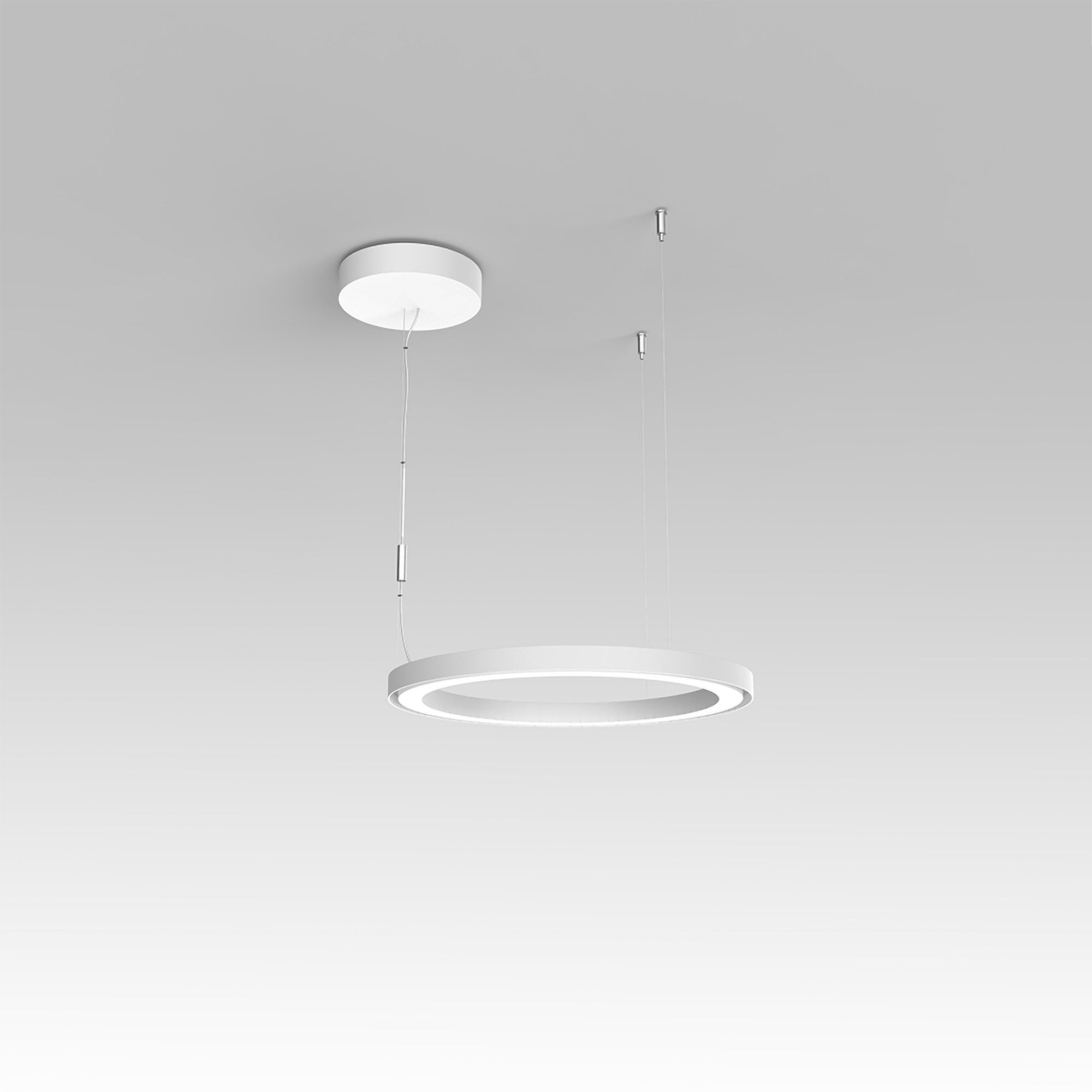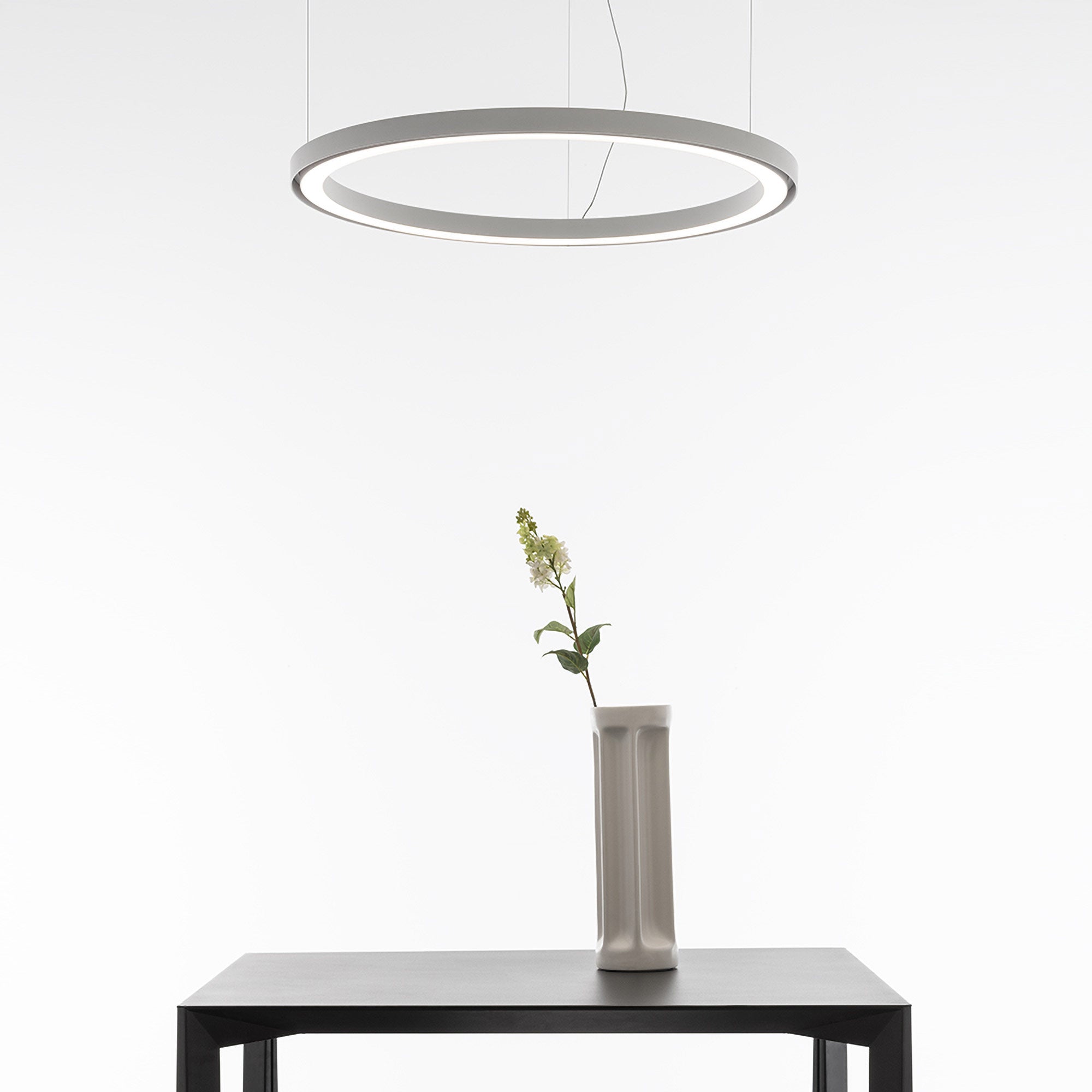 Circular structure emphasizes the clean, modern minimalism of the Ripple LED Pendant Light from Artemide.