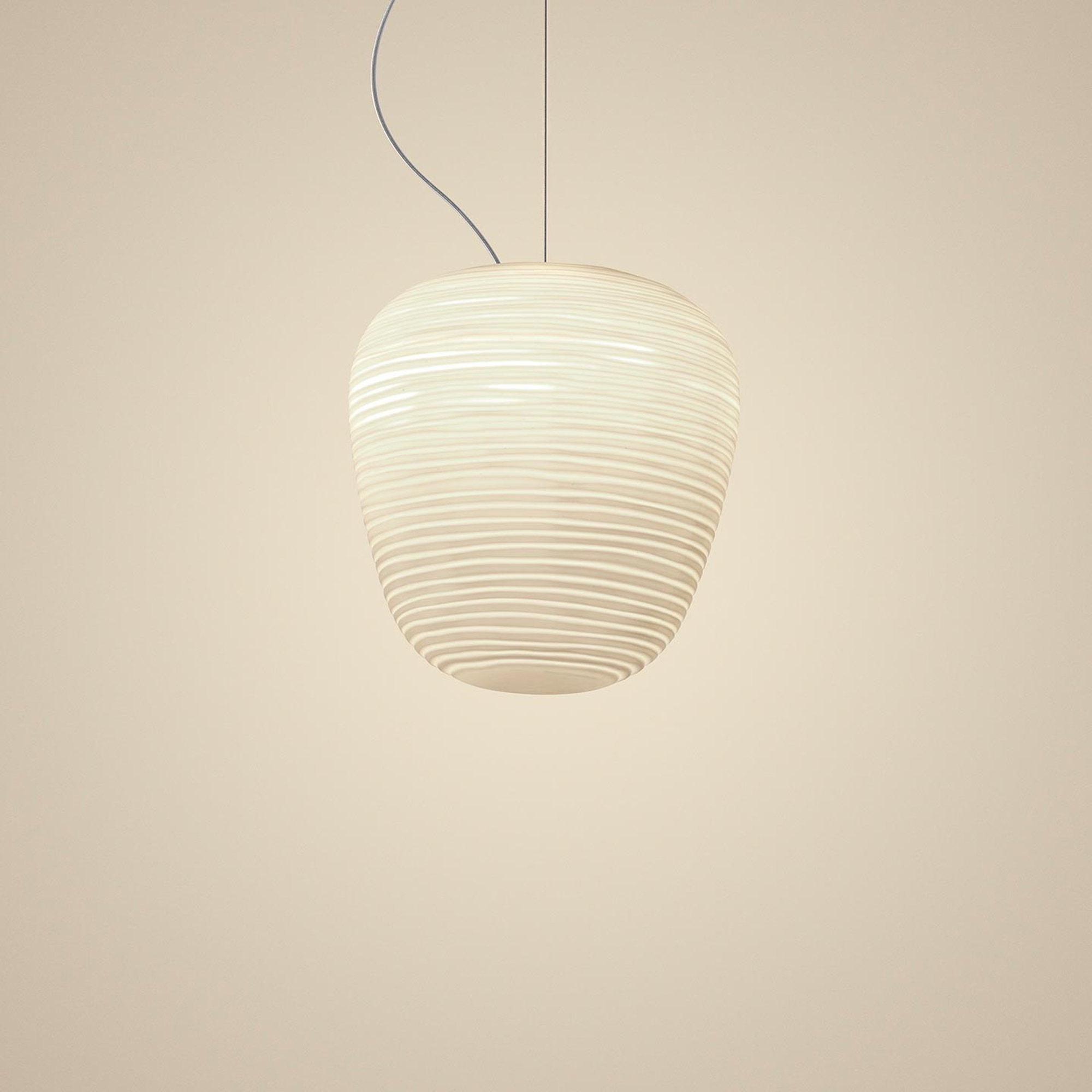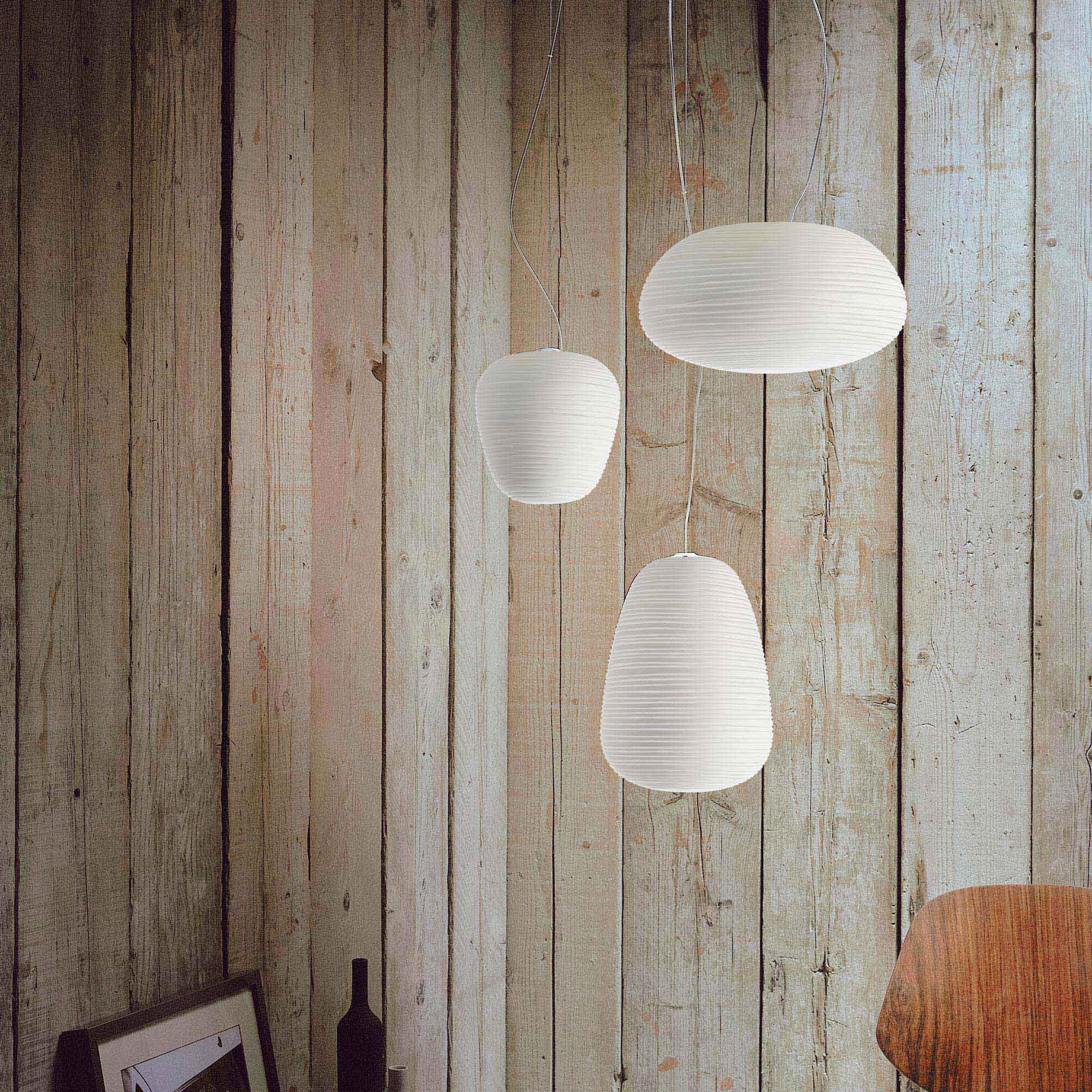 Offer a new stylish impression in an entryway with the Rituals 3 Pendant Light from Foscarini. The glow radiates from the oriental-inspired shade with horizontal grooves.