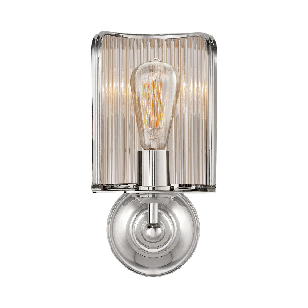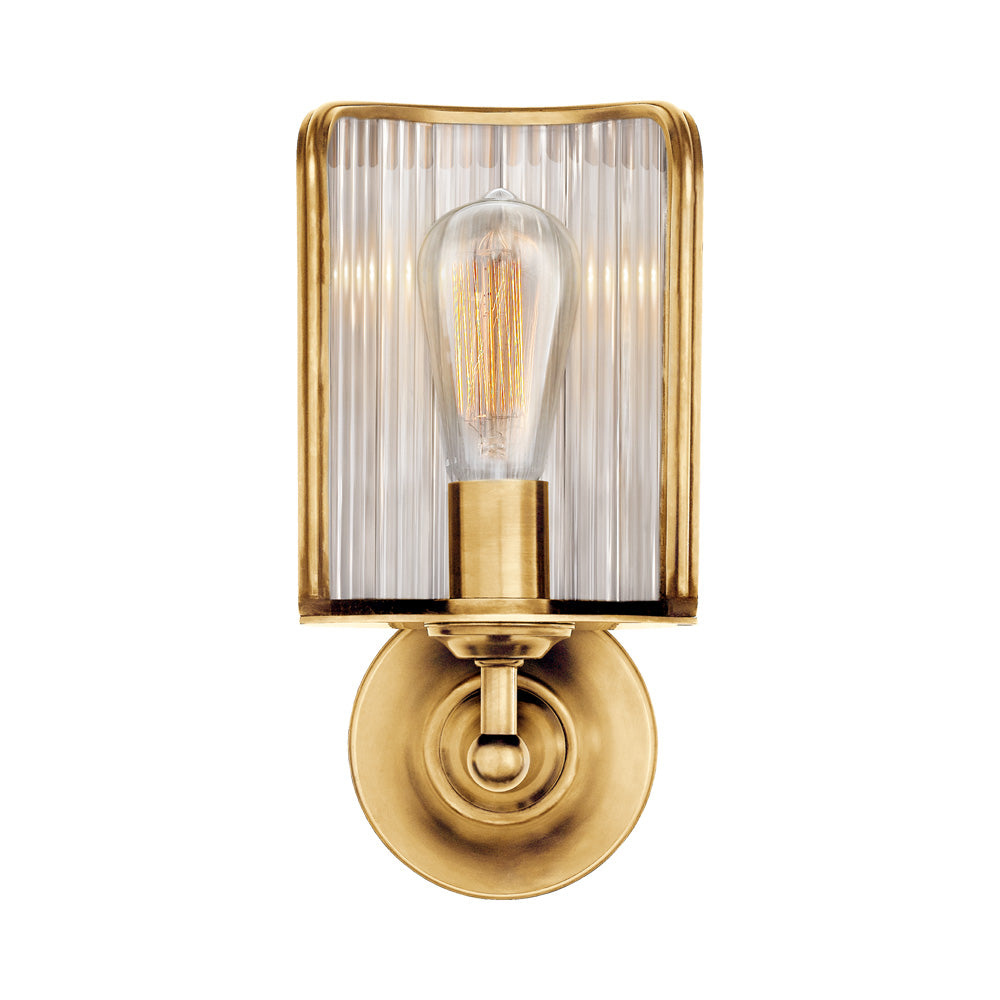 Spare no expense in a gritty industrial personality infiltrating themed living spaces. Metal framing begins an enticing look as the Rivington Shield Wall Light from Visual Comfort Signature revisits a past era, updated to accommodate fresh modern living. Its exposed bulb nestles in a gently curved back frame, with glass rods producing intriguing lighting impacts.