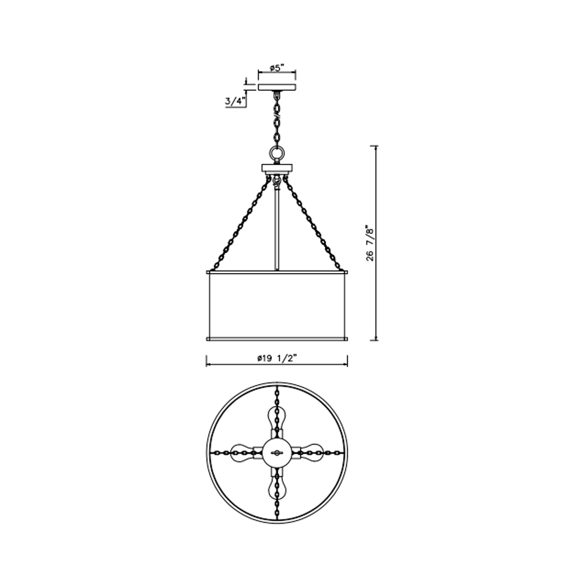 - 4-Light: 19"D X 26.5"H; 146.5" max height