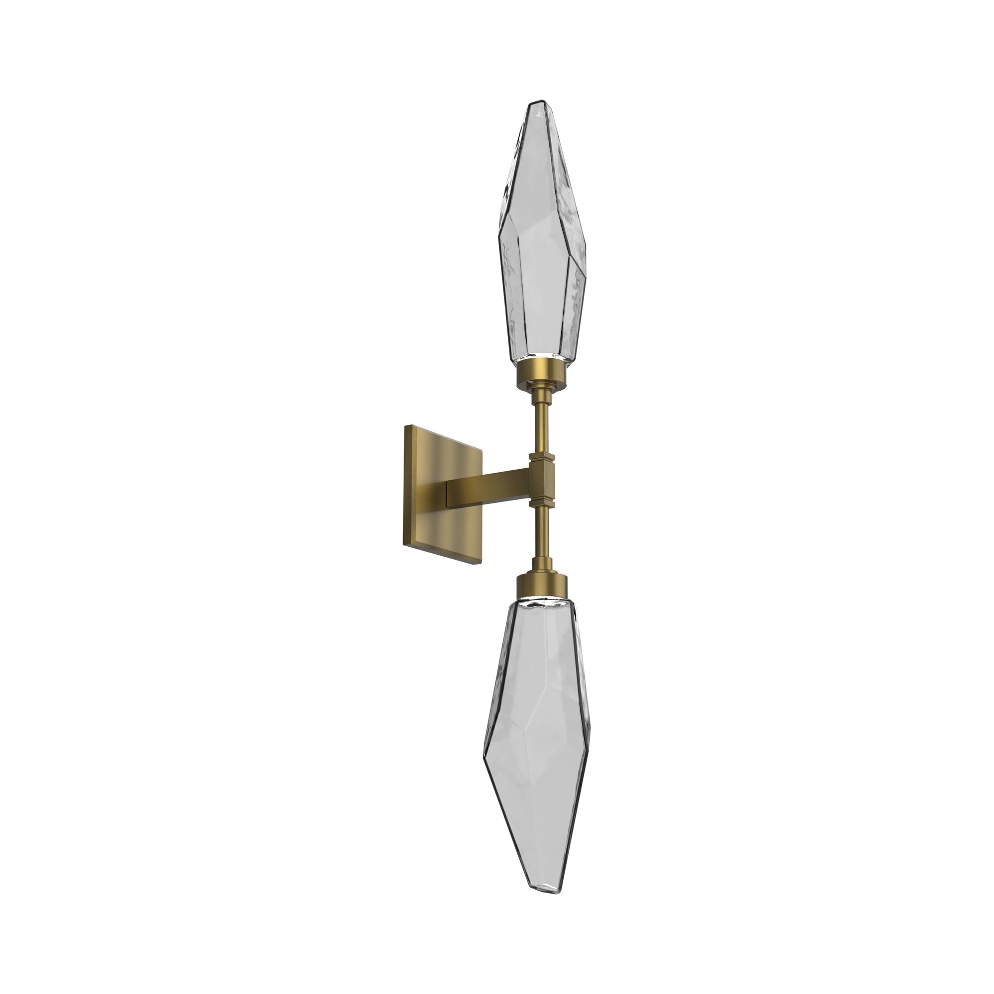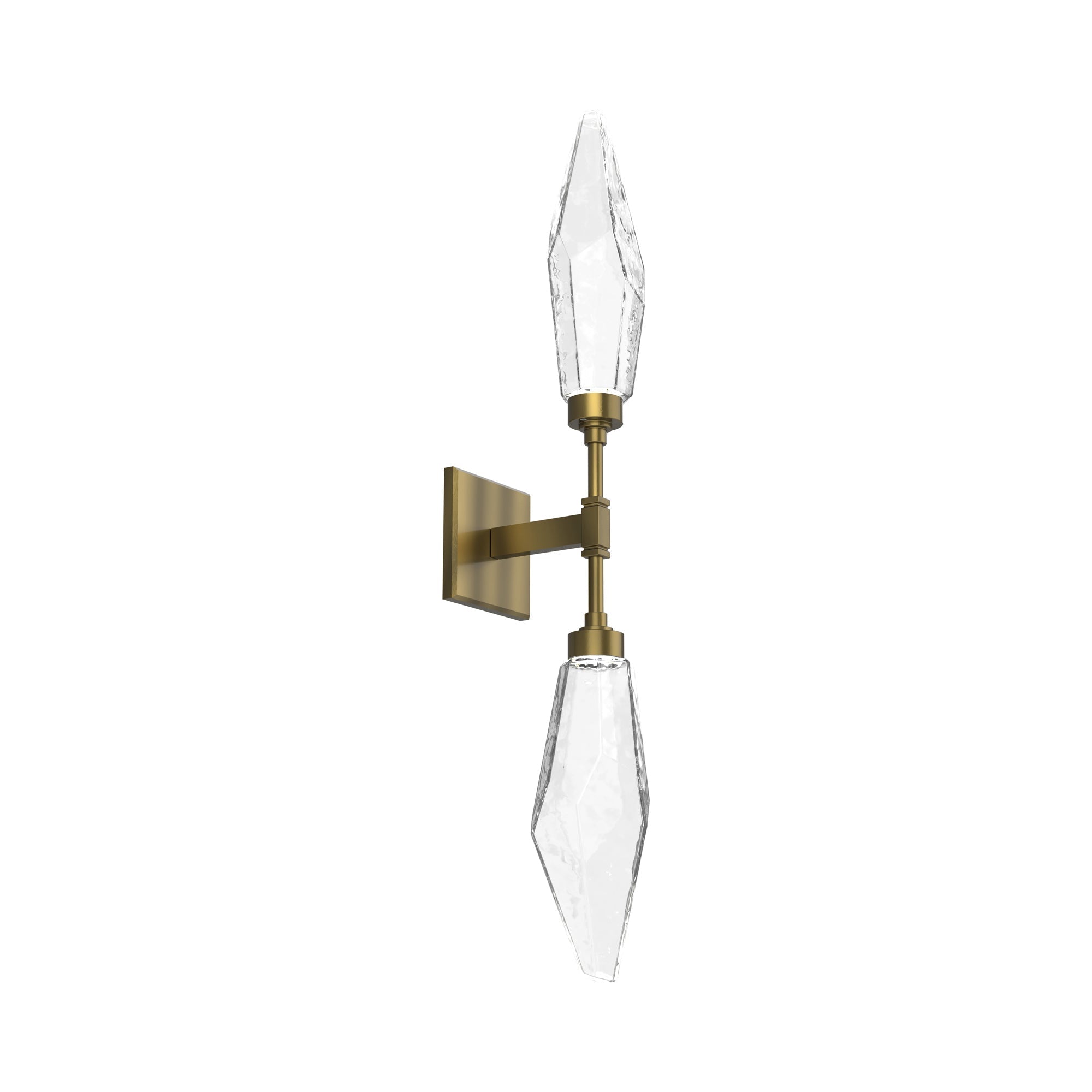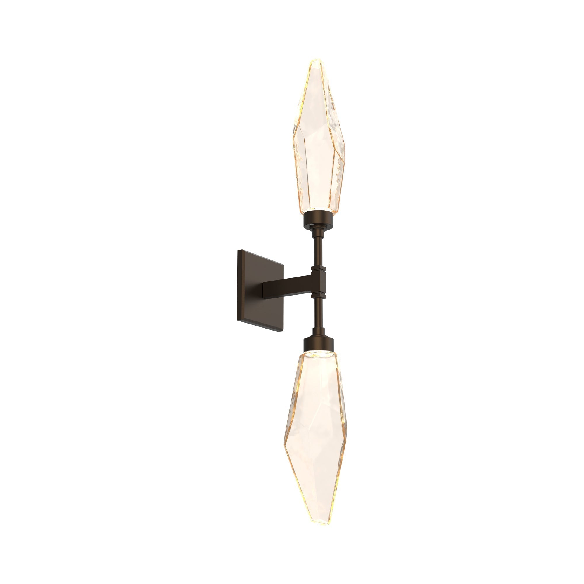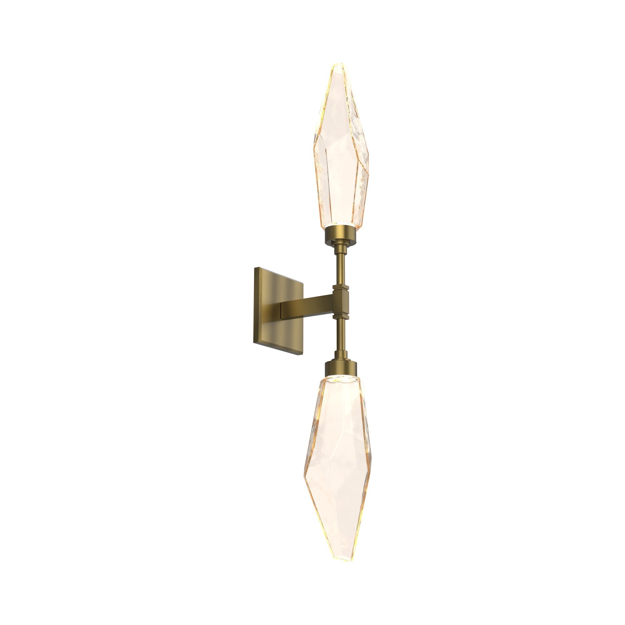 Cast a dreamy glow across a focal wall or hallway corridor with the stunning Rock Crystal LED Double Wall Light from Hammerton Studio. Designed as a dual torchiere style wall light, two breathtaking artisan blown glass shades send out a lovely diffused light, creating a scintillated effect with their gem-like faceted silhouettes. A slender linear frame is capped at both ends by these charming precious stone-inspired angular globes, giving off a bohemian touch to this fantastical energy-efficient double wall light.