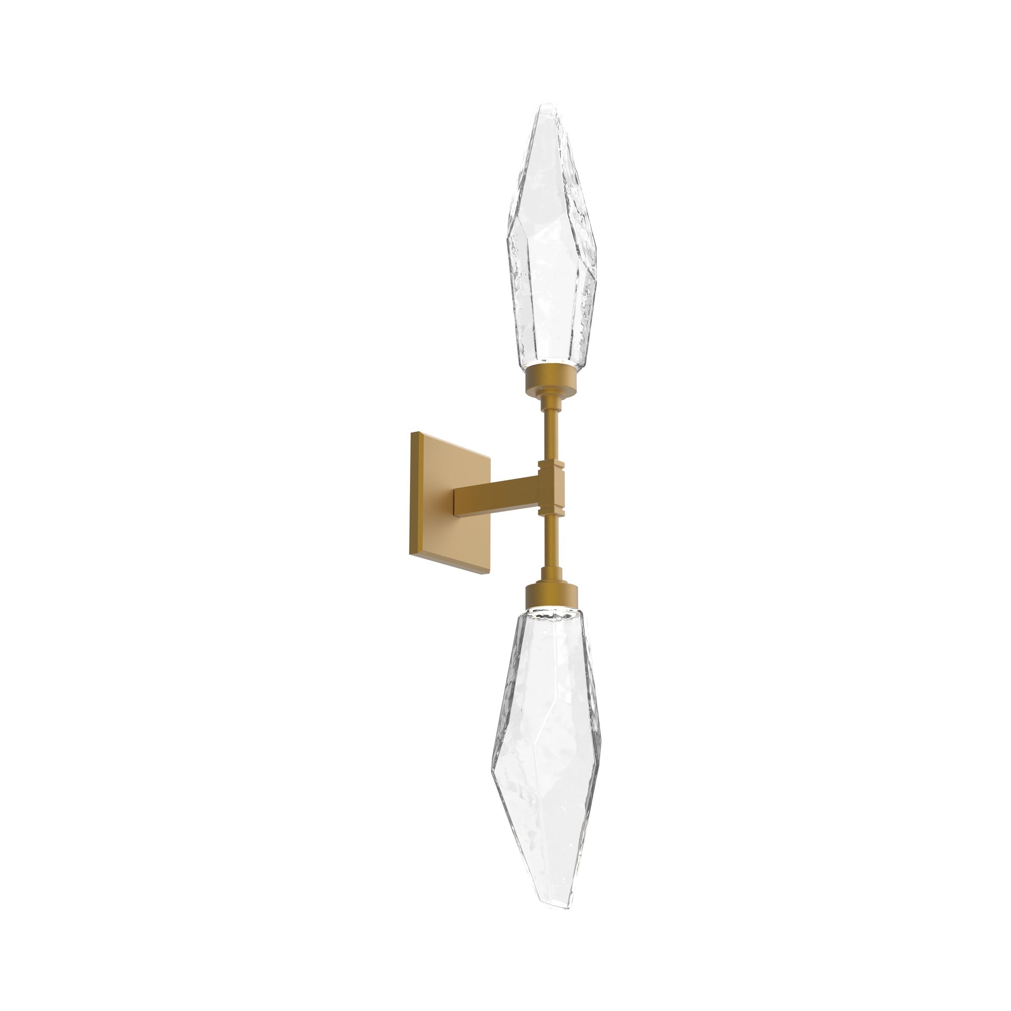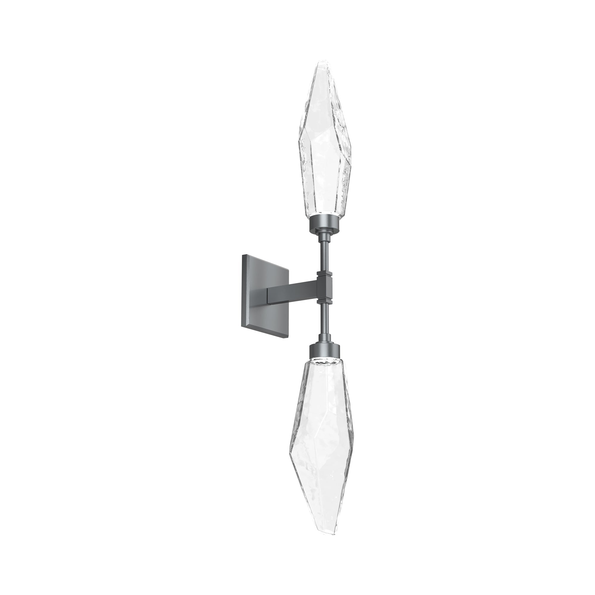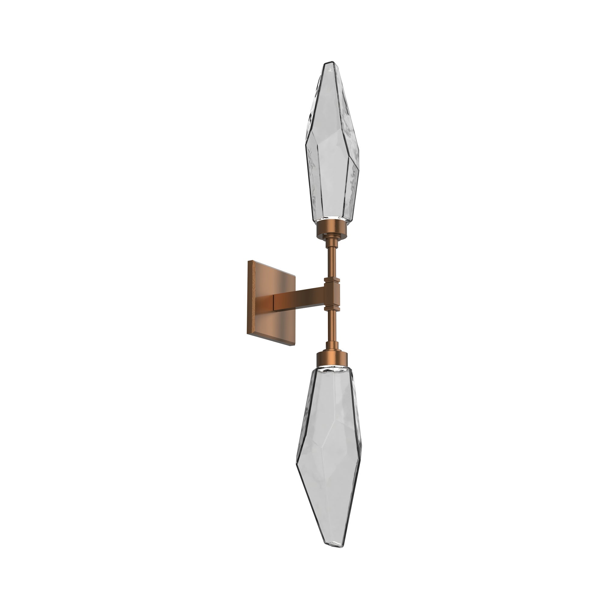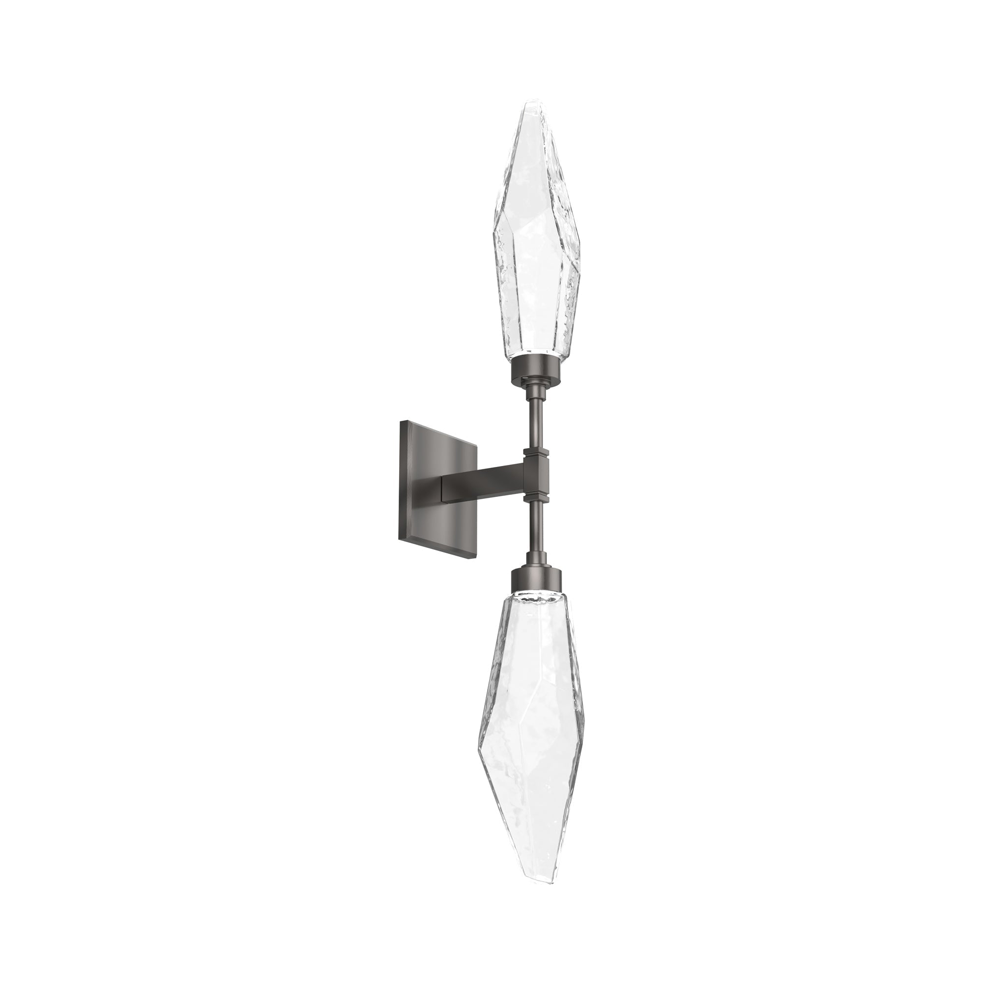 Cast a dreamy glow across a focal wall or hallway corridor with the stunning Rock Crystal LED Double Wall Light from Hammerton Studio. Designed as a dual torchiere style wall light, two breathtaking artisan blown glass shades send out a lovely diffused light, creating a scintillated effect with their gem-like faceted silhouettes. A slender linear frame is capped at both ends by these charming precious stone-inspired angular globes, giving off a bohemian touch to this fantastical energy-efficient double wall light.