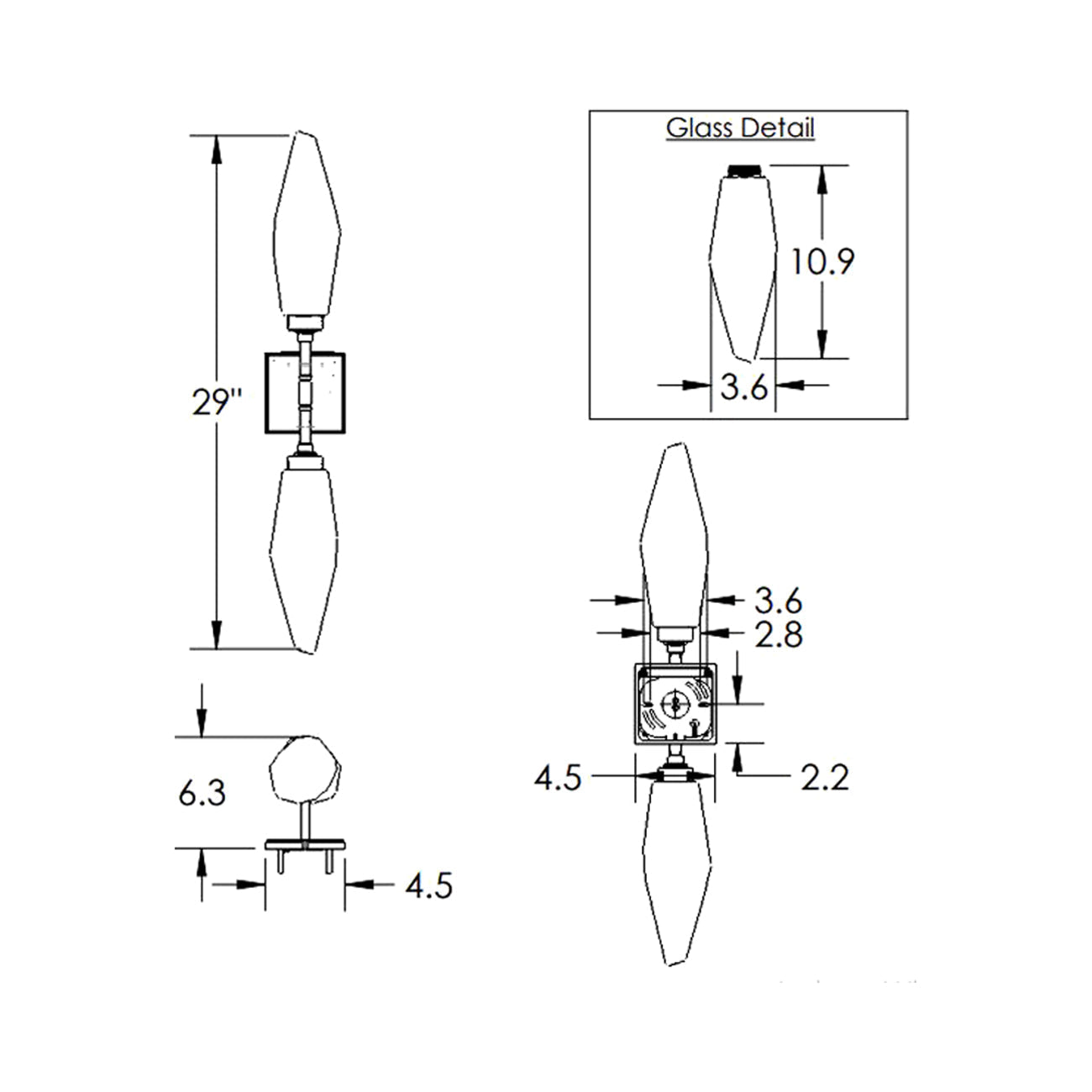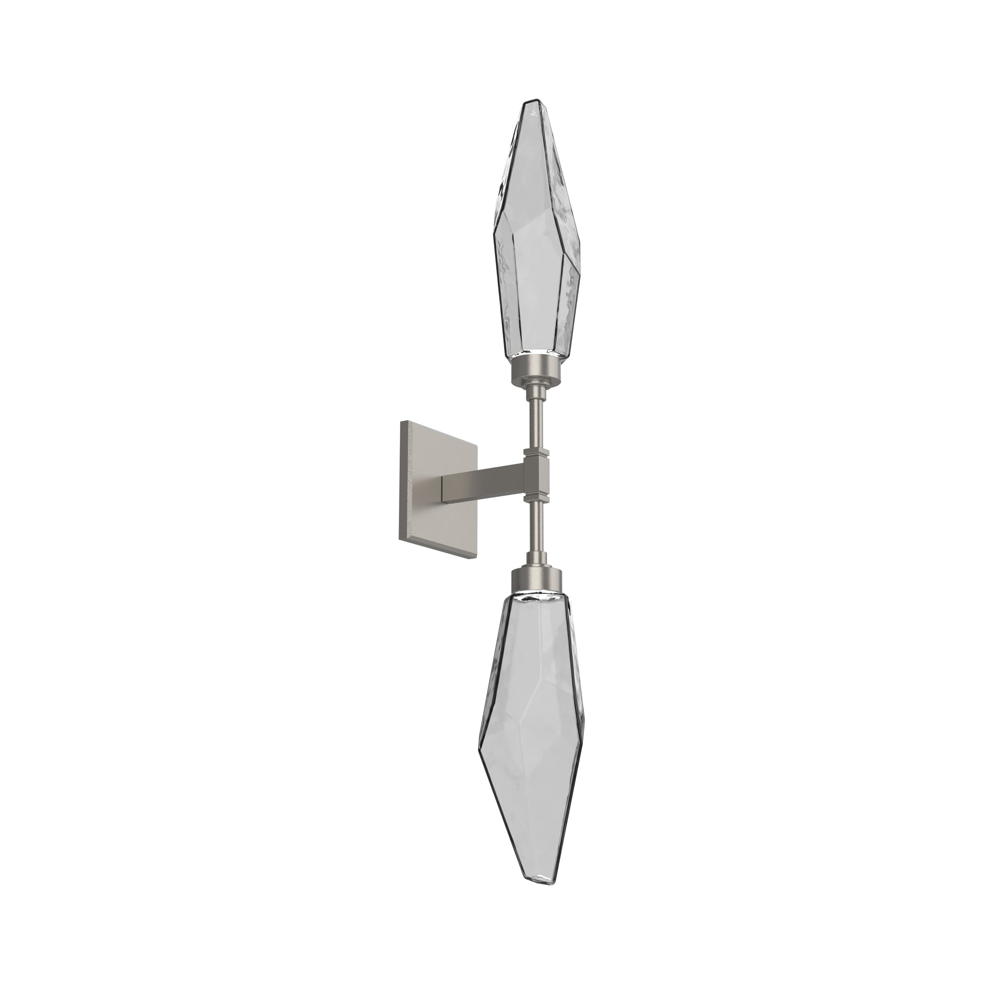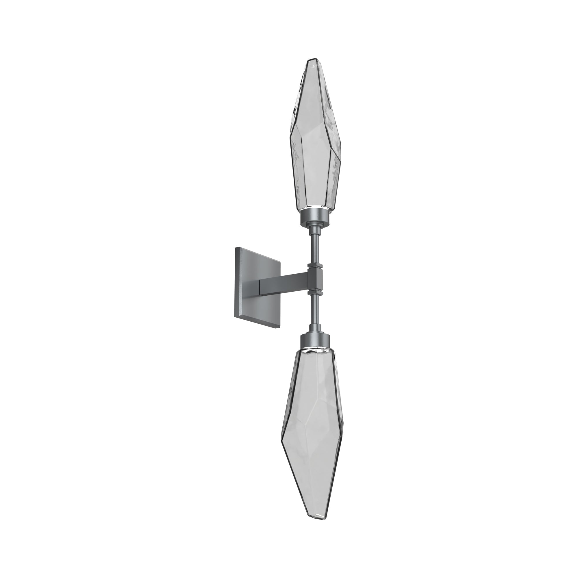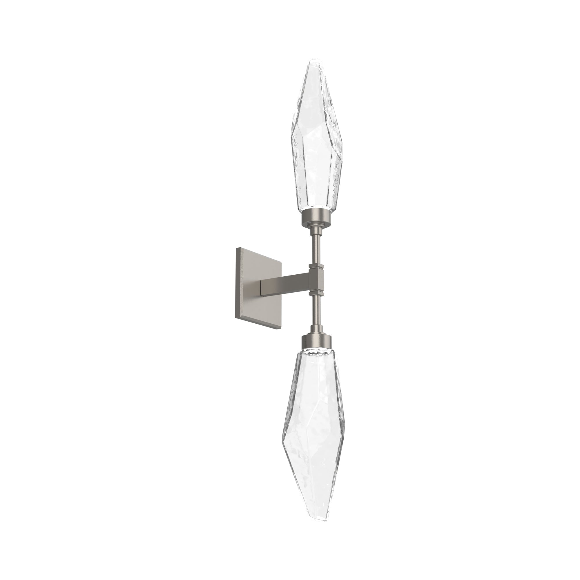Cast a dreamy glow across a focal wall or hallway corridor with the stunning Rock Crystal LED Double Wall Light from Hammerton Studio. Designed as a dual torchiere style wall light, two breathtaking artisan blown glass shades send out a lovely diffused light, creating a scintillated effect with their gem-like faceted silhouettes. A slender linear frame is capped at both ends by these charming precious stone-inspired angular globes, giving off a bohemian touch to this fantastical energy-efficient double wall light.