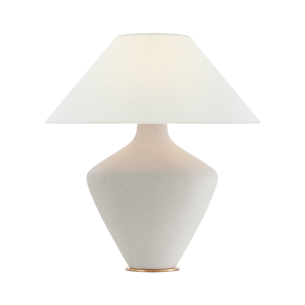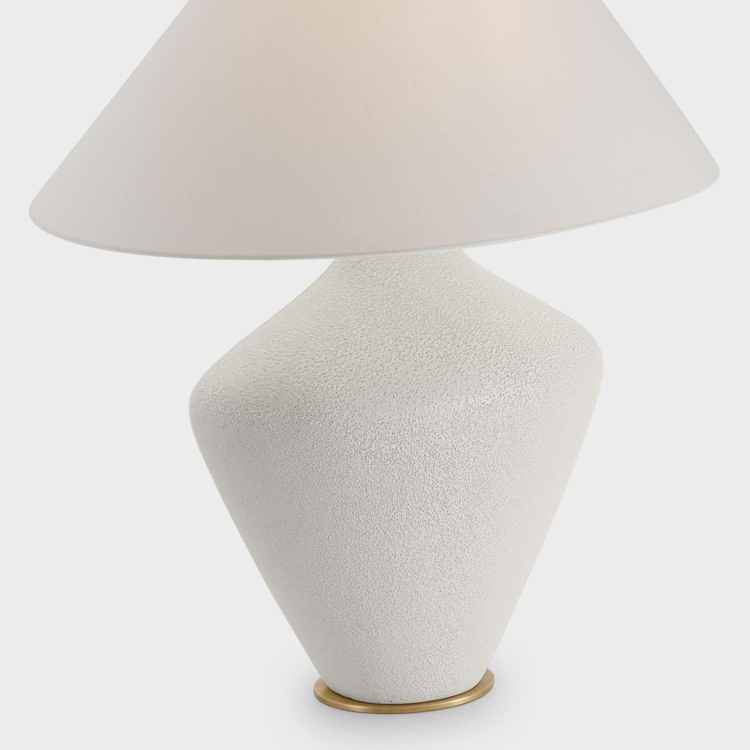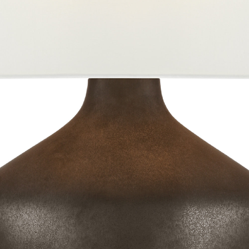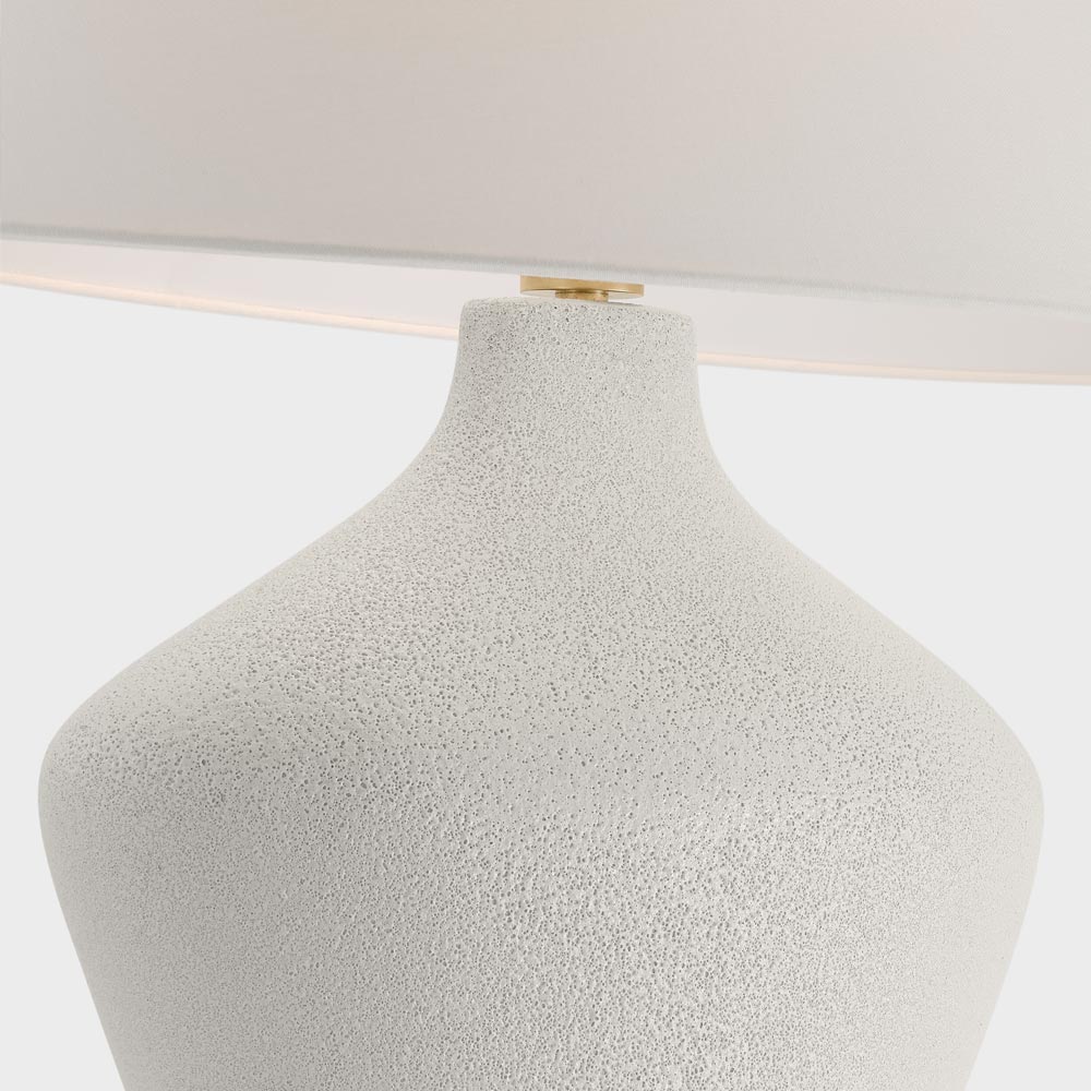 The Rohs Table Lamp from Visual Comfort Signature aims its focus at an easy, low-key look, delivering a non-obstruse yet elegant impact in a modern or transitional space. Embrace the subtly rounded angles of a jar aesthetic in a base with reactive glaze effects that deliver an organic feel, crowned with a tapered white linen shade.
