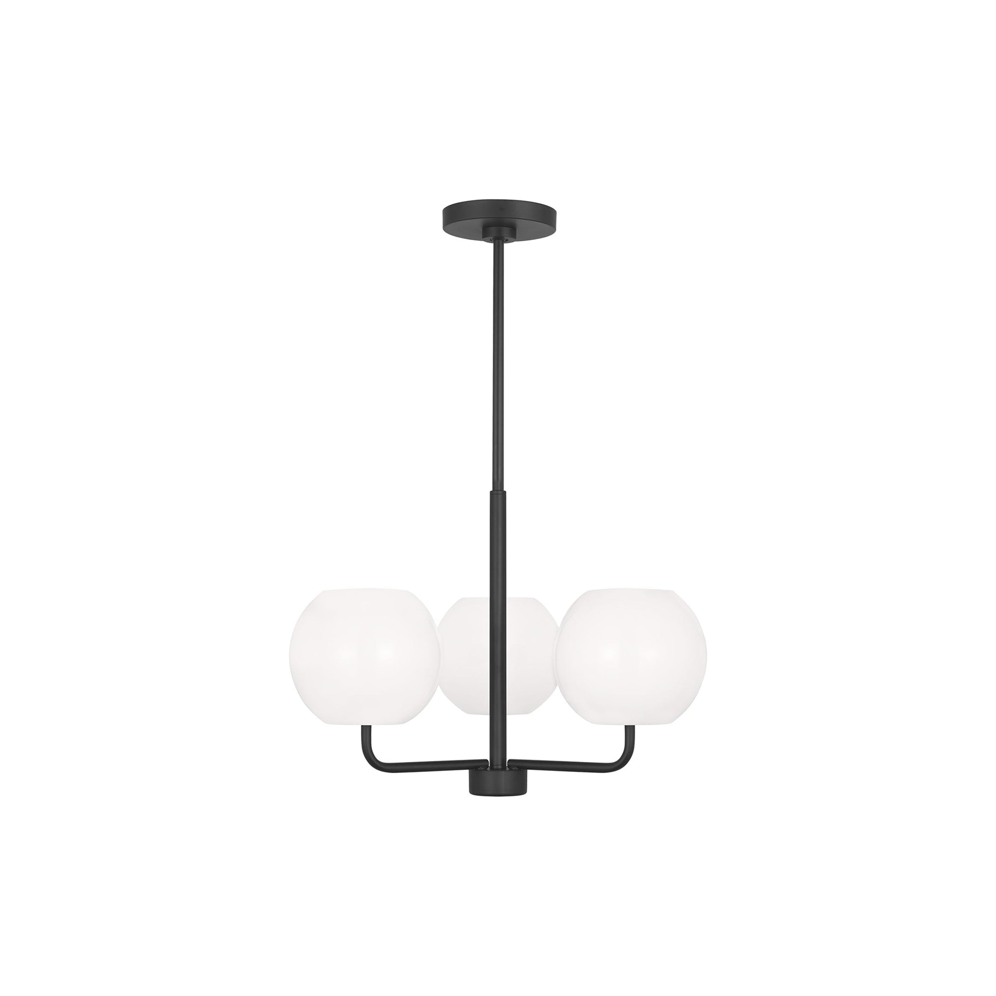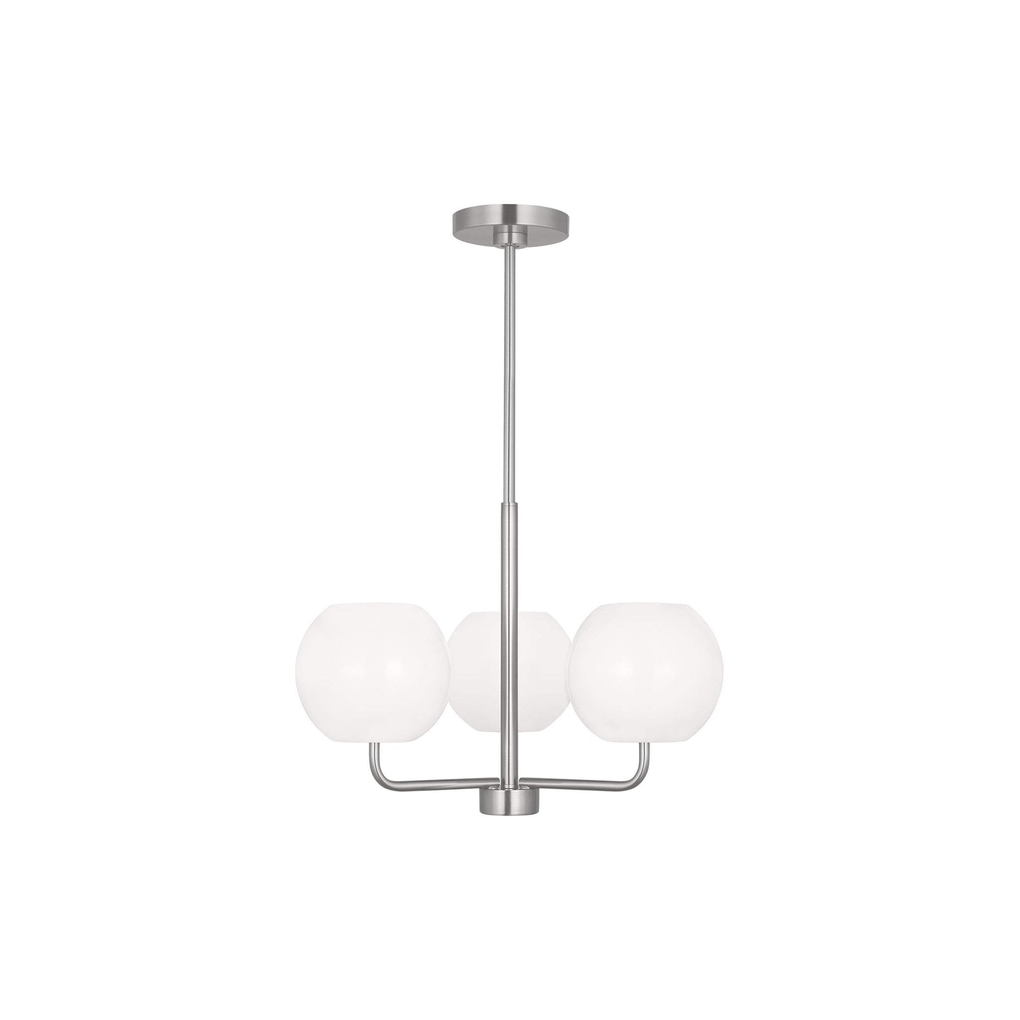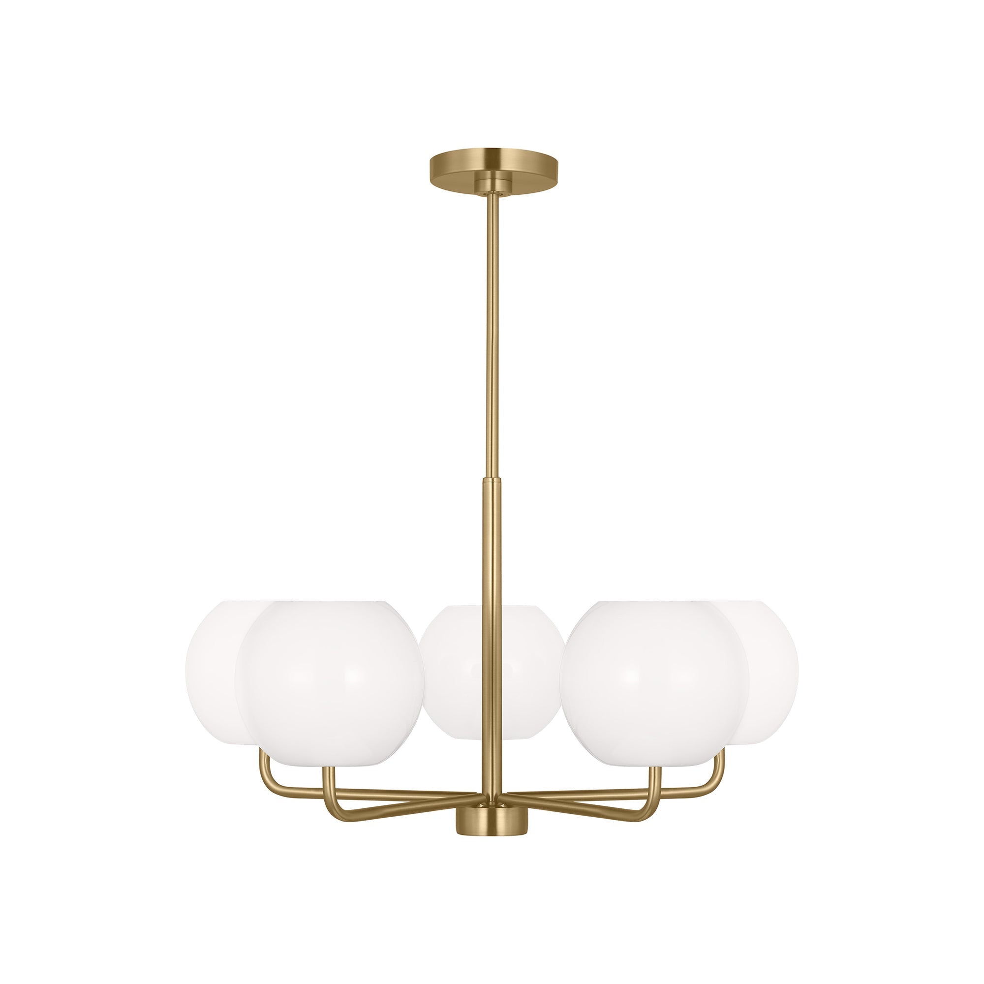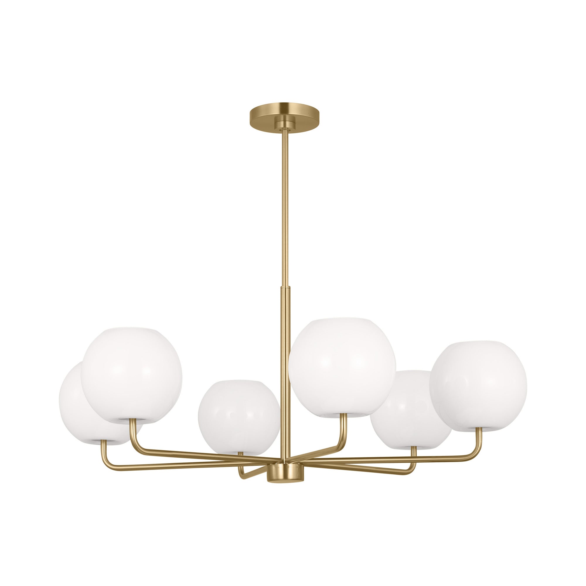 The Rory Chandelier from Generation Lighting embraces a mix of industrial and cheeky modern design aesthetics. This multi-light fixture is a perfect fit for light, easy dining and living spaces. Metal framing with ultimate symmetry supports semi-globe shades made of milky glass.