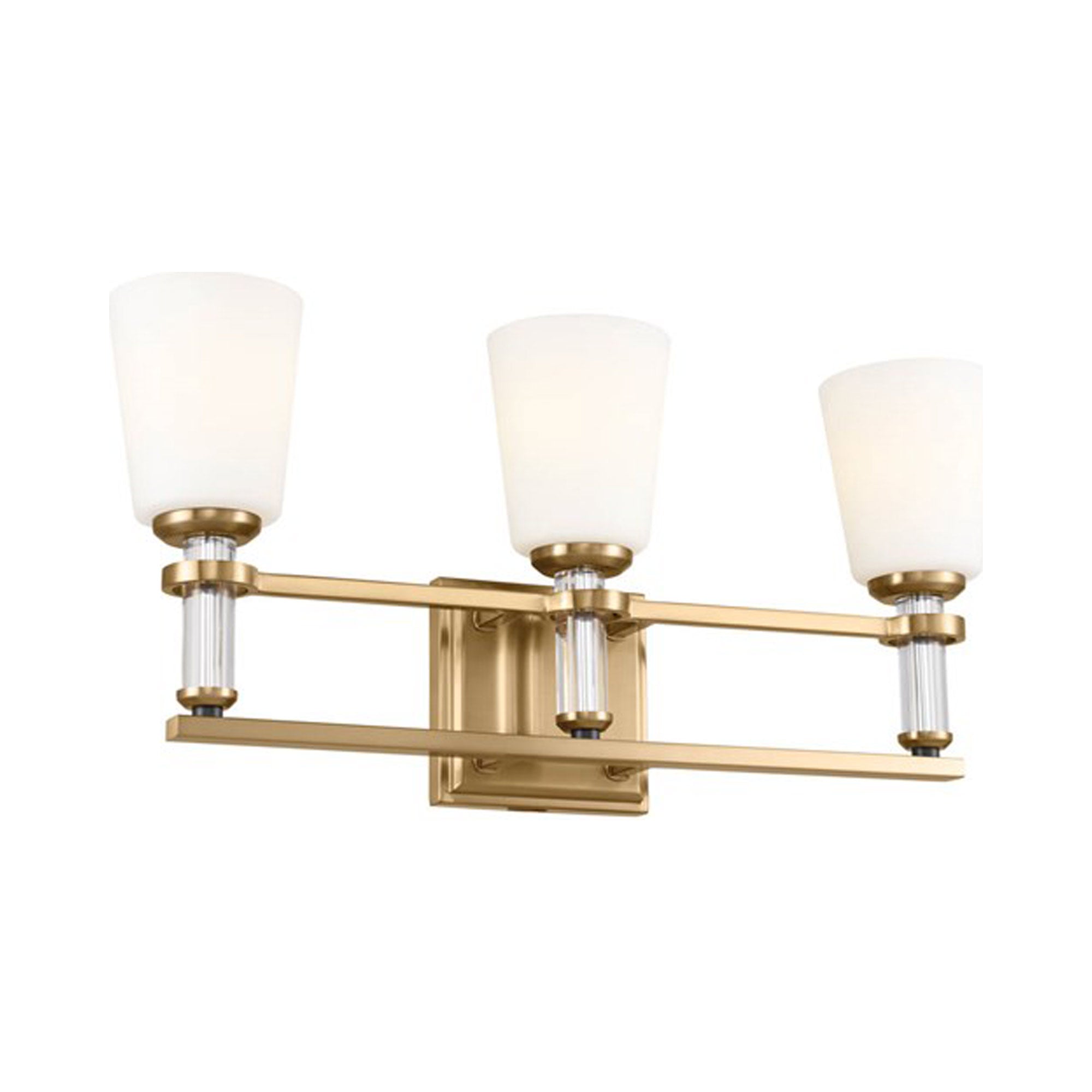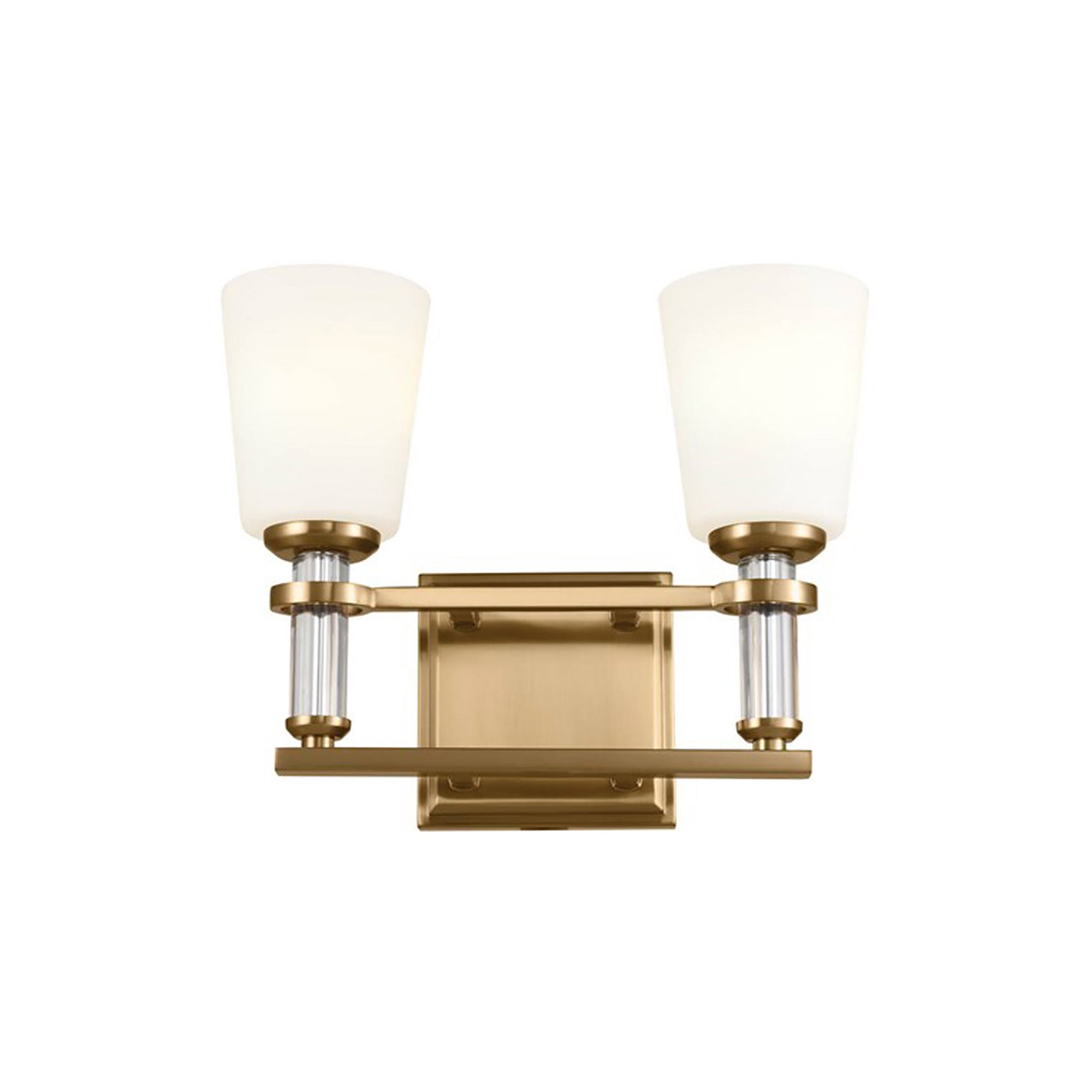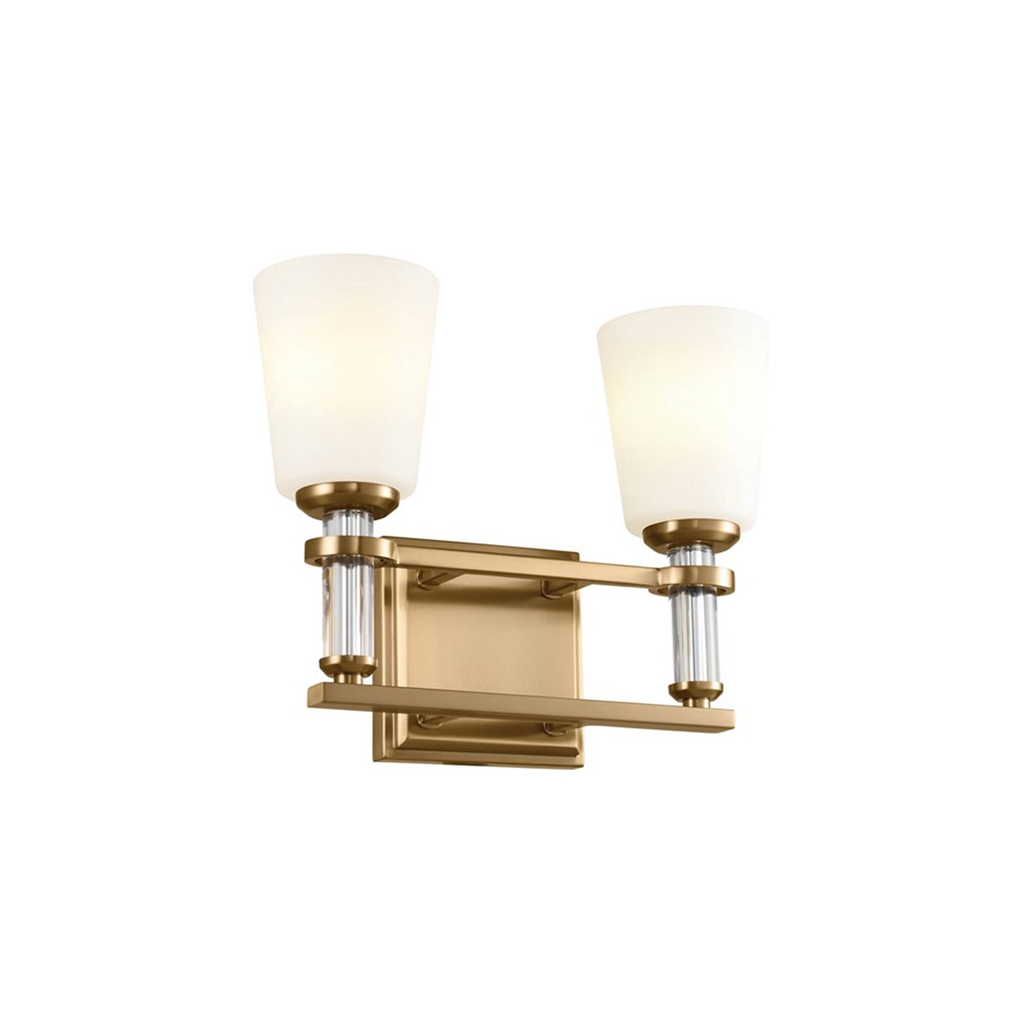Crystal candlesticks create a light, almost ethereal aura for the Rosalind Vanity Wall Light from Kichler. Impressively blending modern and classic design elements, the sconce delivers bright, true illumination with satin etched opal glass shades. A refined upgrade for interior design with hints of timeless vintage character.