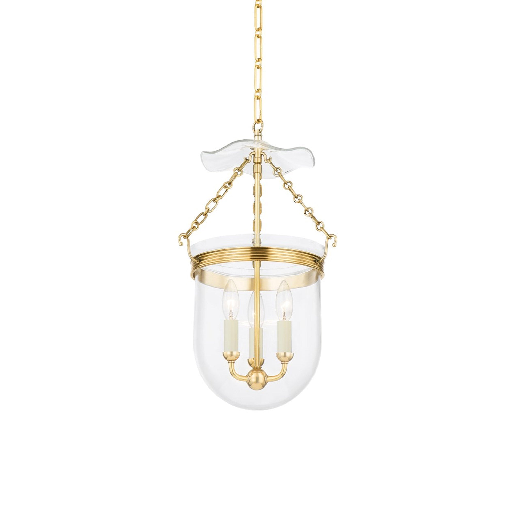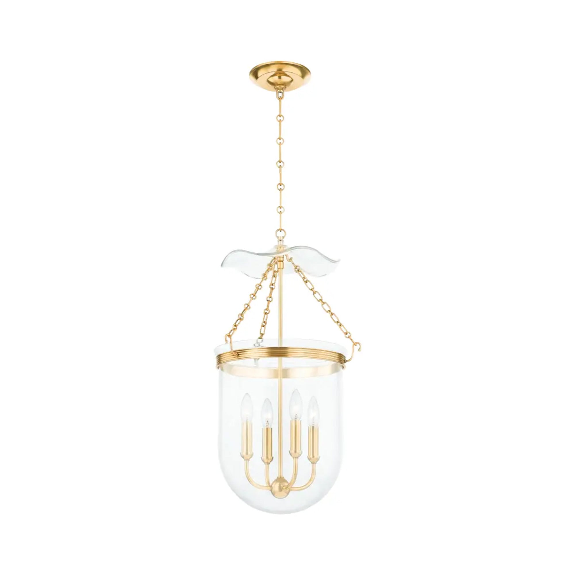 Pay close attention to the decadent artistry driving a chic statement in interior lighting. The Rousham Pendant Light from Hudson Valley Lighting delivers no shortage of charm with its inverted clear glass bell shade joining gorgeous aged brass finish metal accents. Dressed up with a flowery, shapely piece of glass that captures and reflects lighting, this glam-inspired pendant is a must-have upgrade for compact spaces and foyers.