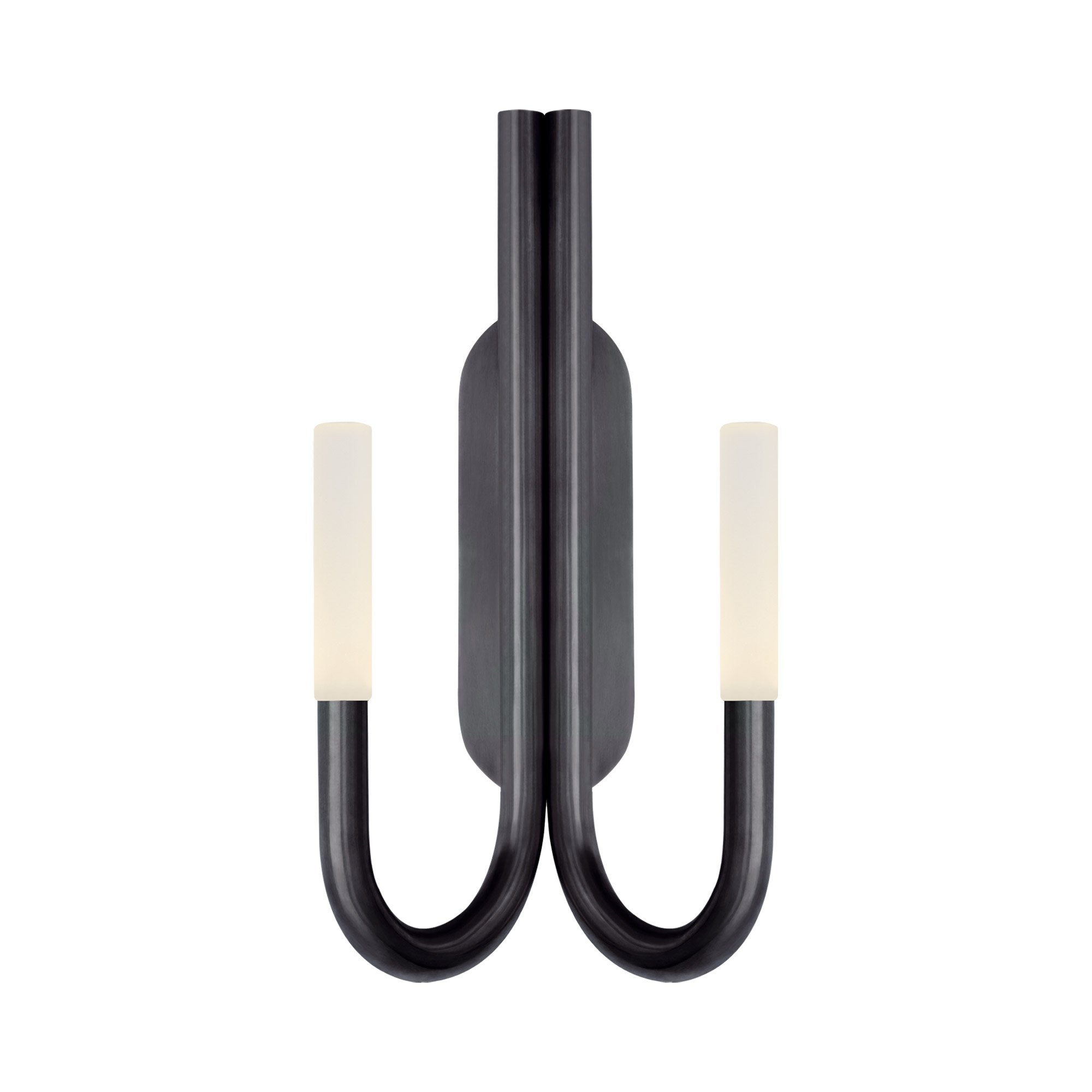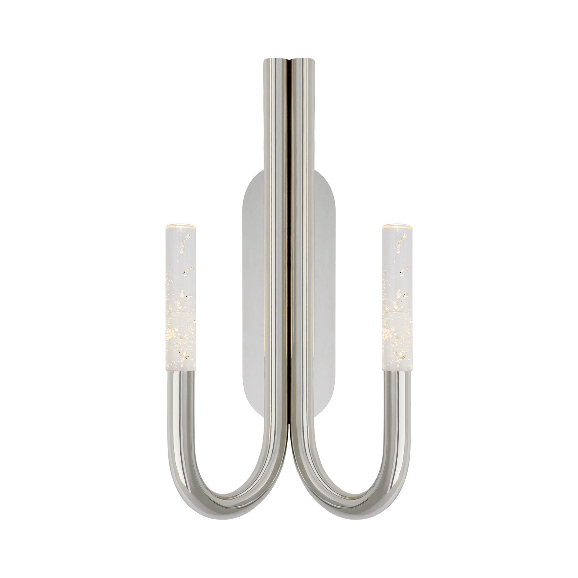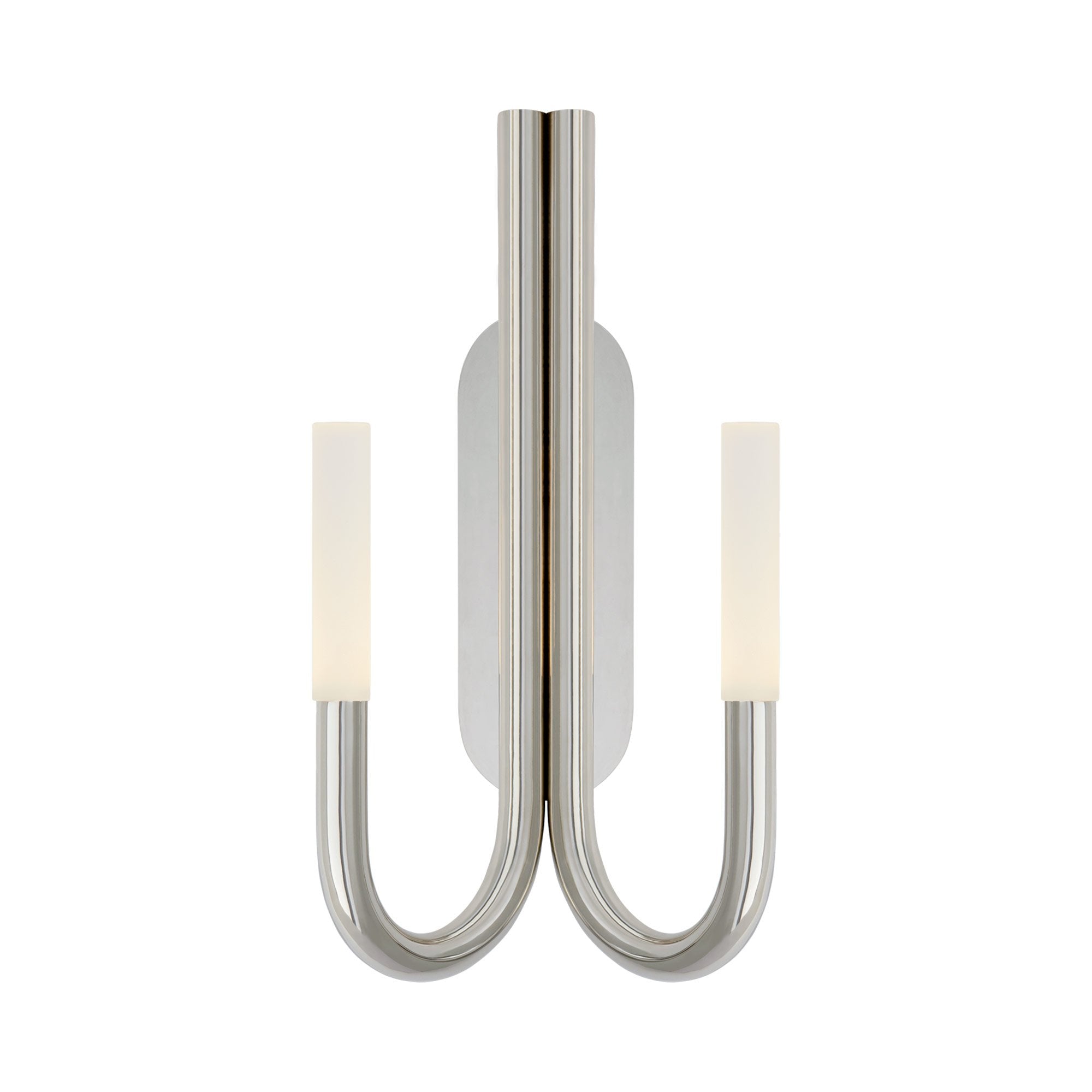 A pair of swooping curves create a sese of symmetry and balance for the Rousseau Double LED Wall Light from Visual Comfort Signature. Setting the tone in a modern space, the minimalist look offers appealing ambiance in a hall, entry, or living room.